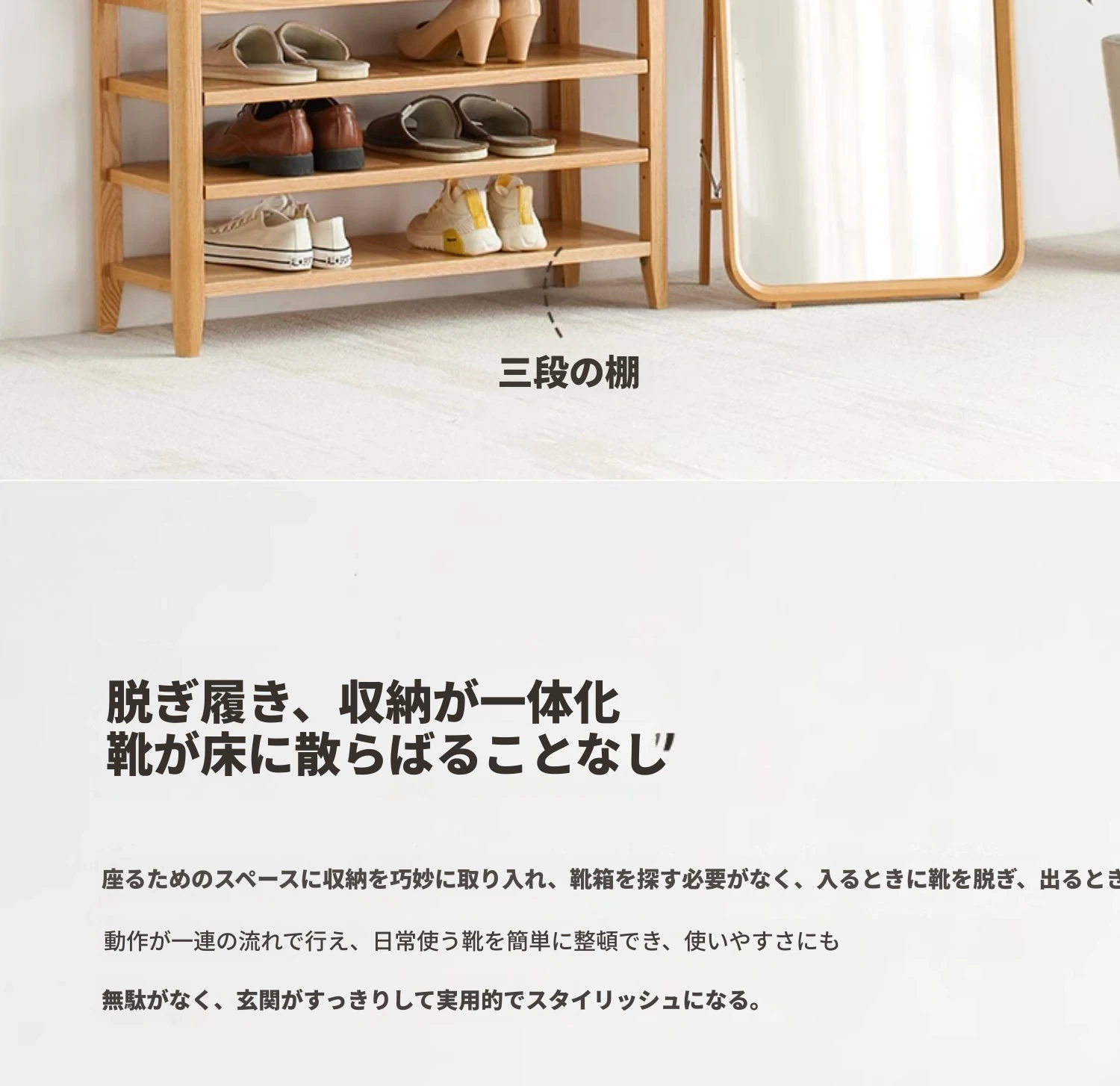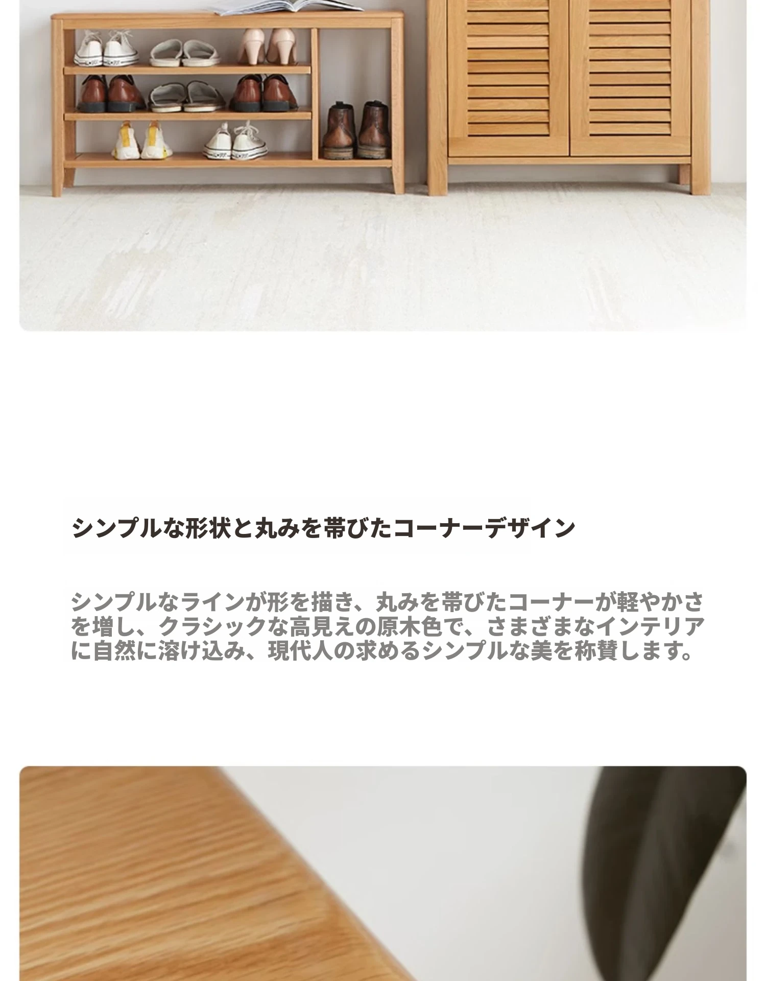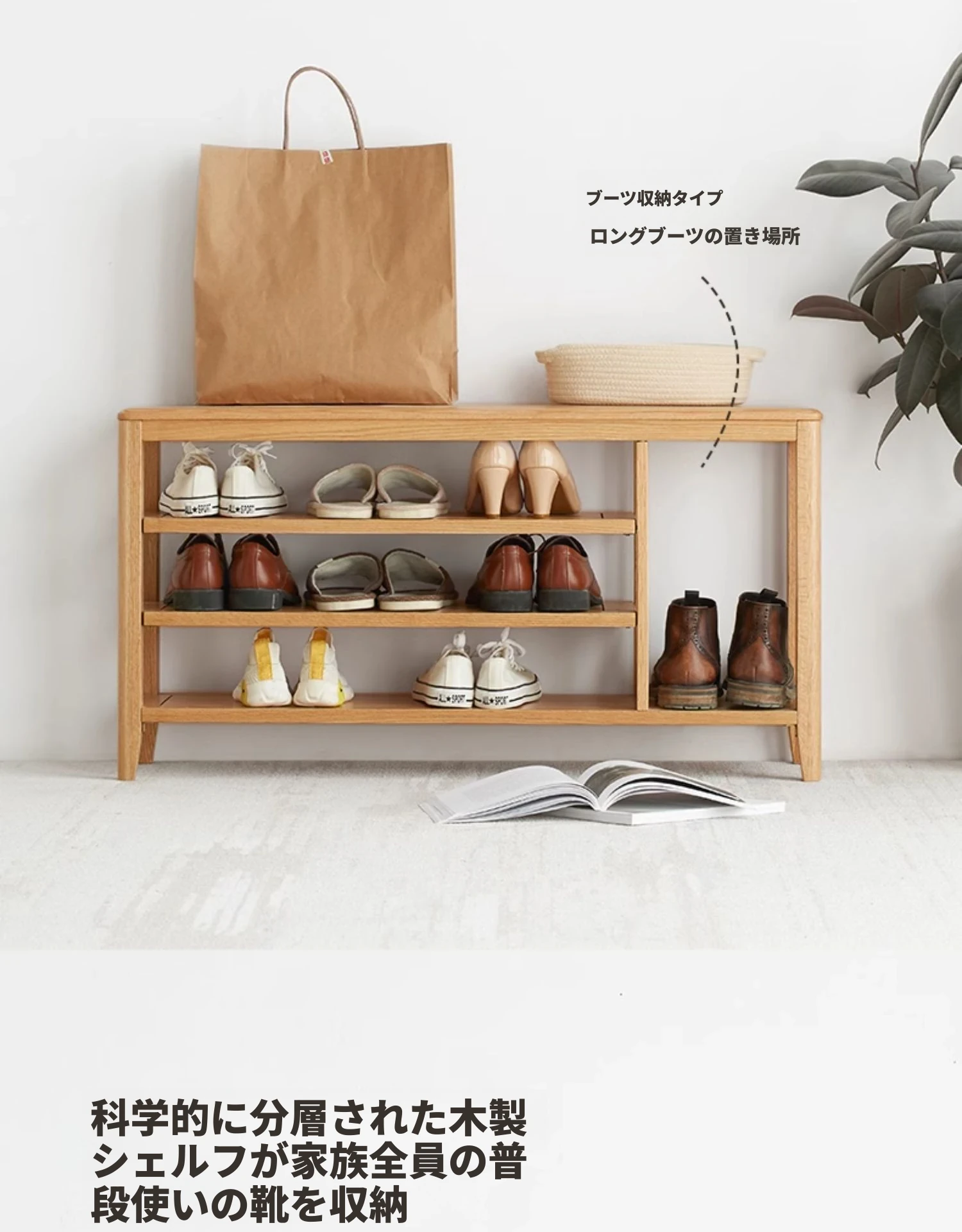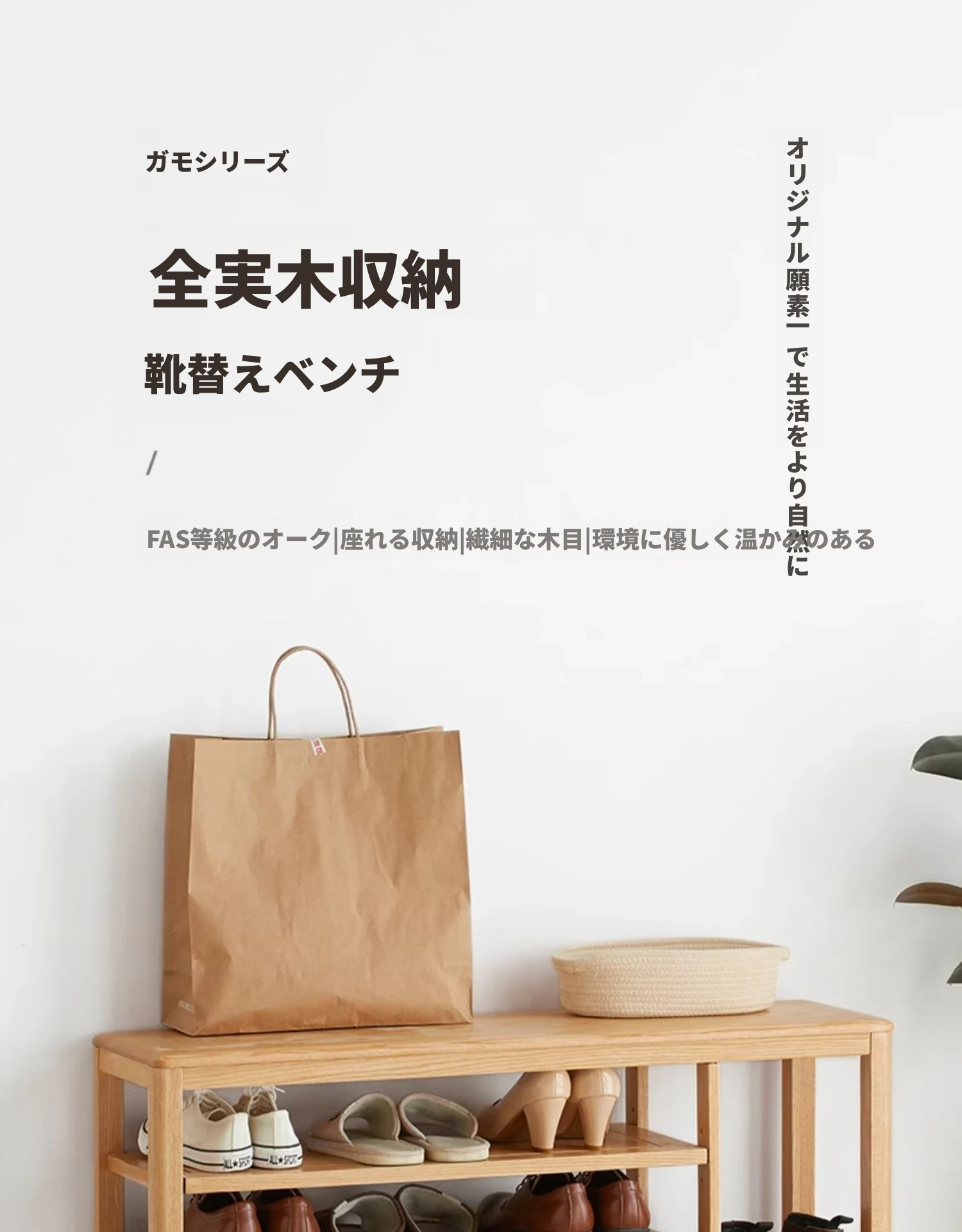 オリジナルエッセンス全木製シューズベンチ・北欧スタイル・オーク製のモダンでシンプルな収納スツール・玄関用シューズラックにも最適!おしゃれで実用的なデザインが魅力です!