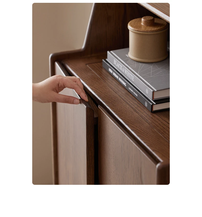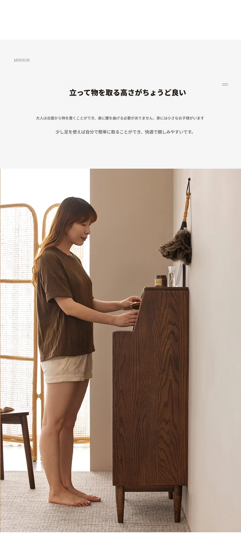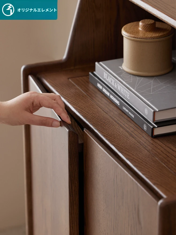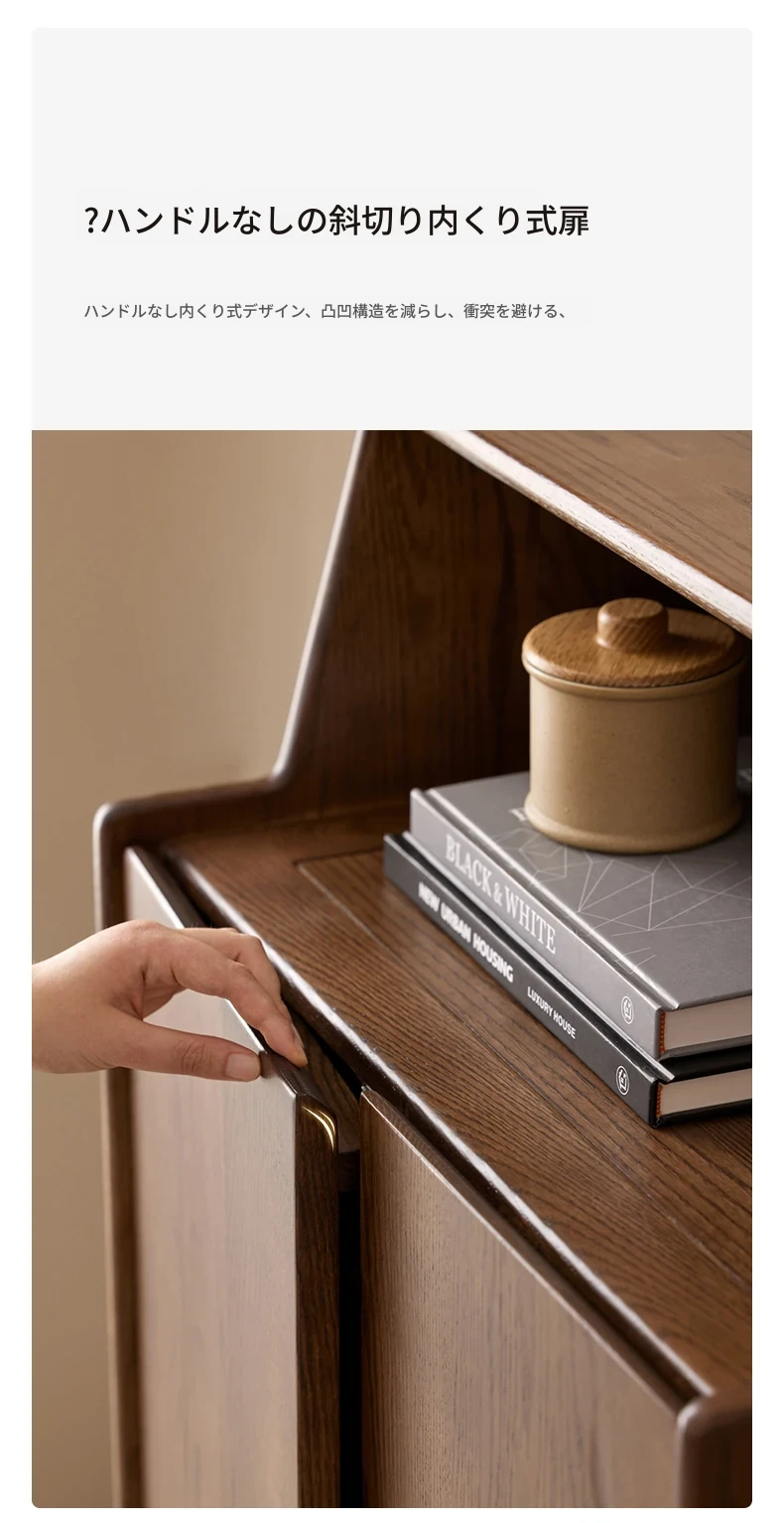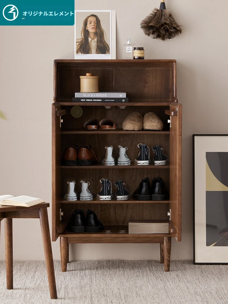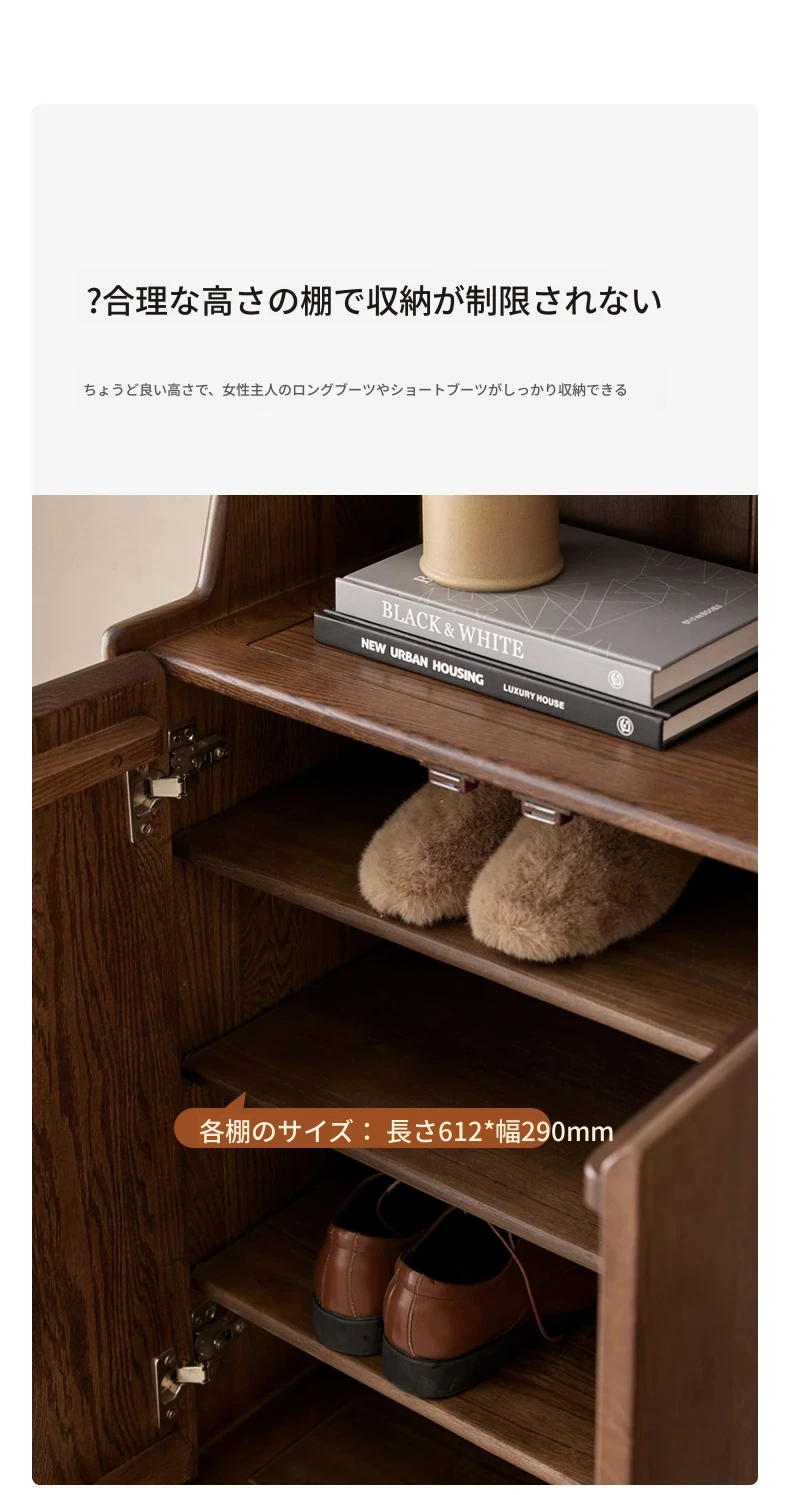 エレガントな無垢材の靴収納キャビネット – 北欧風・和風のミニマリストデザイン、オーク材を使用した小型リビング向けインテリア・玄関収納。すっきりとした空間を作り出す、こだわりの逸品!