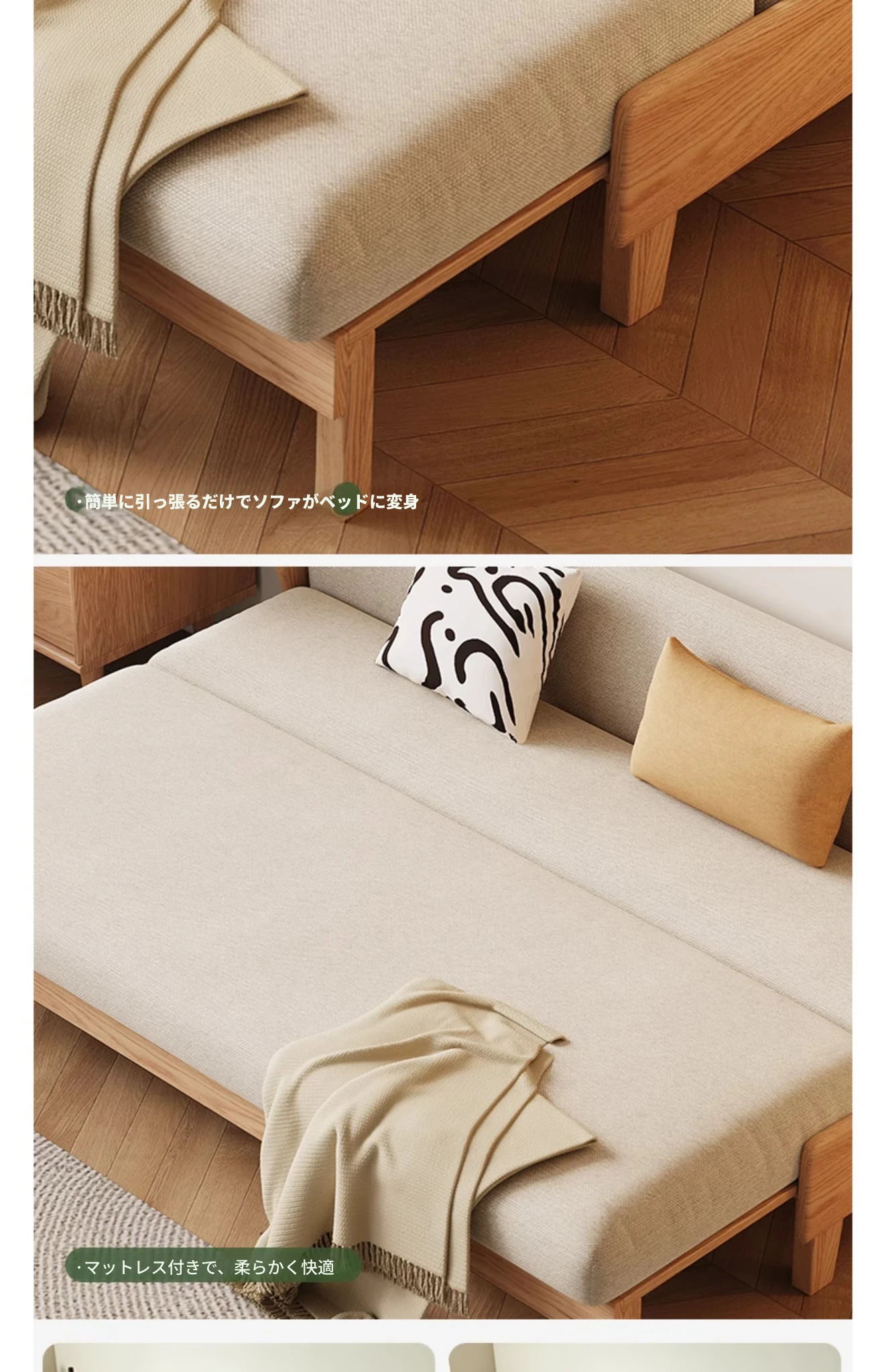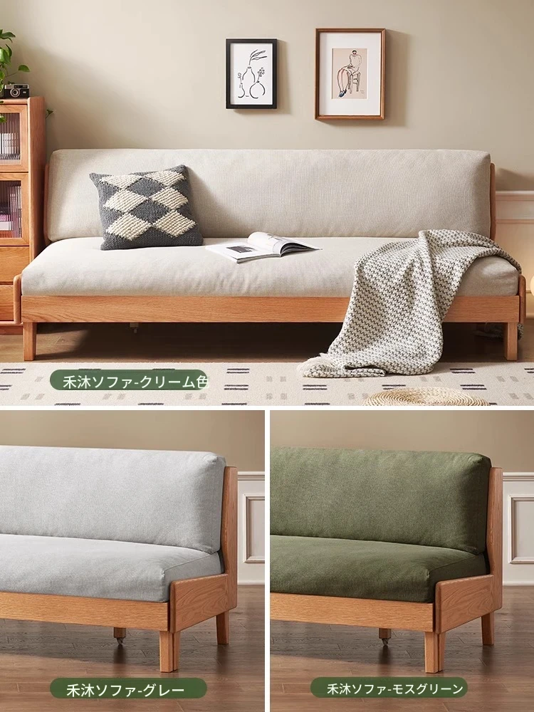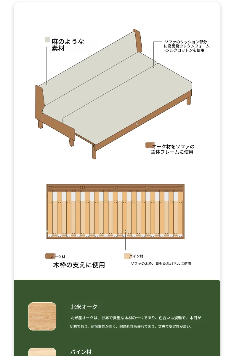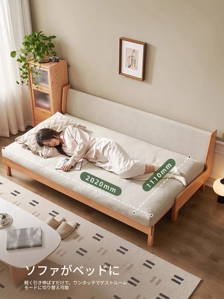 原木の風合いを生かした折りたたみソファベッド|現代的でシンプルなデザイン|小さなスペースにも最適なオーク製スライドベッド【多機能・快適なリビング空間を実現】