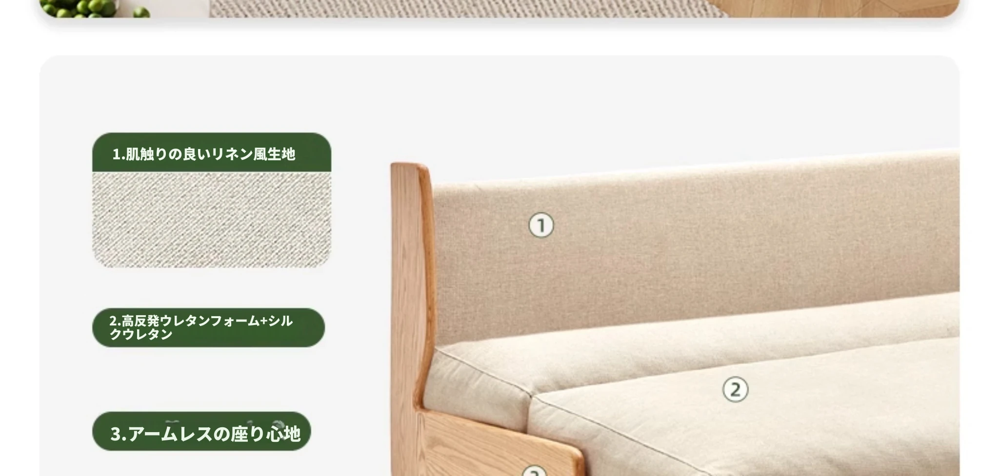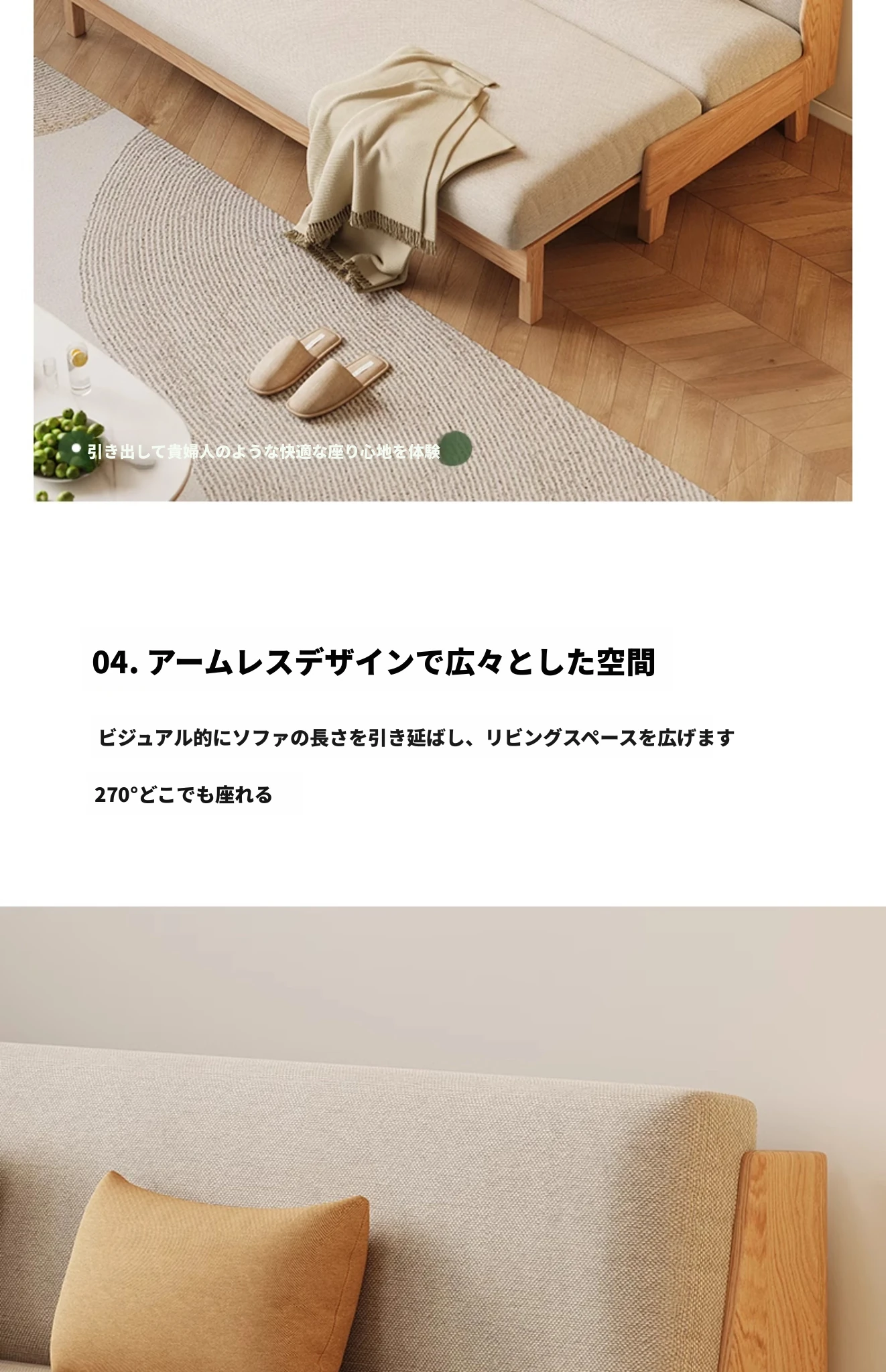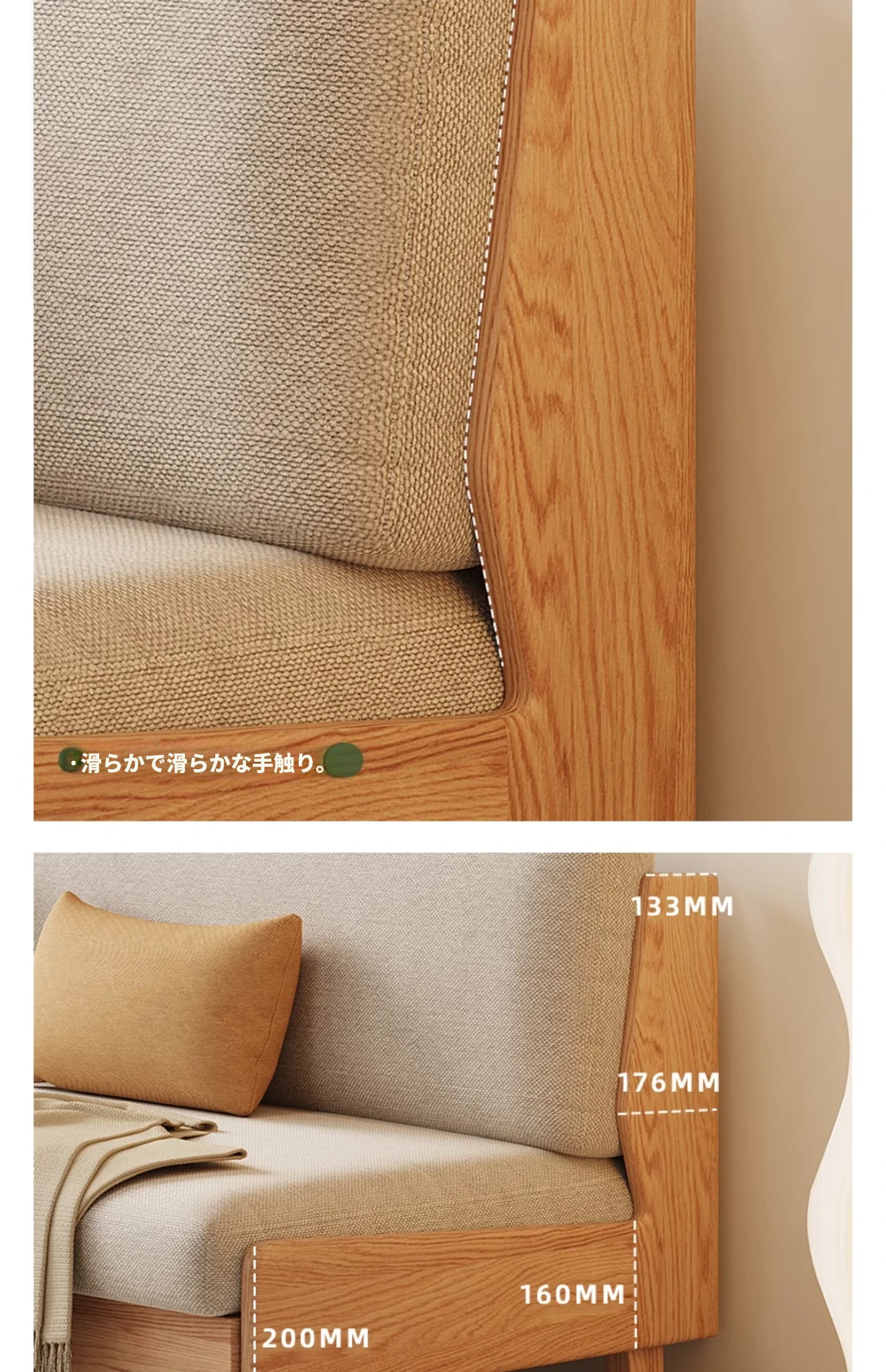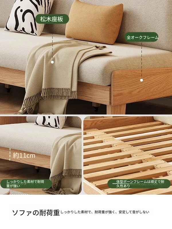 ナチュラルカラー - オークソファ (伸縮式) (ベージュソフトパック) 2060*850*758mm