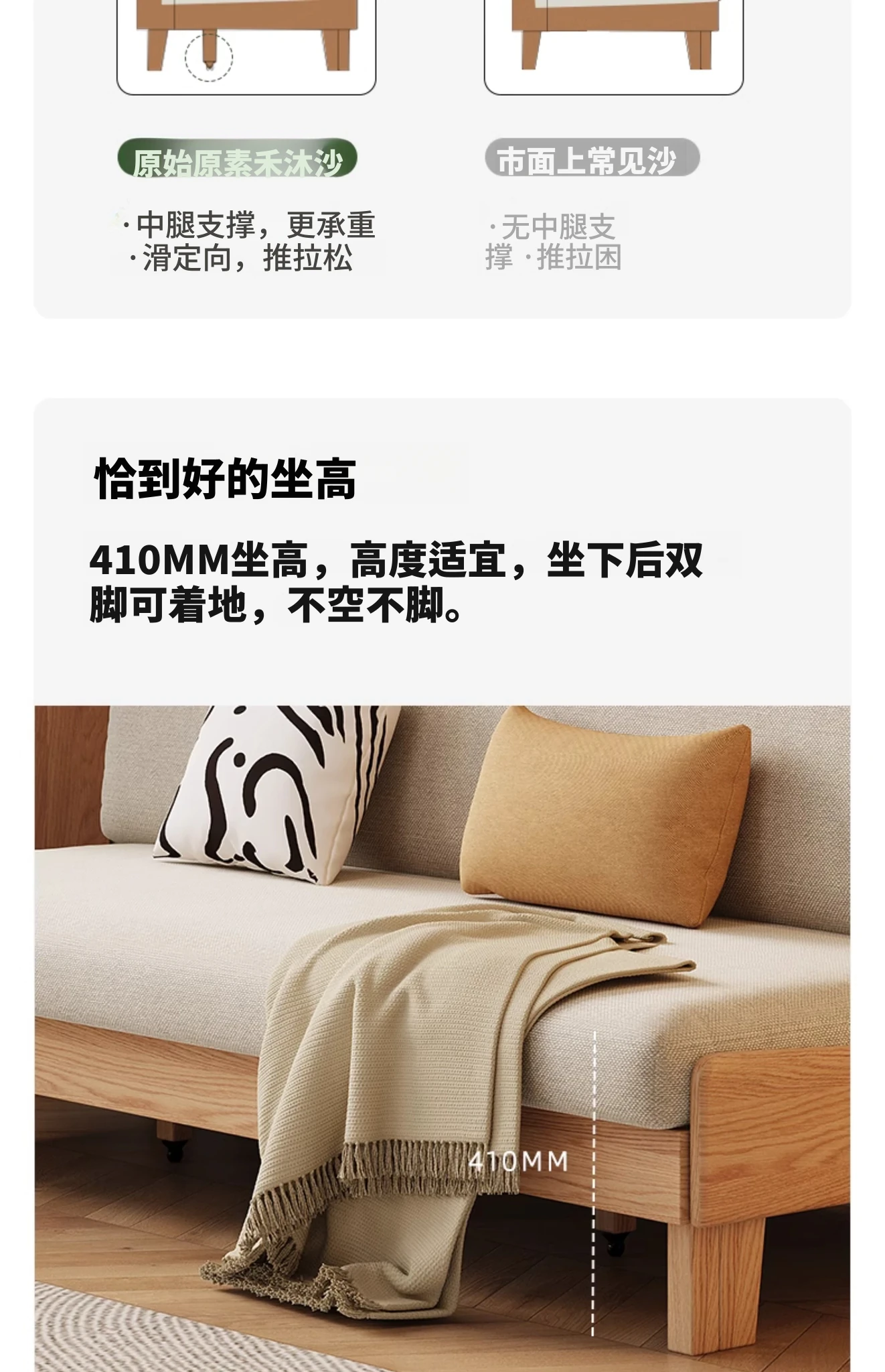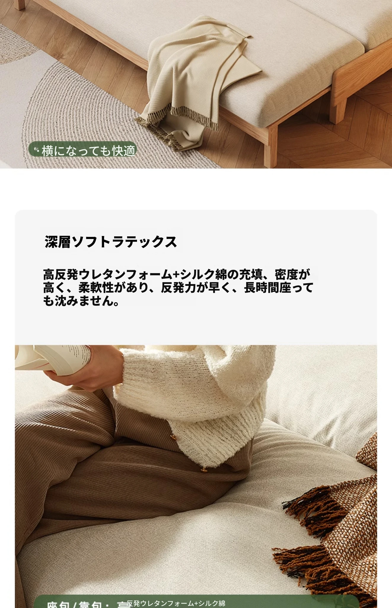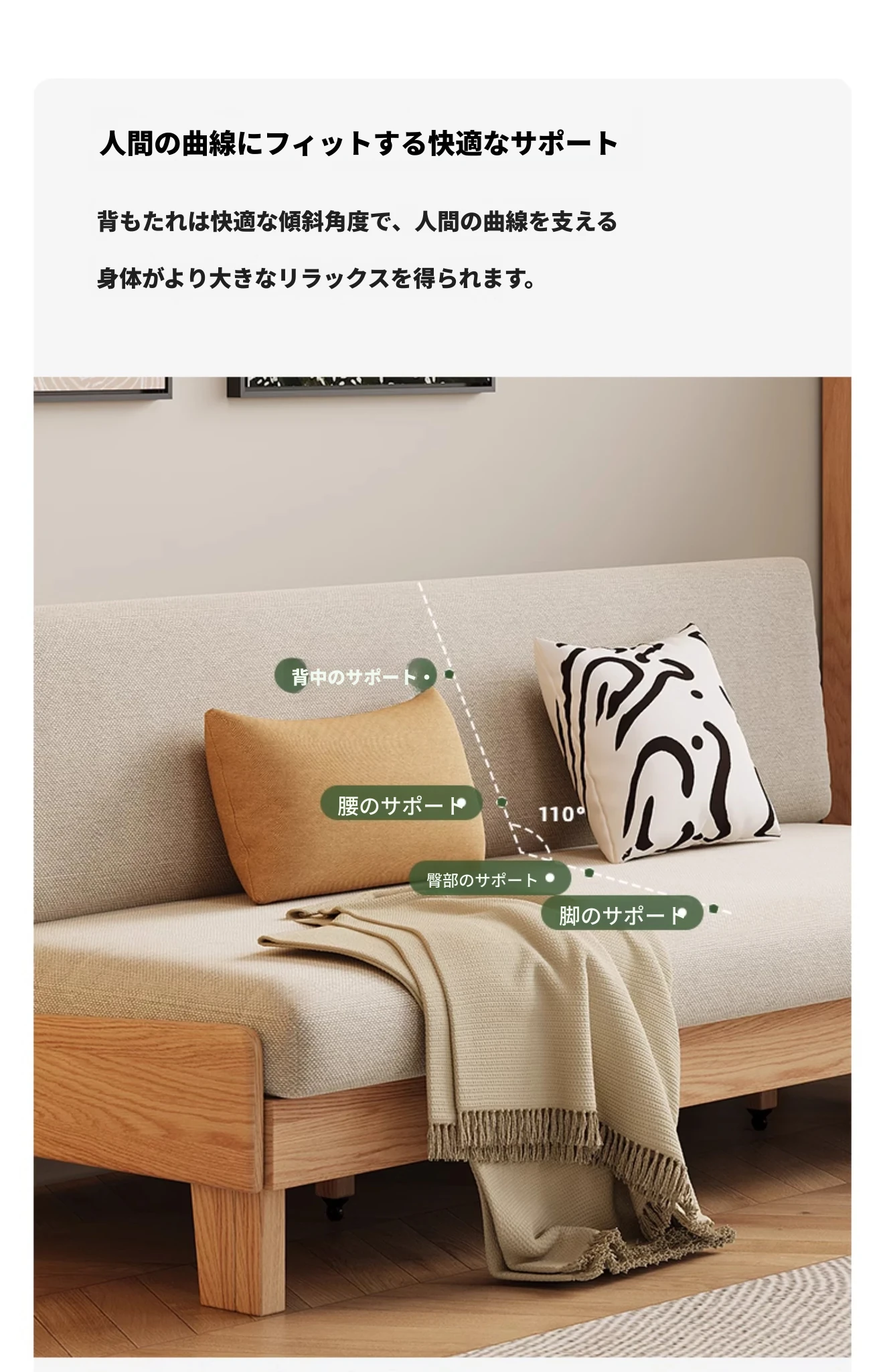 ナチュラルカラー - オークソファ (伸縮式) (ベージュソフトパック) 2060*850*758mm
