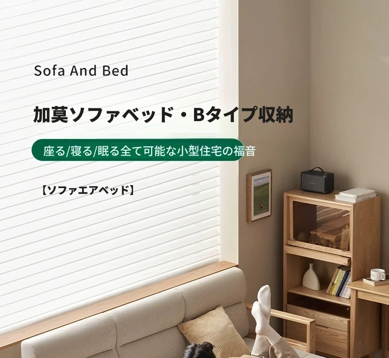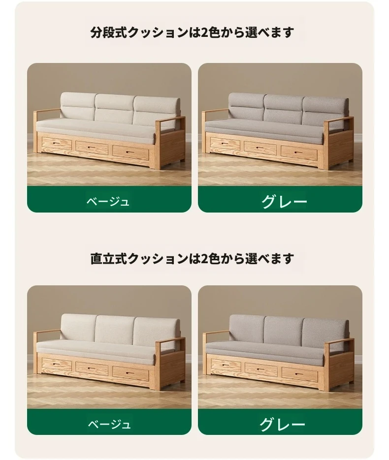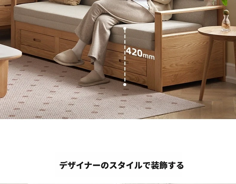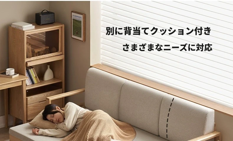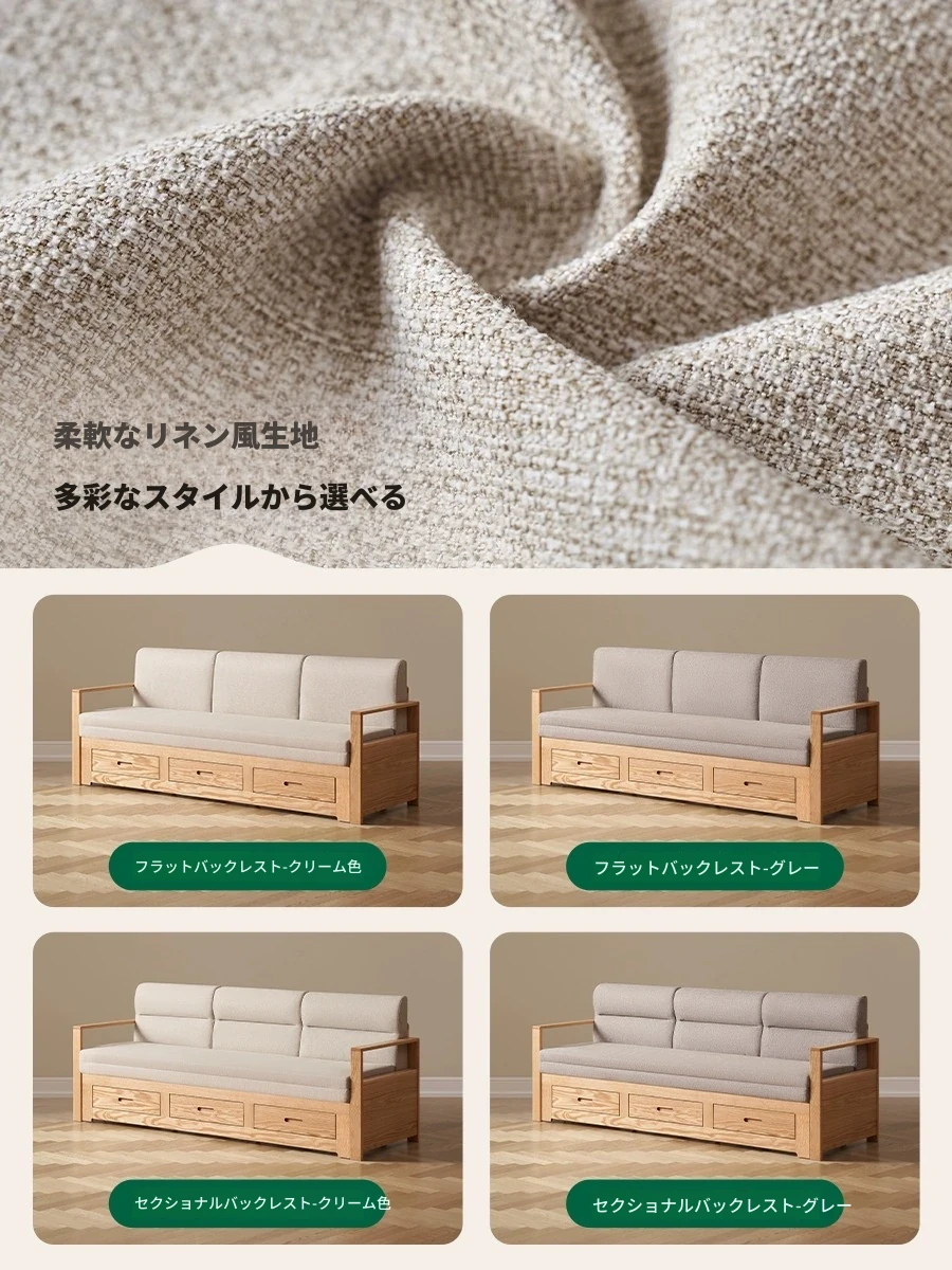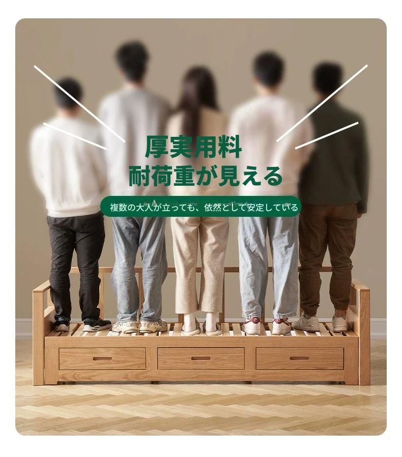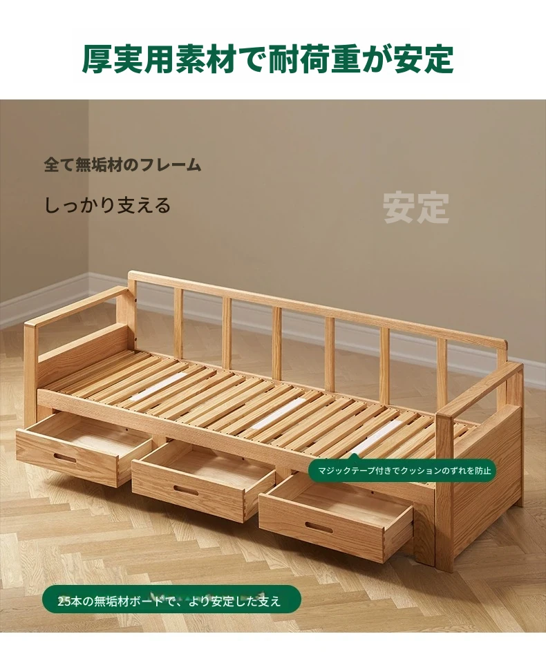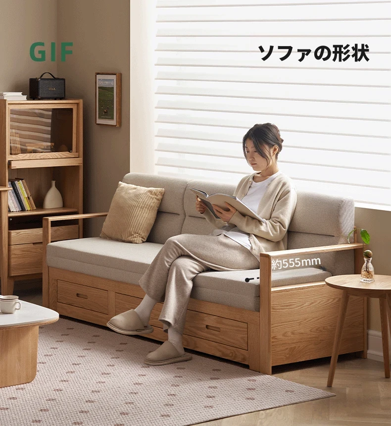 オリジナルエッセンス 全木製 折りたたみソファベッド オーク材 多機能伸縮ベッド リビング収納付き 3人掛けソファ - スタイリッシュで実用的な空間を演出!