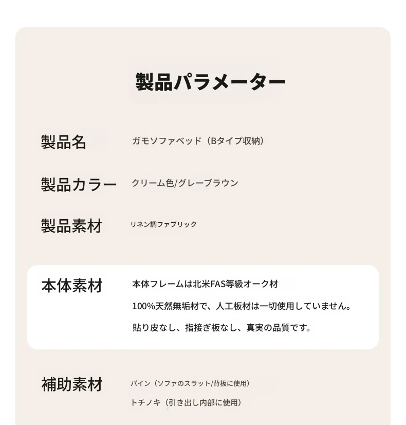 【オーク-ナチュラルカラー】2.08メートルソファベッド(アイボリー色ストレートバックレスト)(2084*685~1240*710mm)