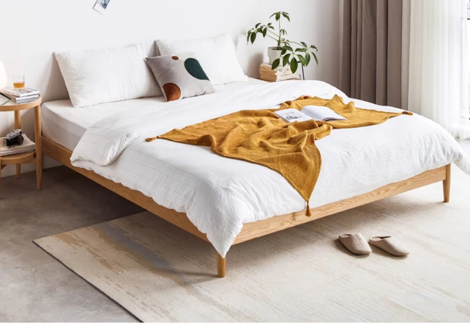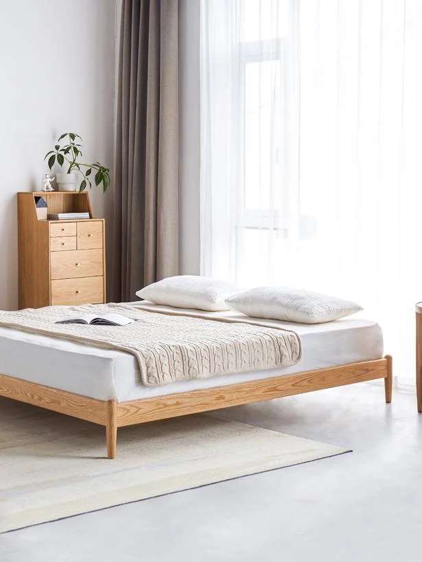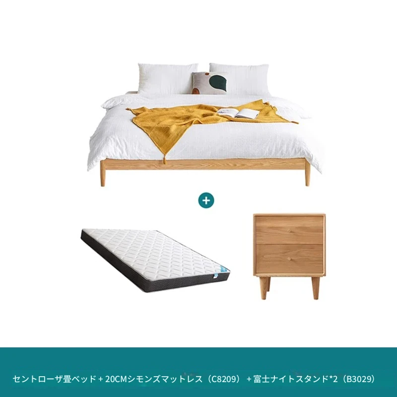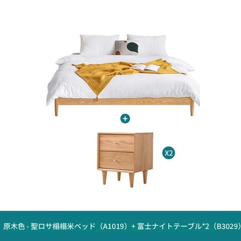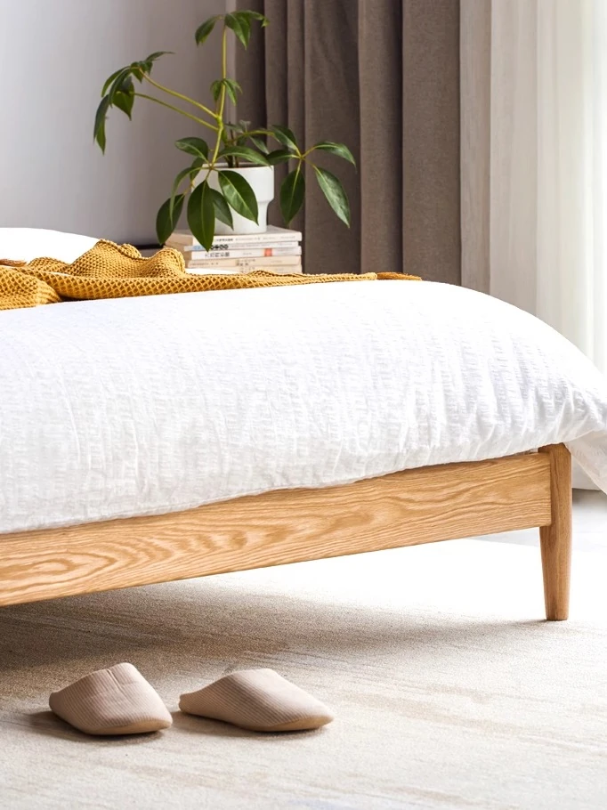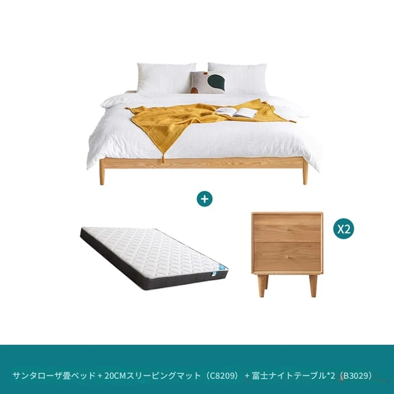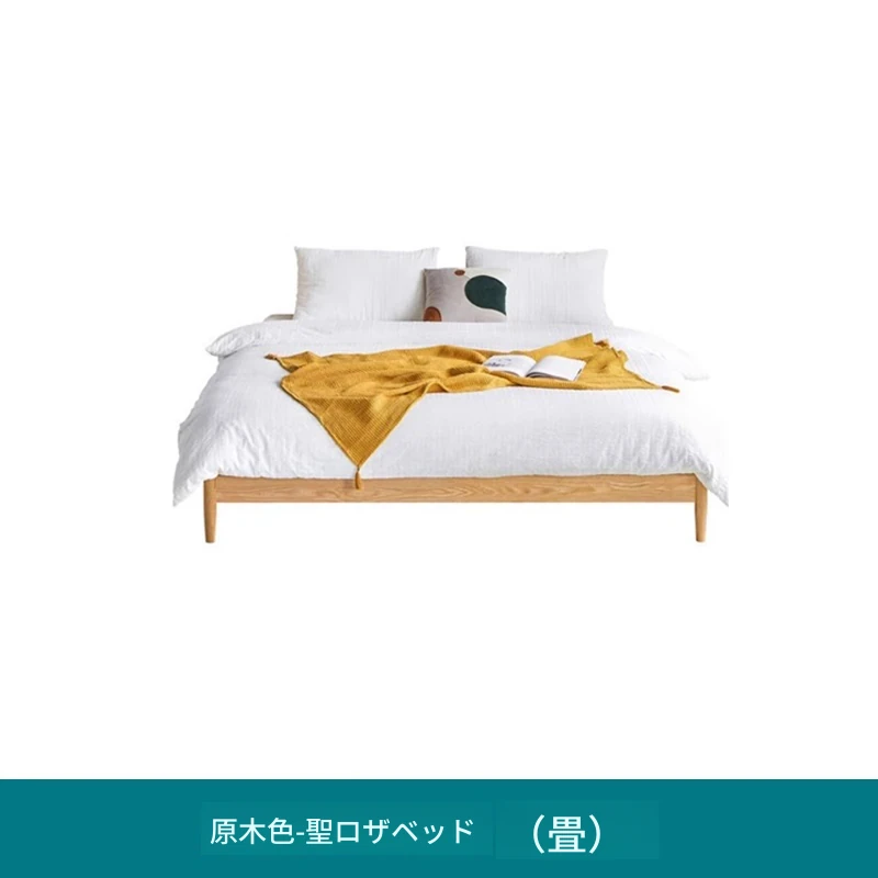 オリジナルエレメンツ全木製ベッド - 北欧オークのモダンでシンプルなデザイン!主寝室にぴったりなダブルベッド、ヘッドボードなしの和風畳ベッドで、心地よい眠りを提供します。