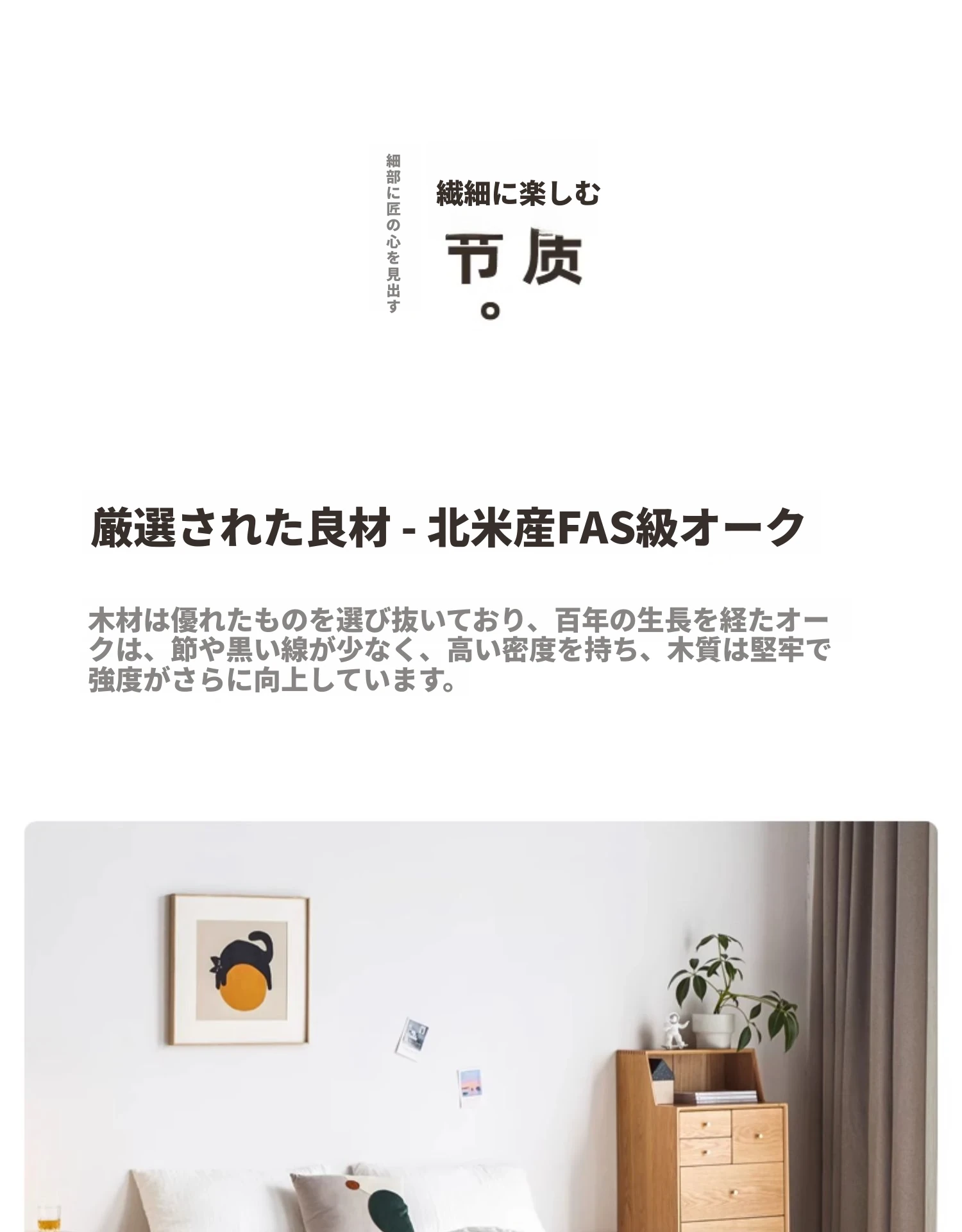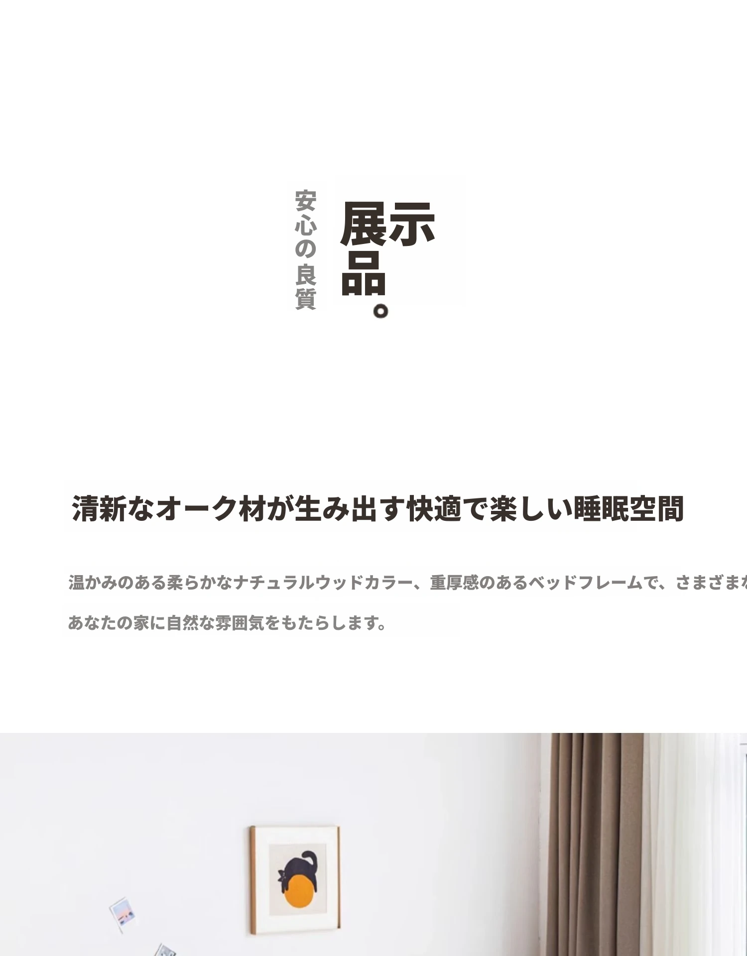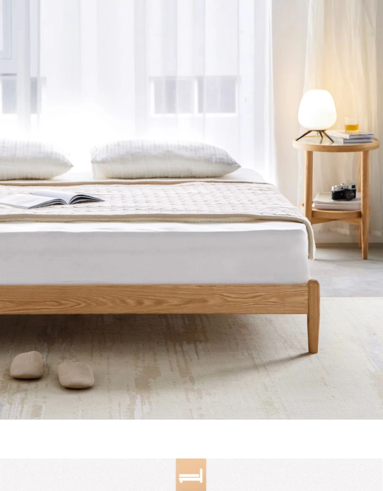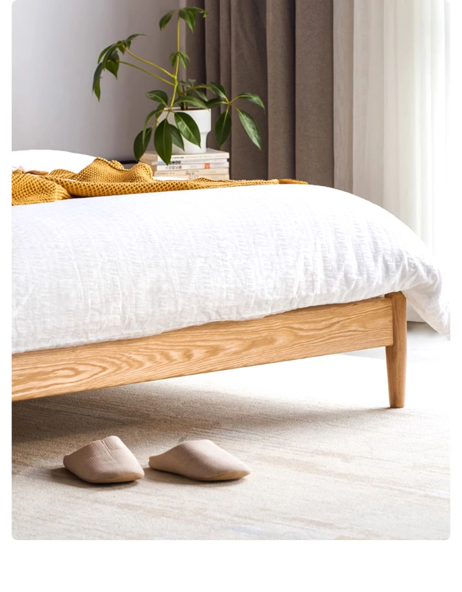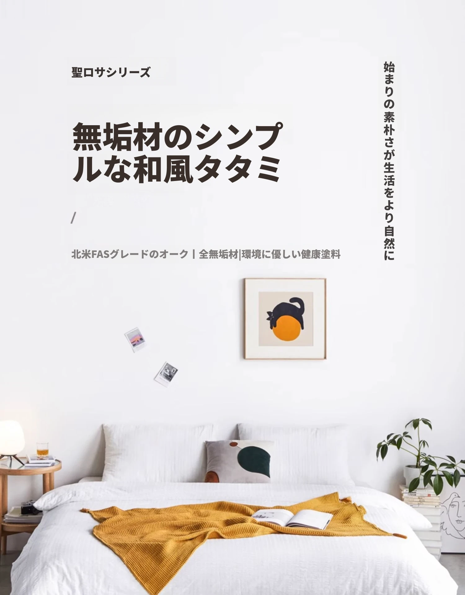 オリジナルエレメンツ全木製ベッド - 北欧オークのモダンでシンプルなデザイン!主寝室にぴったりなダブルベッド、ヘッドボードなしの和風畳ベッドで、心地よい眠りを提供します。
