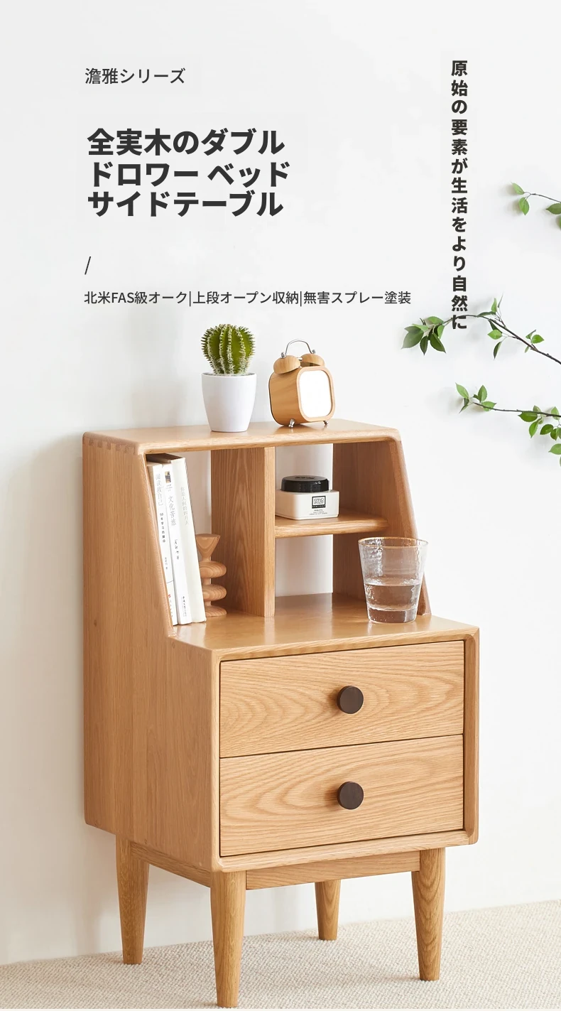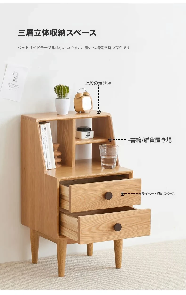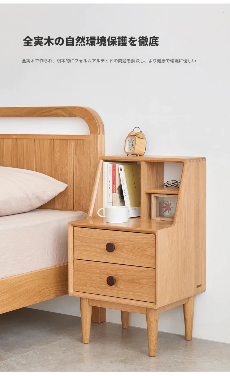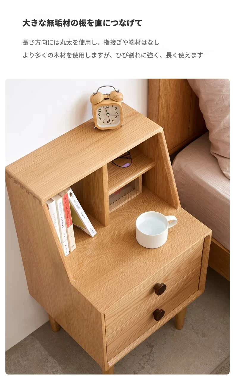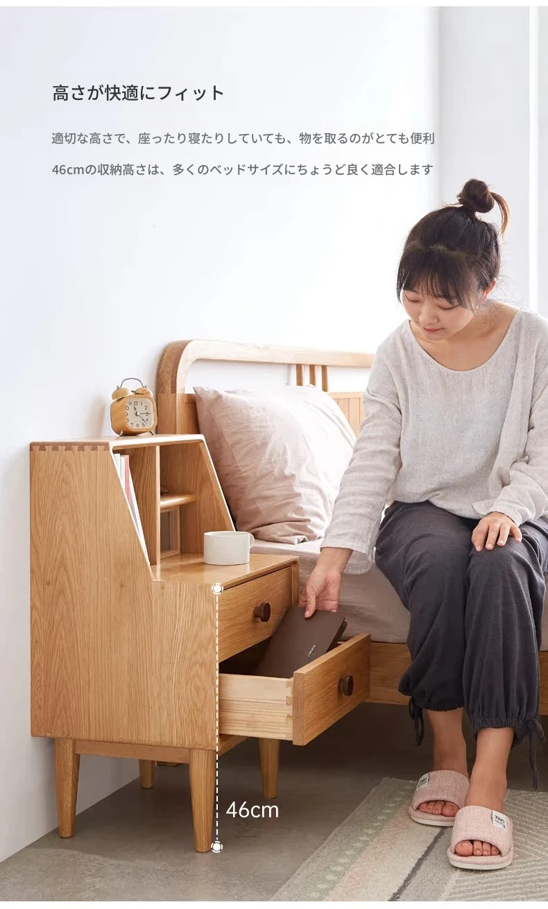 オーセンティックな無垢材を使用した北欧風シンプルモダン木製ナイトスタンド - 橡木素材の収納力抜群な子供用ベッドサイドテーブルでお部屋をスタイリッシュに!