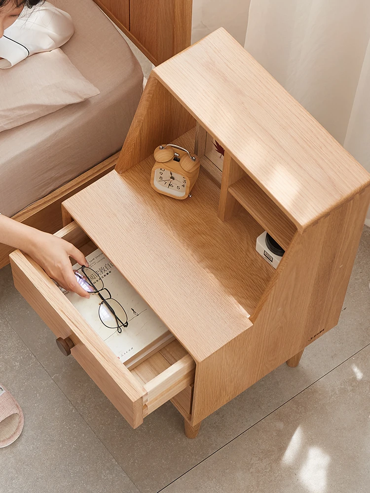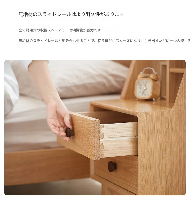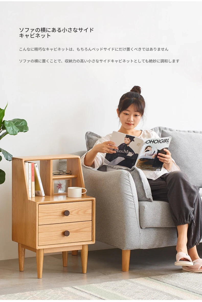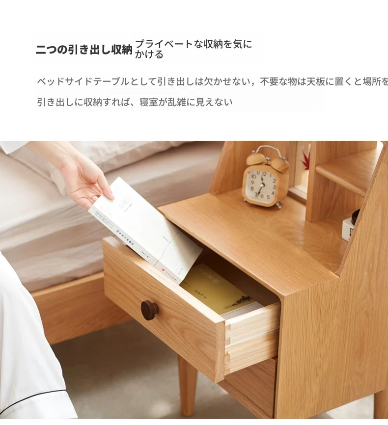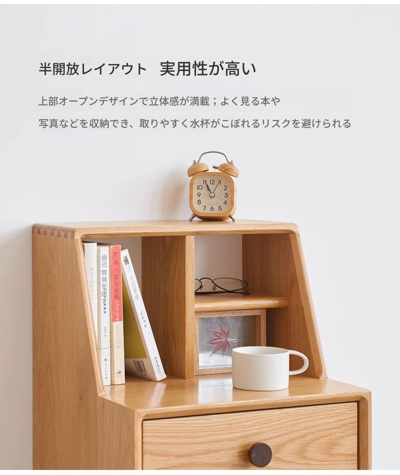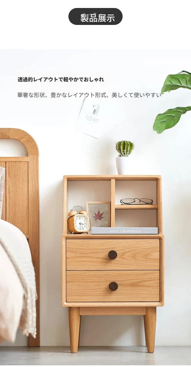 オーセンティックな無垢材を使用した北欧風シンプルモダン木製ナイトスタンド - 橡木素材の収納力抜群な子供用ベッドサイドテーブルでお部屋をスタイリッシュに!