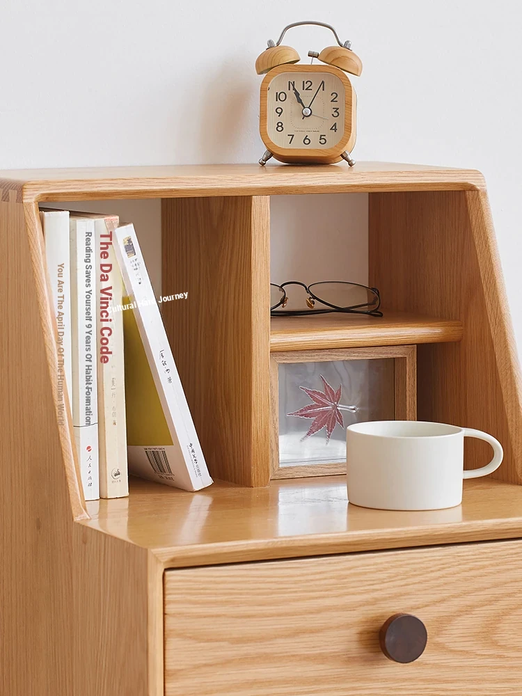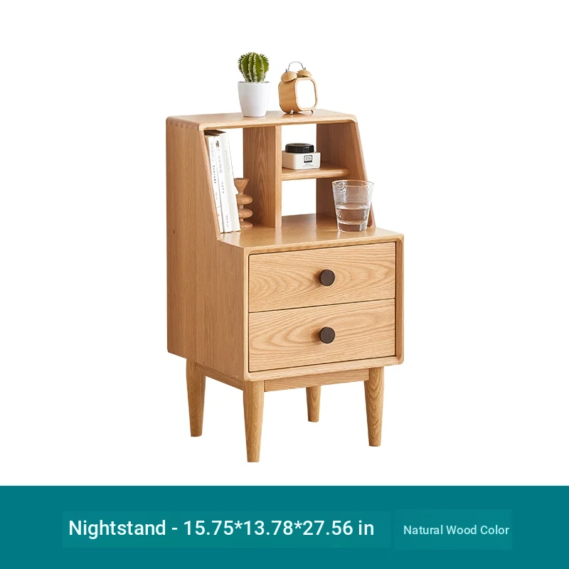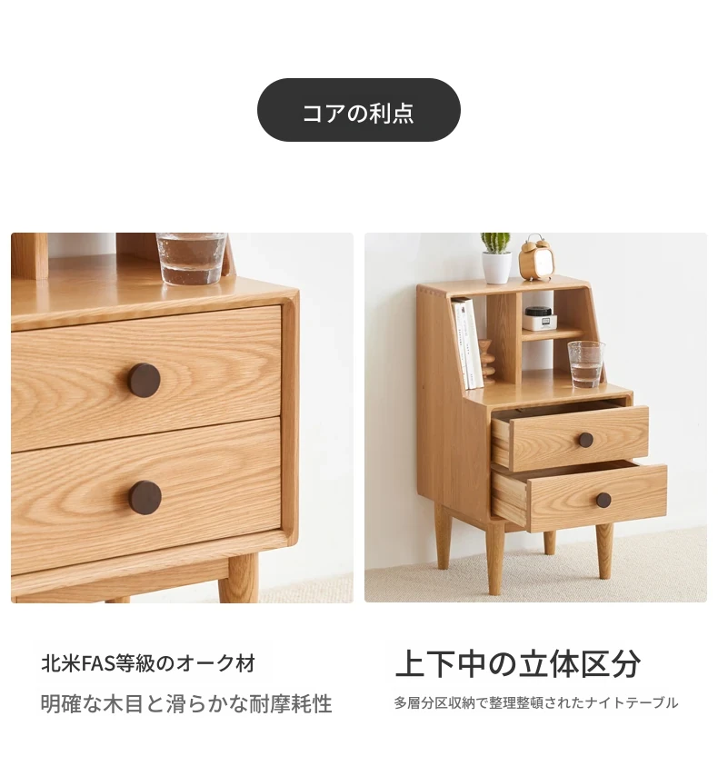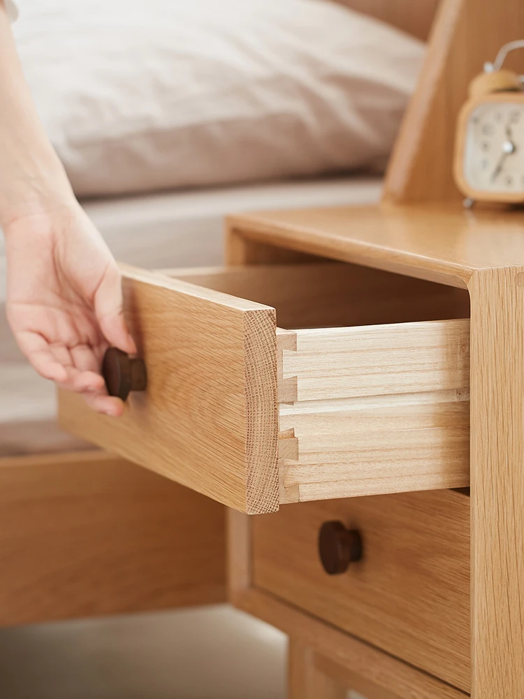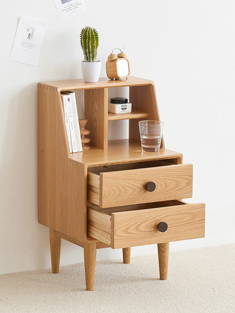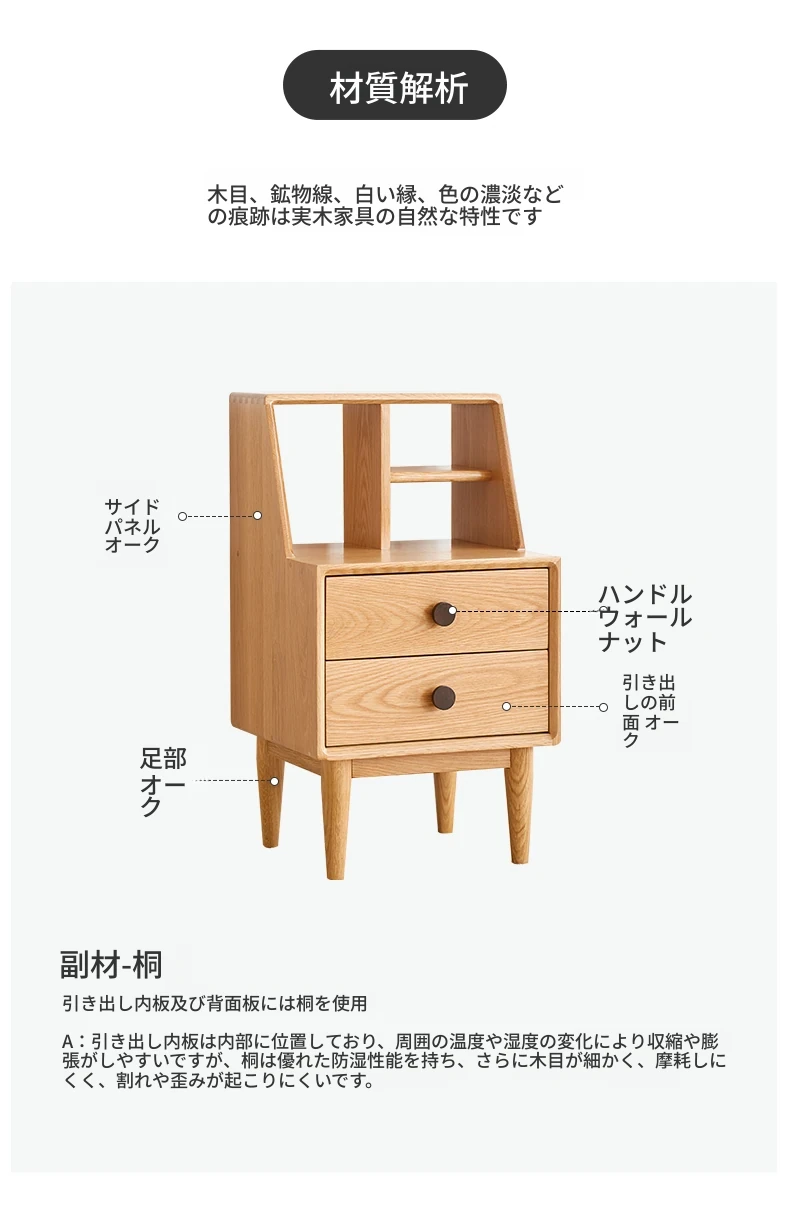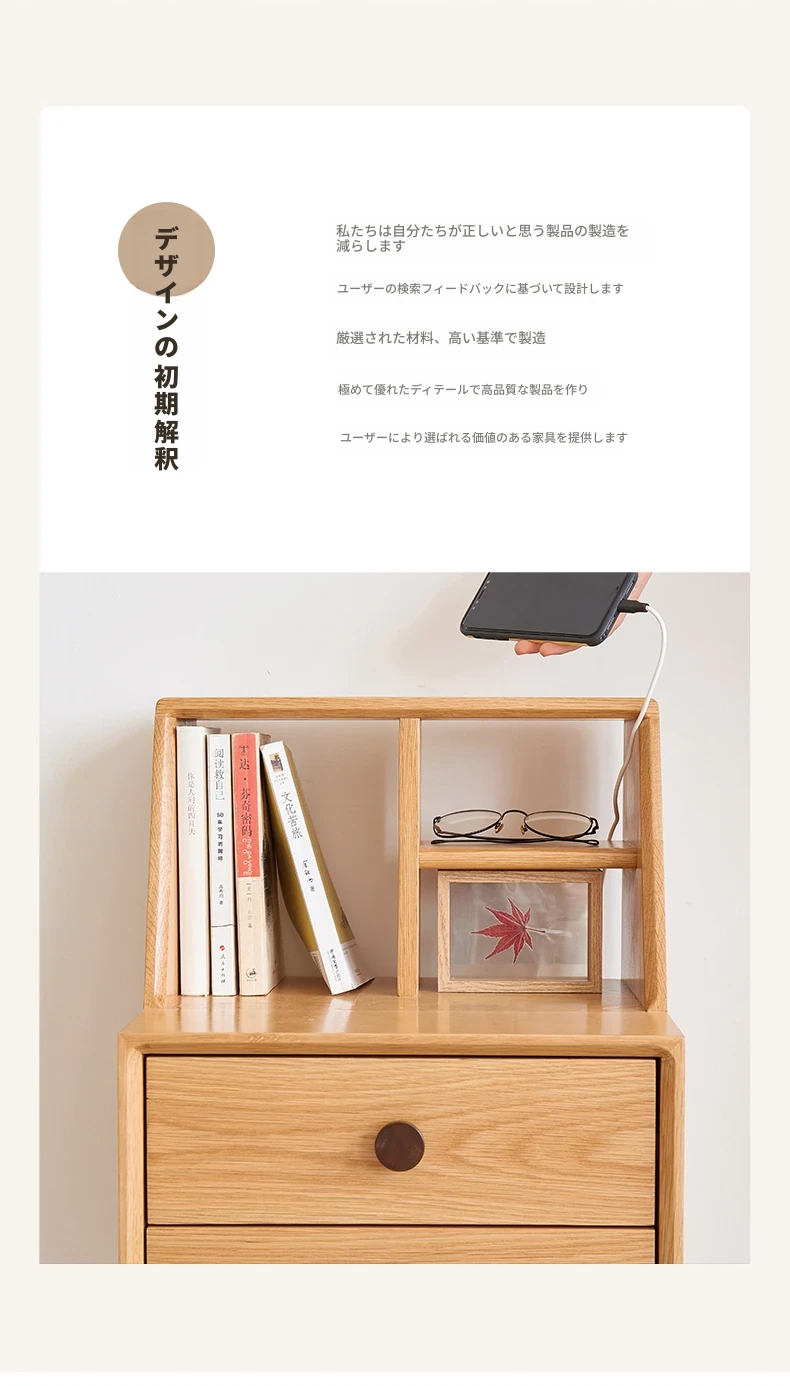 オーセンティックな無垢材を使用した北欧風シンプルモダン木製ナイトスタンド - 橡木素材の収納力抜群な子供用ベッドサイドテーブルでお部屋をスタイリッシュに!