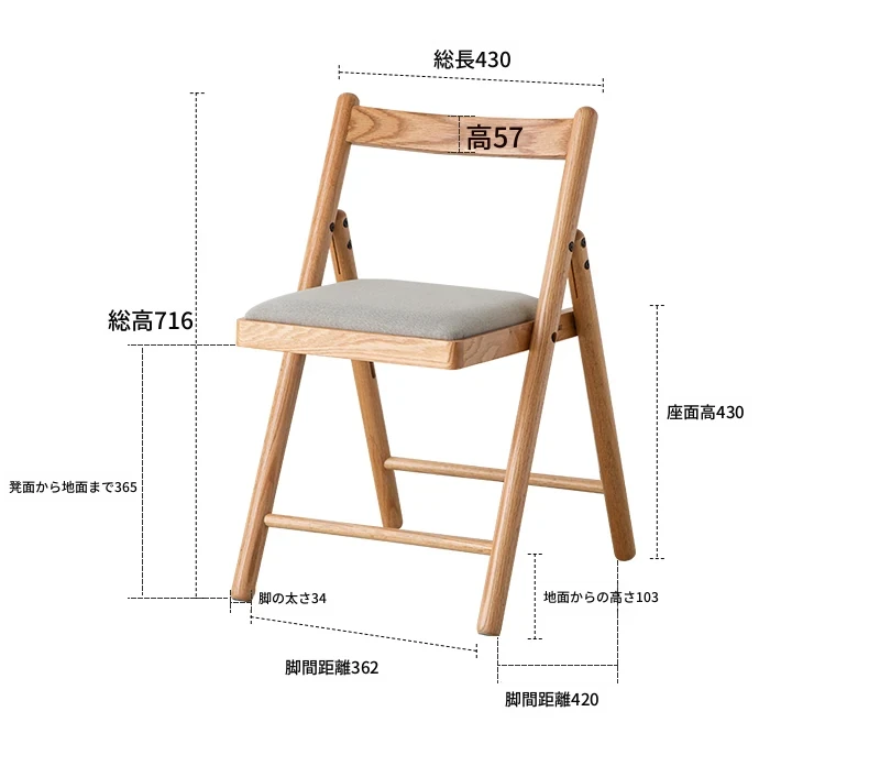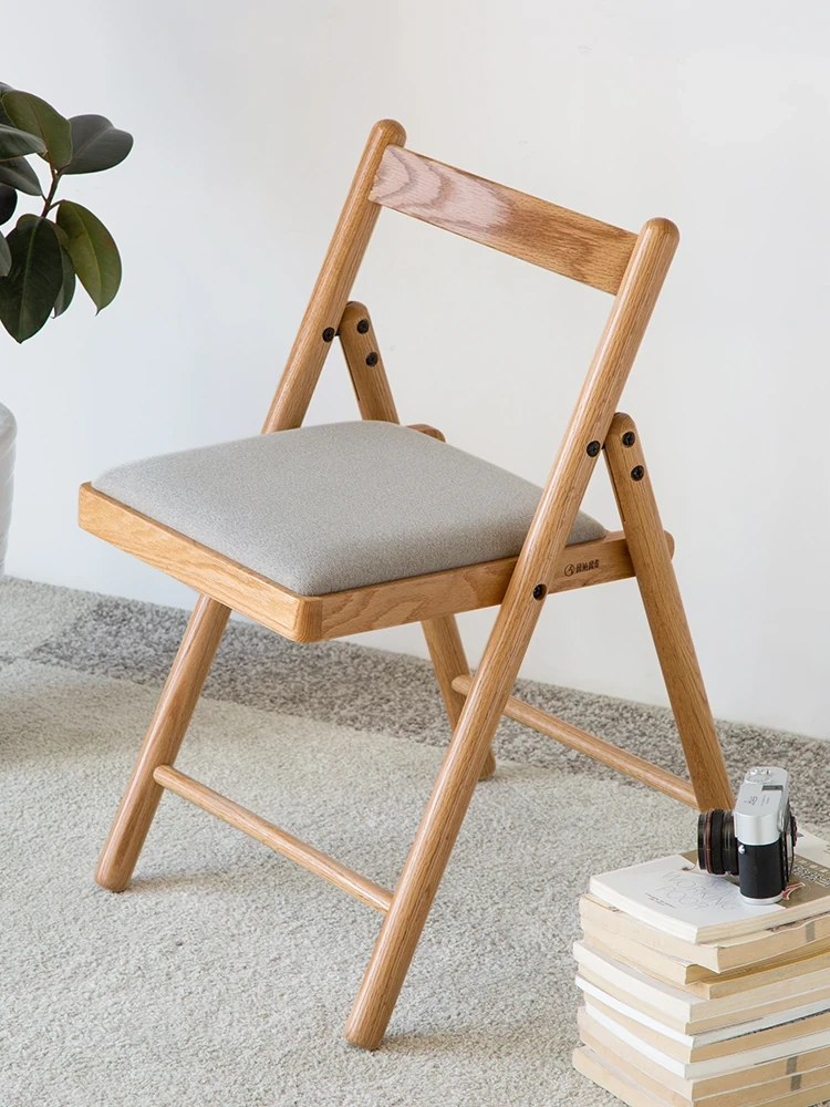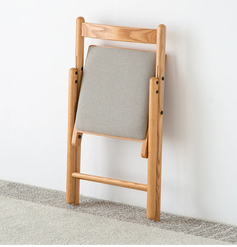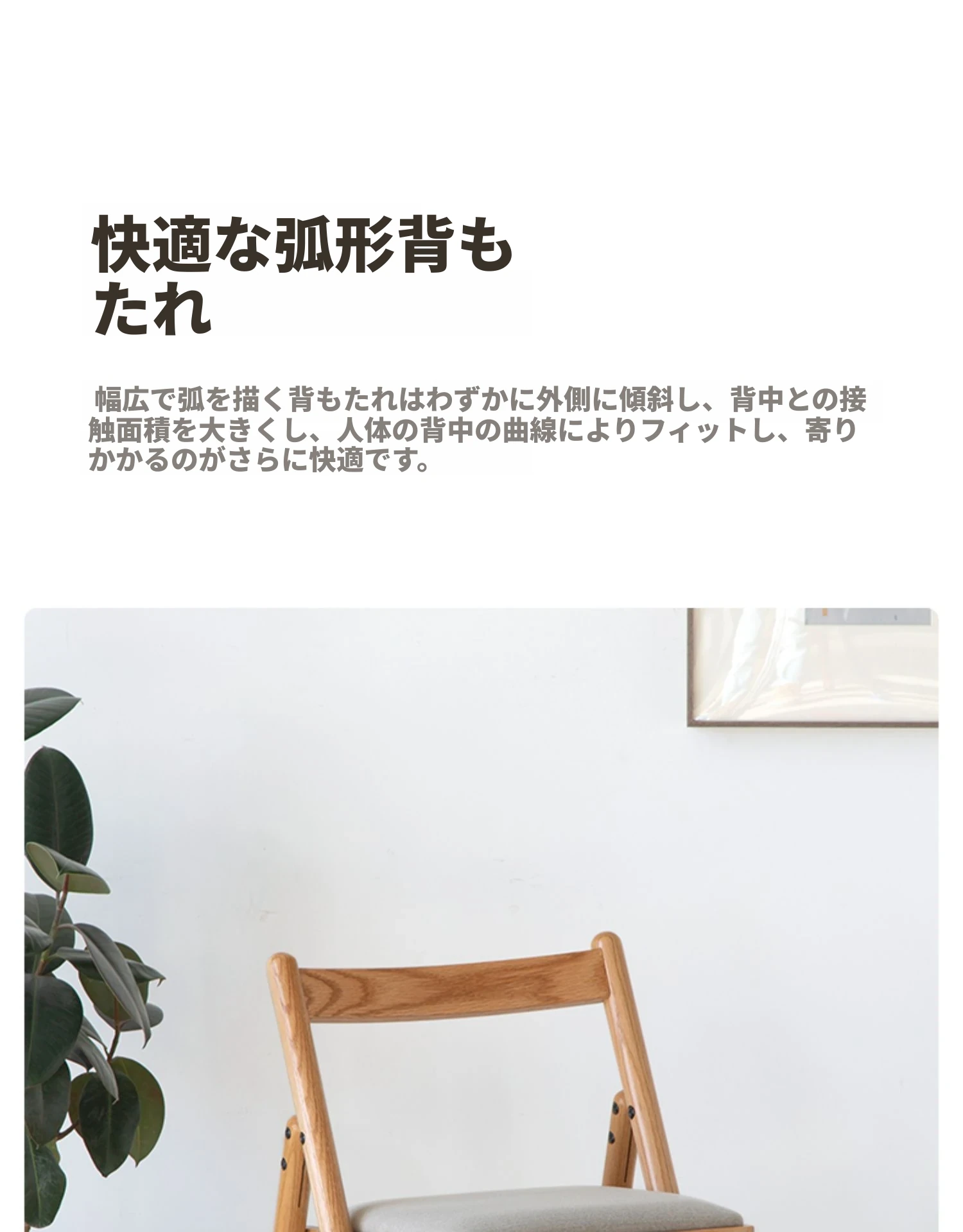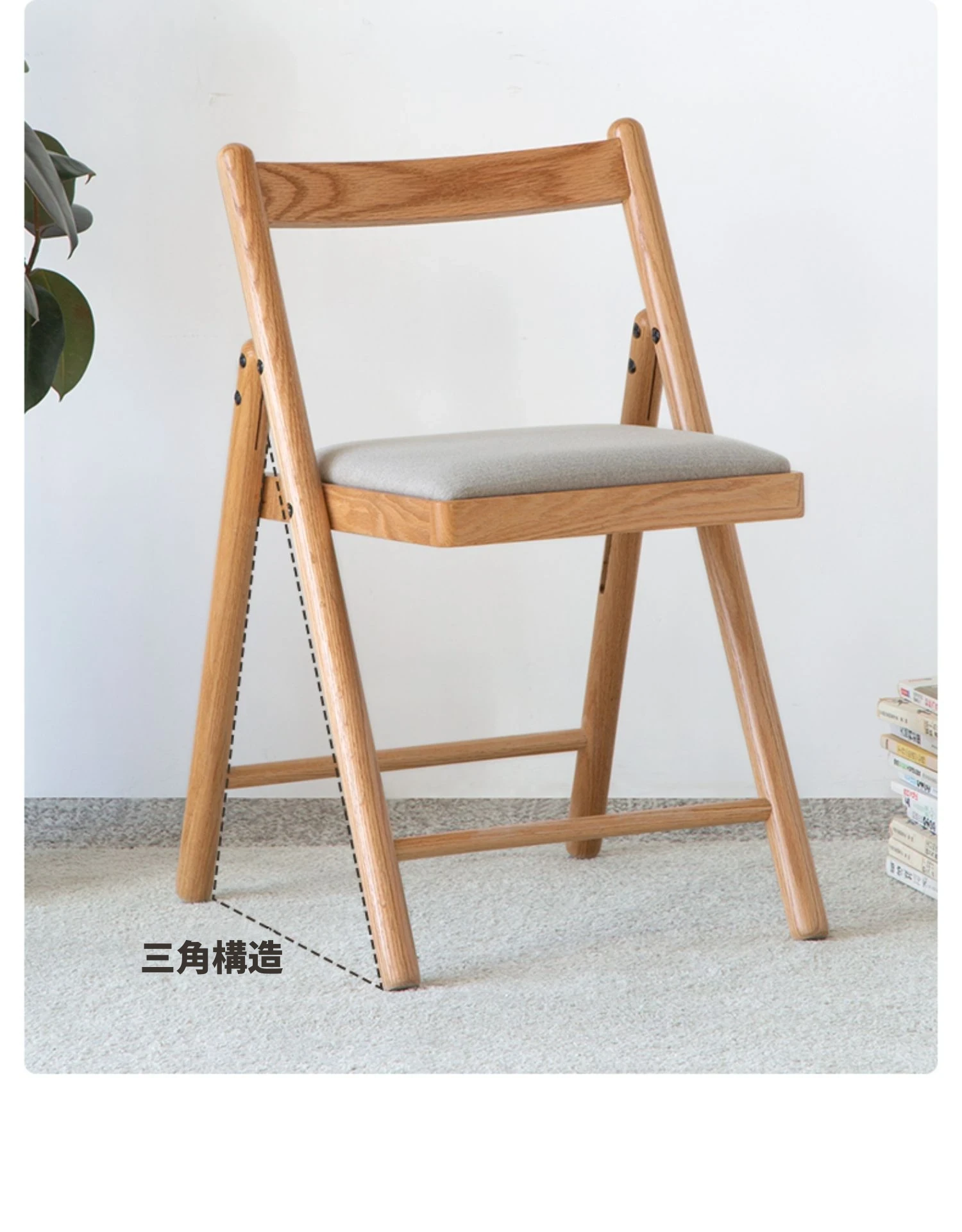 オリジナル素材の無垢材折りたたみダイニングチェア - モダンでシンプル、オークのソフトパッケージデザイン!北欧スタイルのリラックスチェア、小型でもしっかりした背もたれ付き。どんなインテリアにもぴったり!