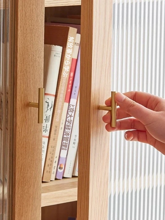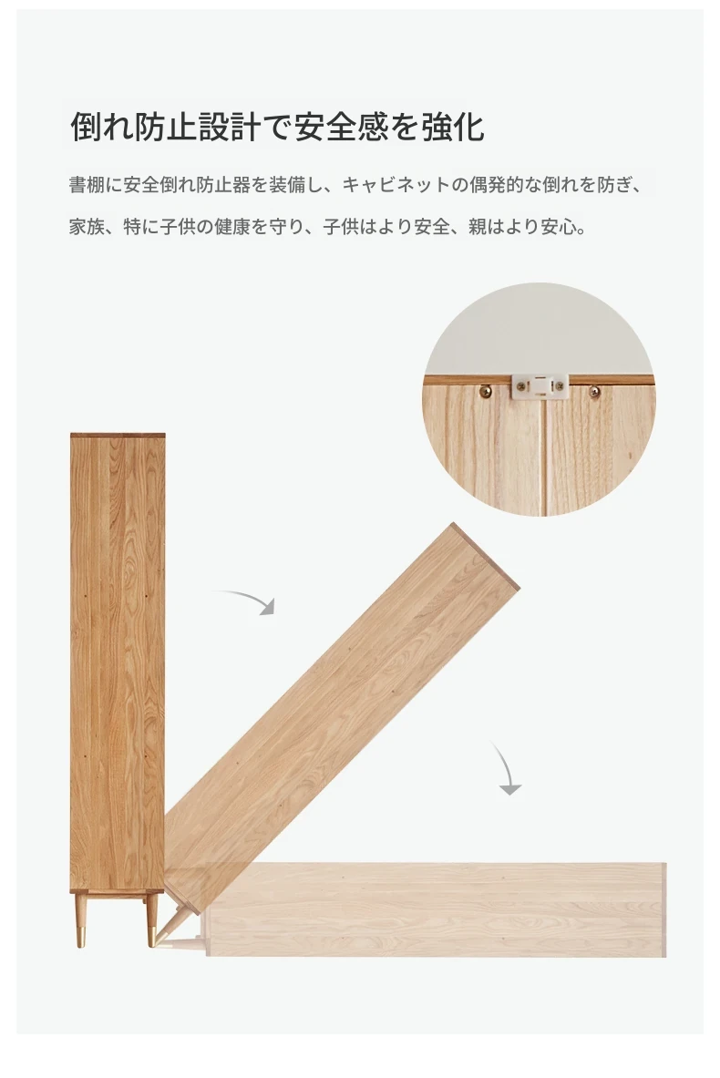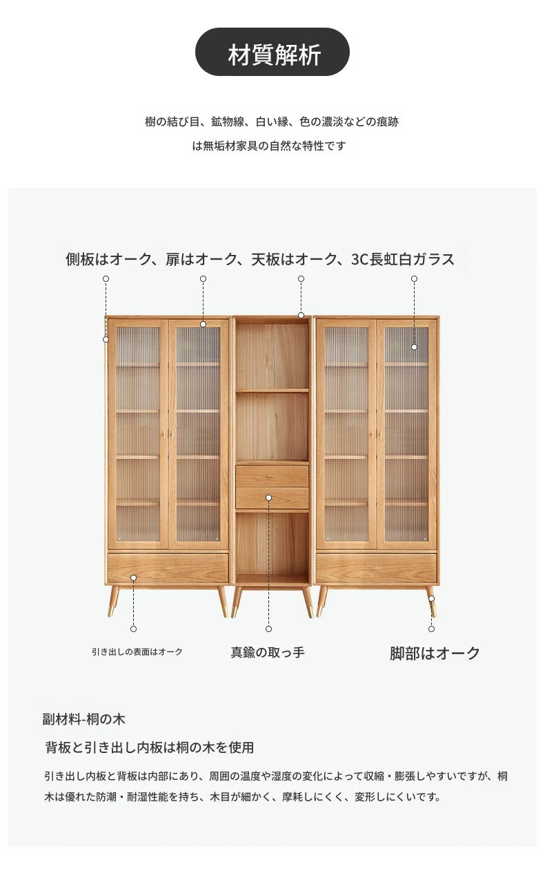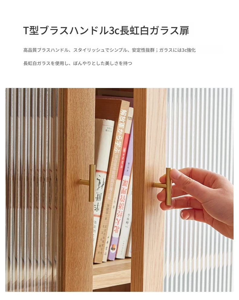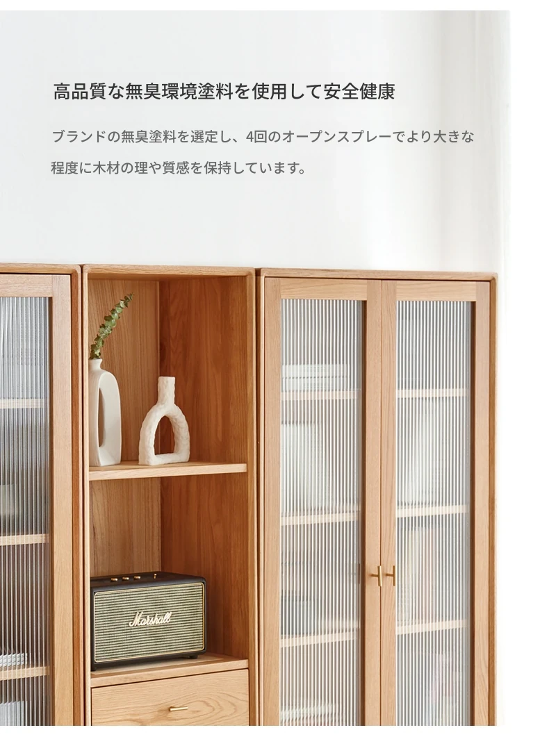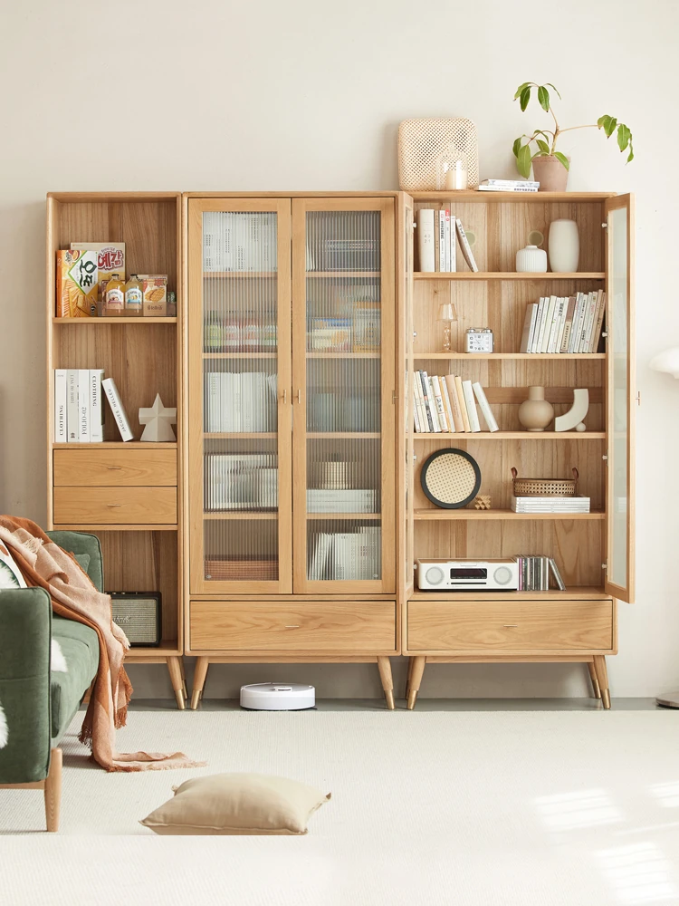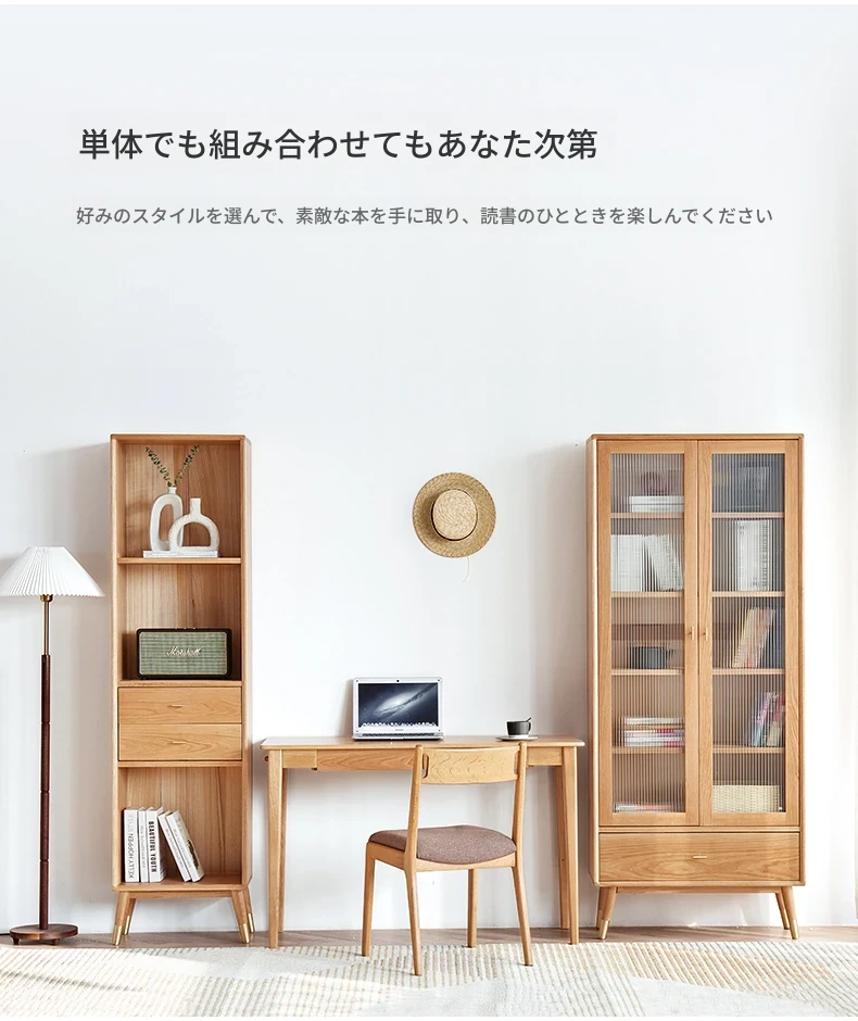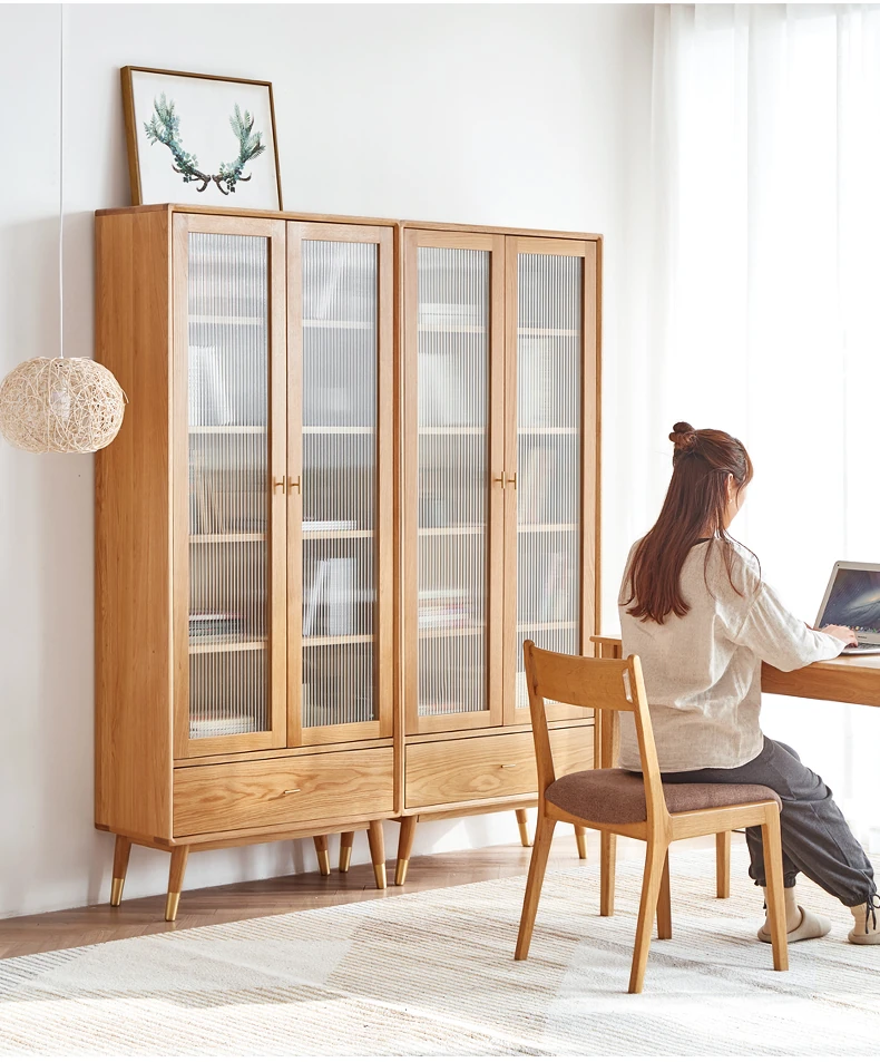 原始エレメント無垢材オールウッド書棚 北欧スタイルのオークダブルドア本棚 小型住宅に最適な書斎家具 家庭用収納書庫で、おしゃれで機能的な空間を演出!