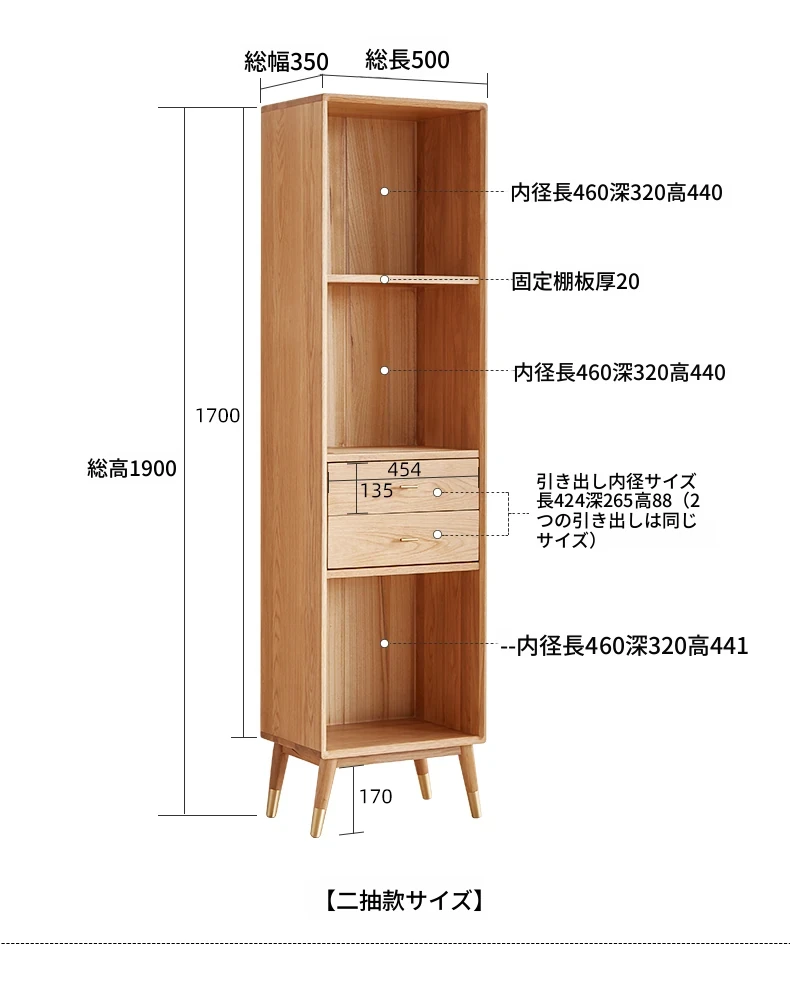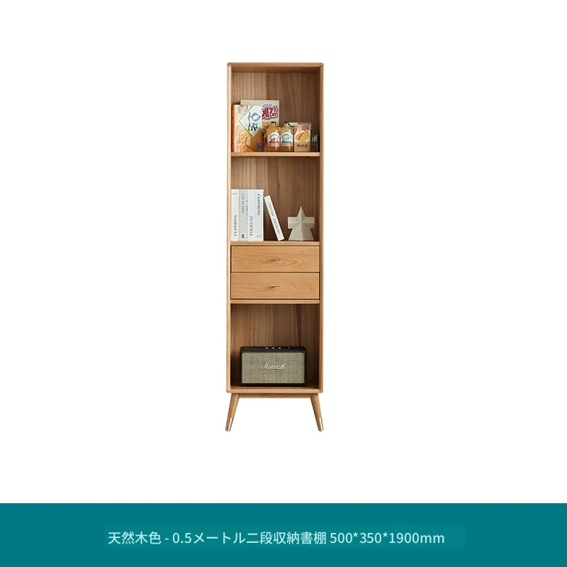 ナチュラルウッド色-二段引き出し書棚 500*350*1900mm