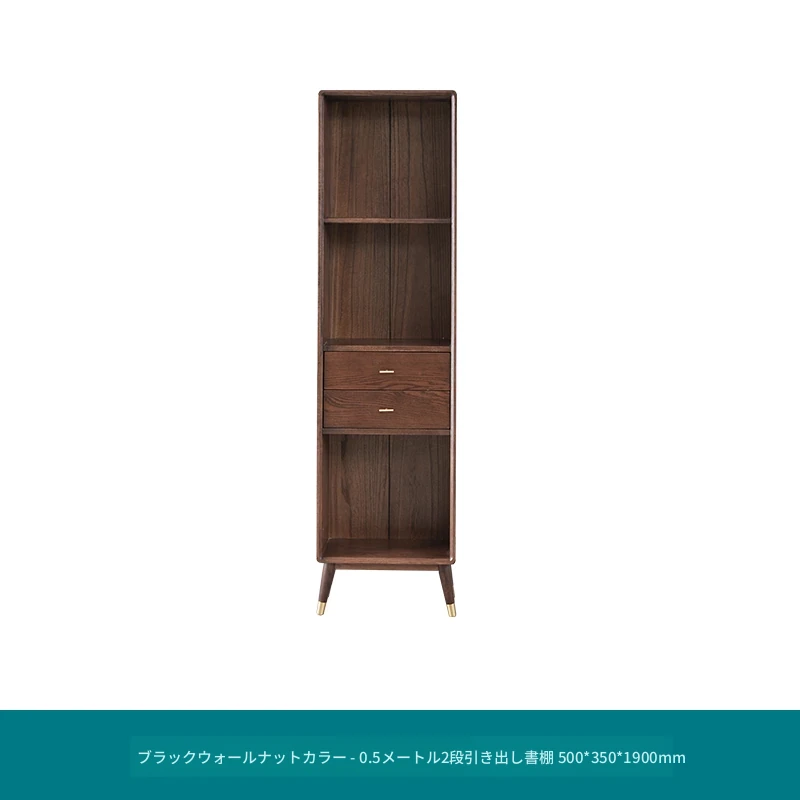 ウォールナット色-二段引き出し書棚 500*350*1900mm