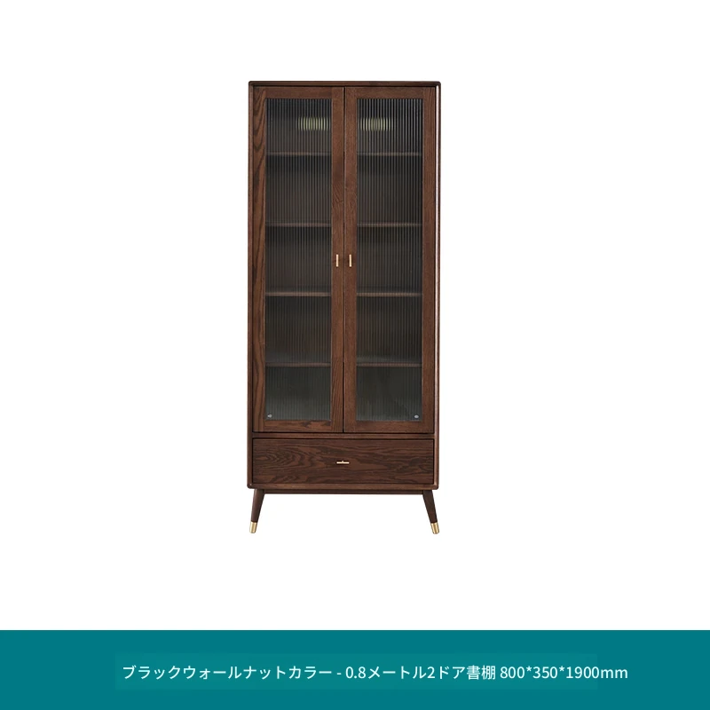 ウォールナット色-二ドア書棚 800*350*1900mm