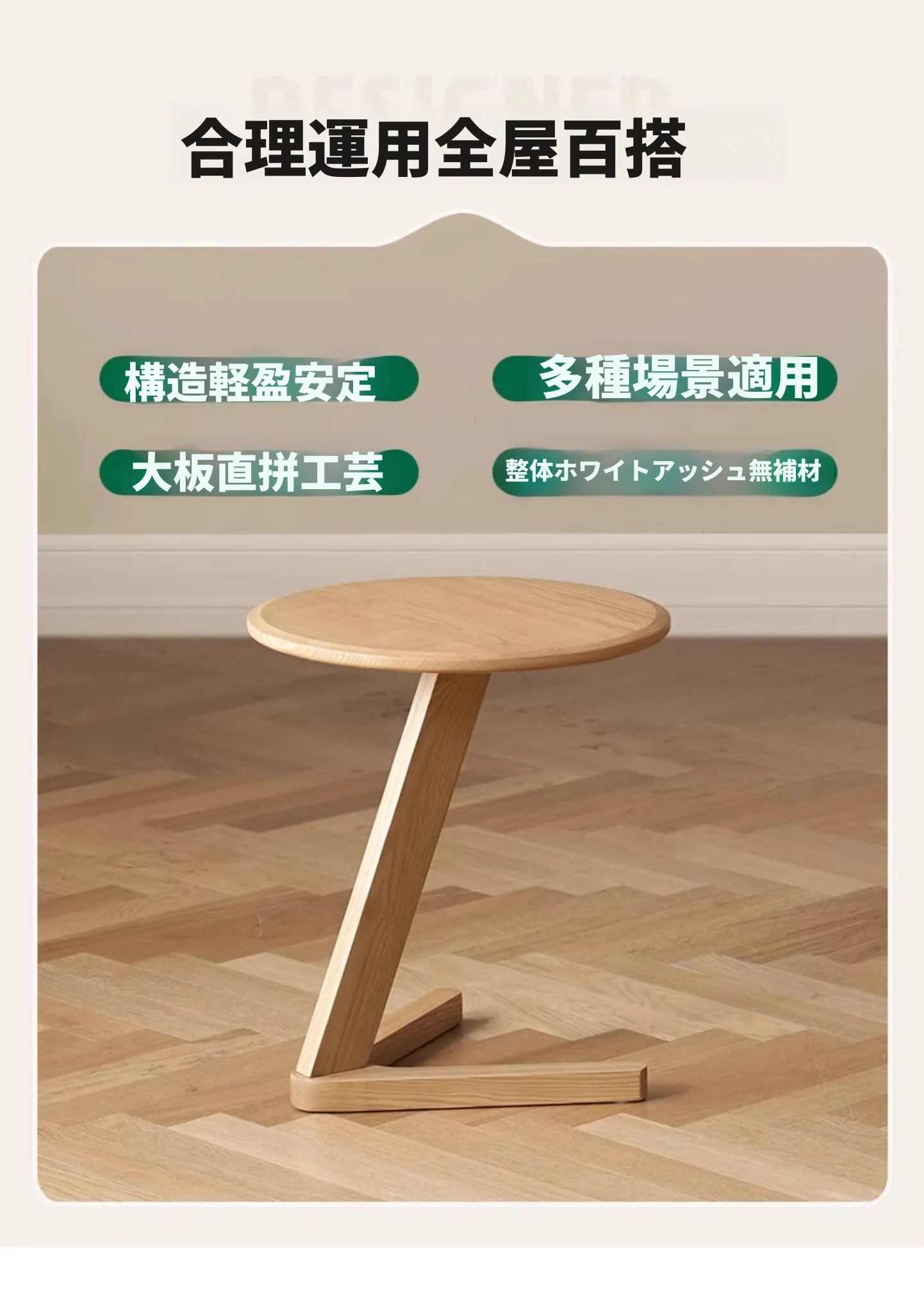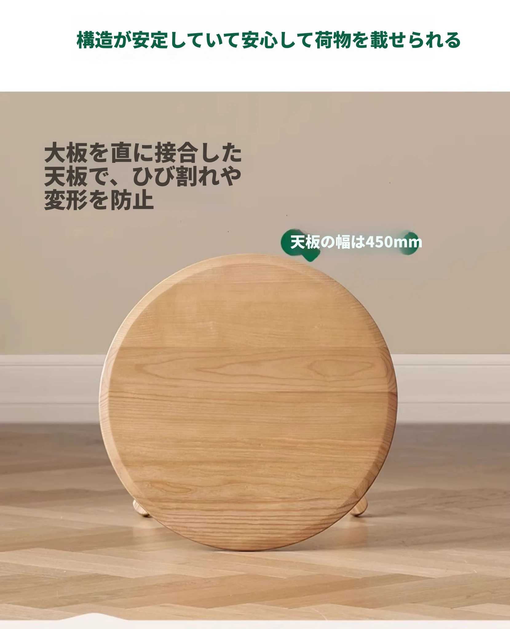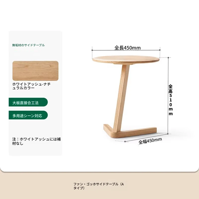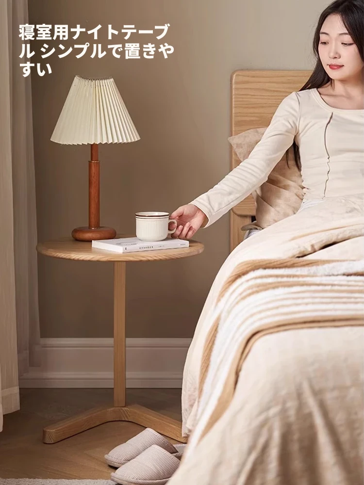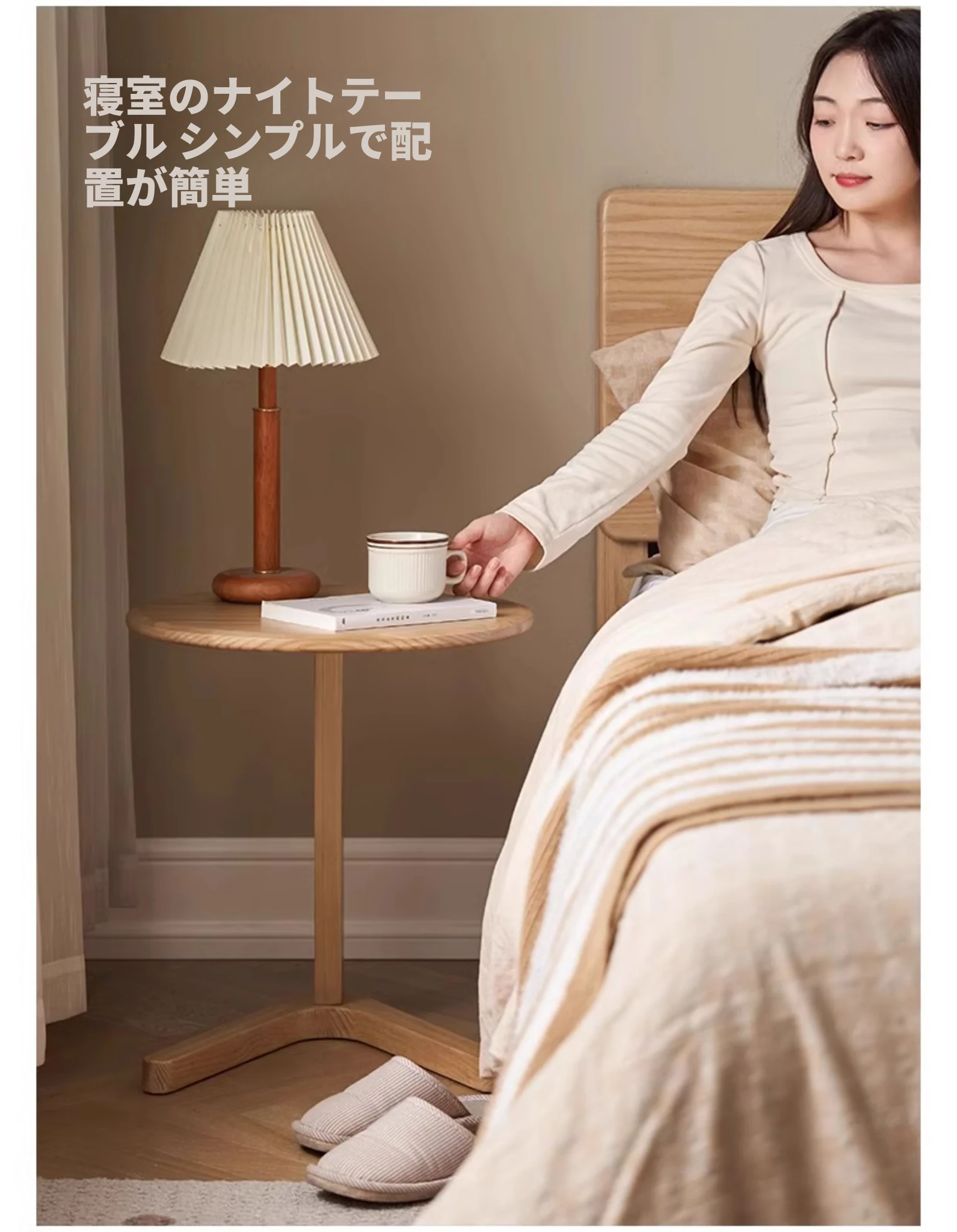 原木の魅力たっぷり!天然無垢材のシンプルなサイドテーブル - ホワイトアッシュ製、リビングやベッドサイドに最適な小さなサークルテーブル!読書の時間を贅沢に演出します。