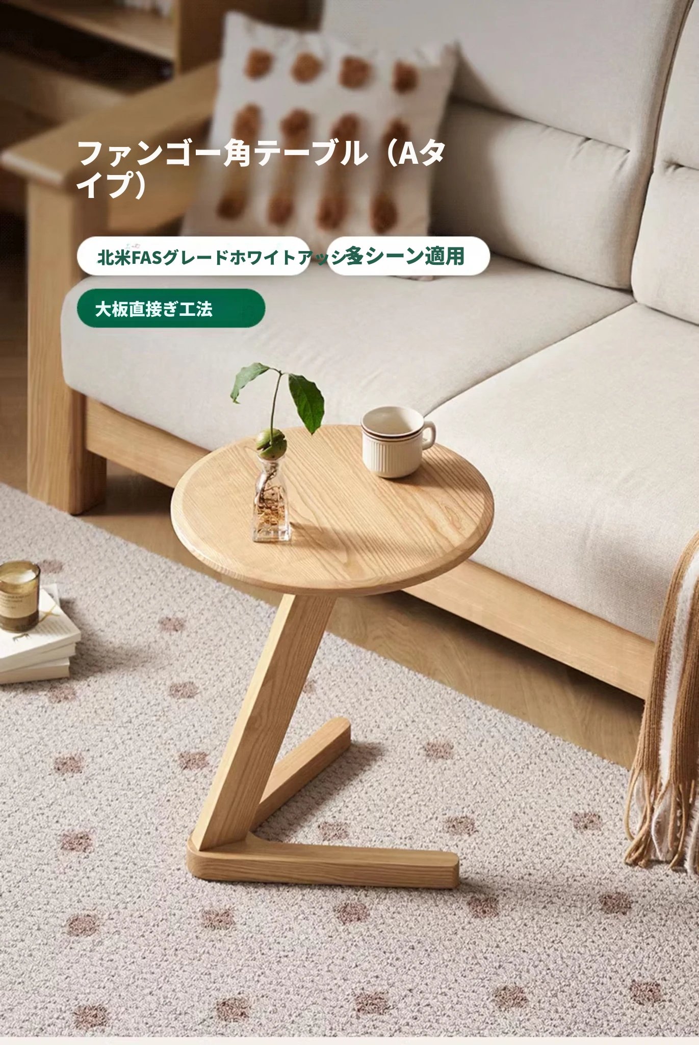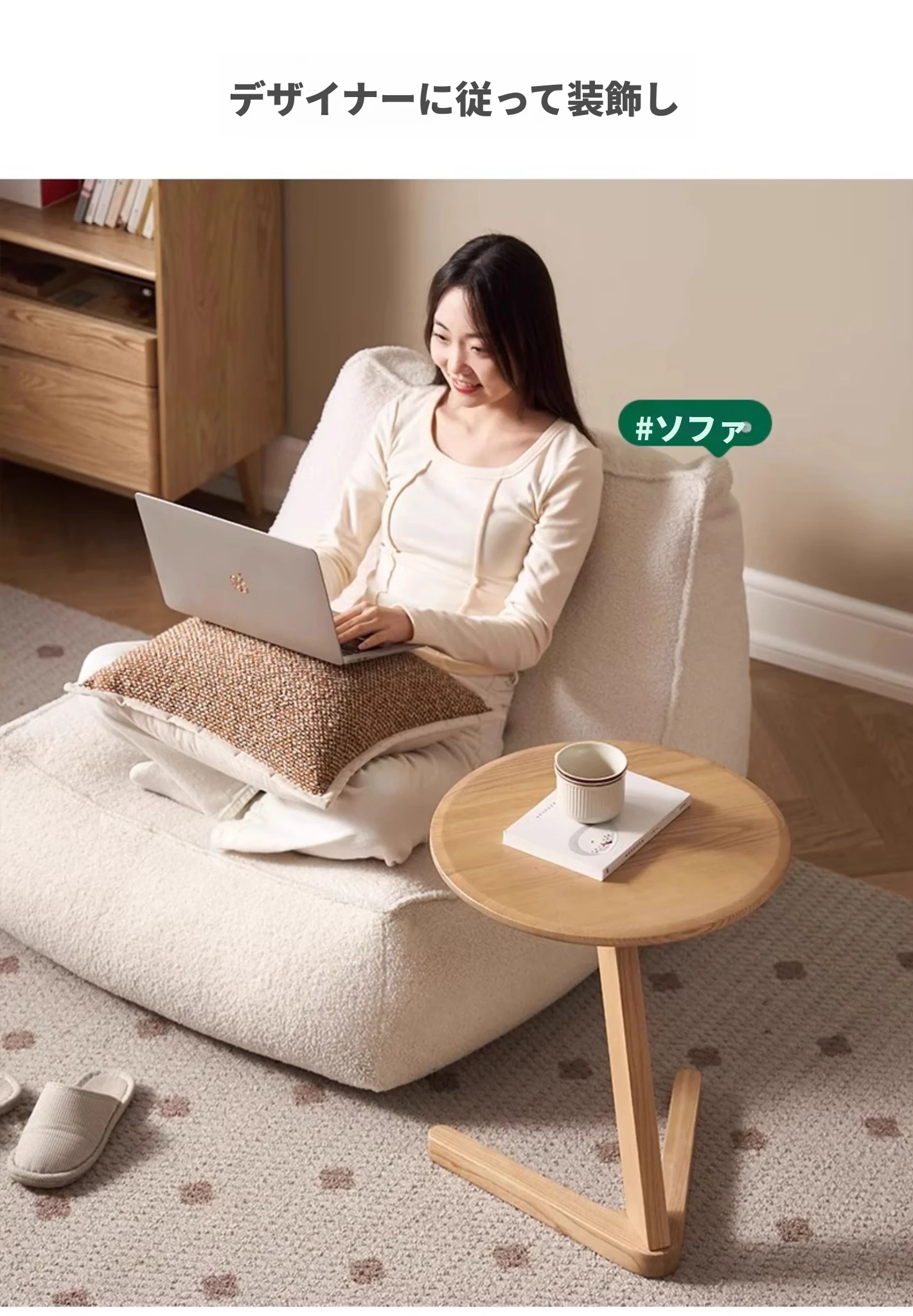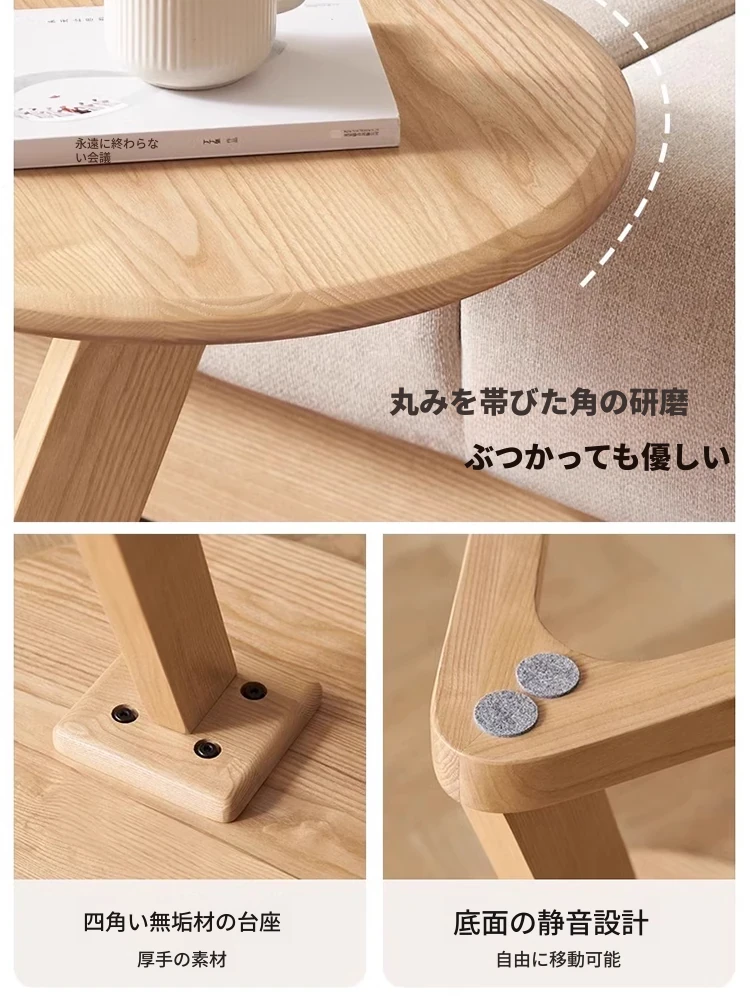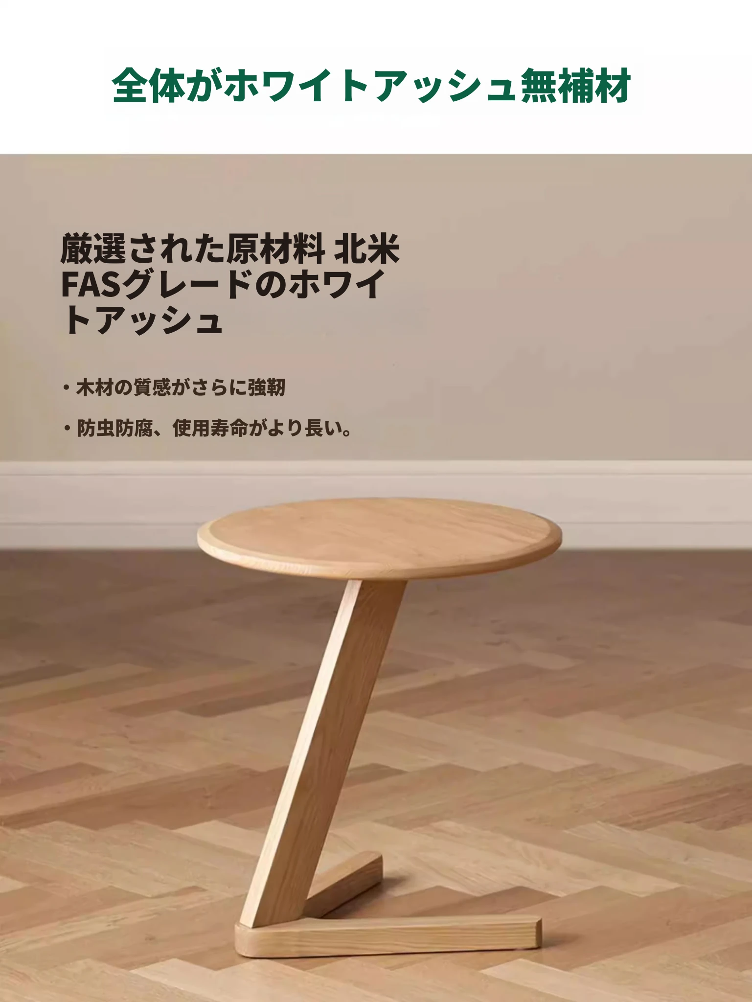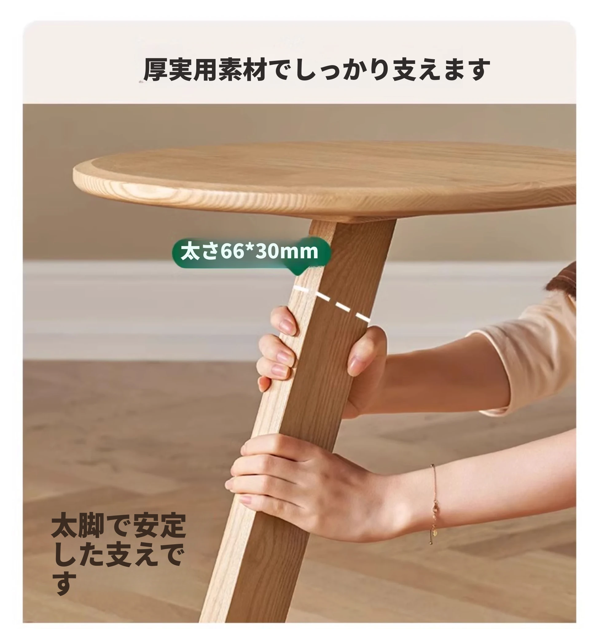 原木の魅力たっぷり!天然無垢材のシンプルなサイドテーブル - ホワイトアッシュ製、リビングやベッドサイドに最適な小さなサークルテーブル!読書の時間を贅沢に演出します。
