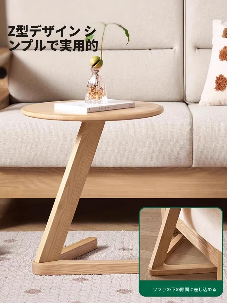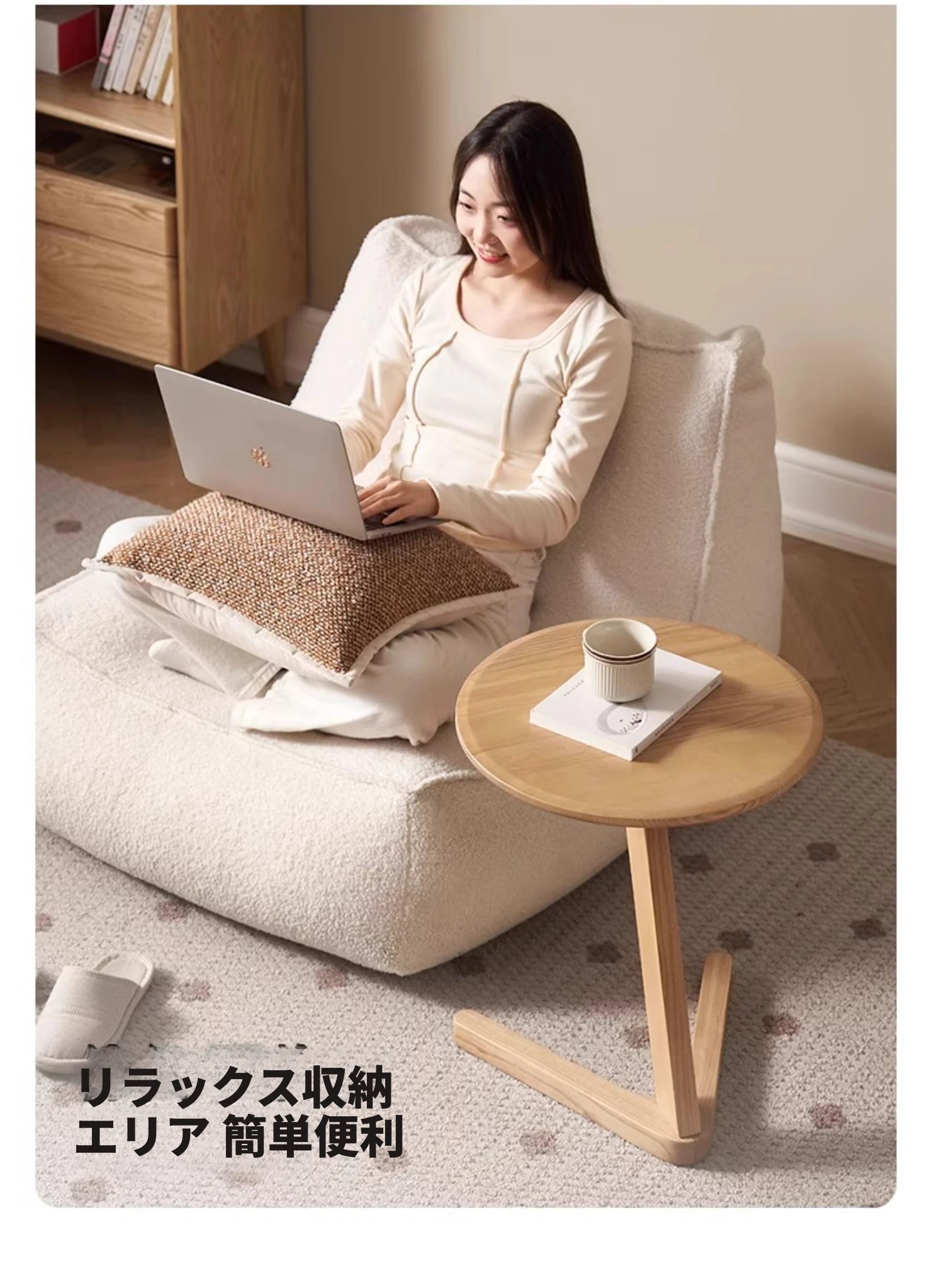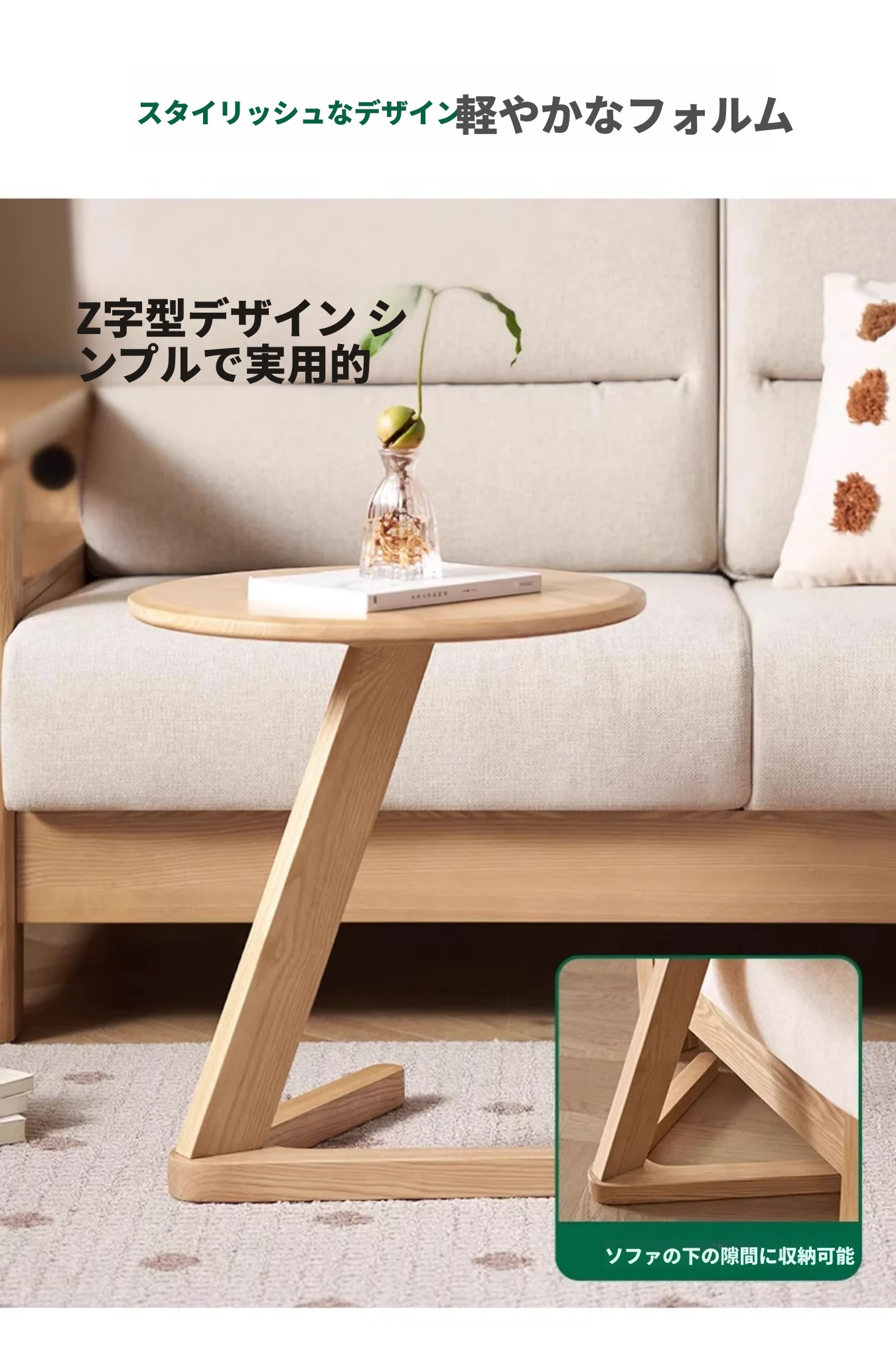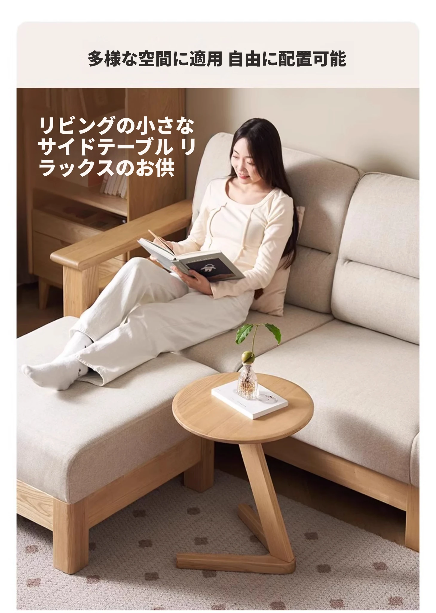 原木の魅力たっぷり!天然無垢材のシンプルなサイドテーブル - ホワイトアッシュ製、リビングやベッドサイドに最適な小さなサークルテーブル!読書の時間を贅沢に演出します。