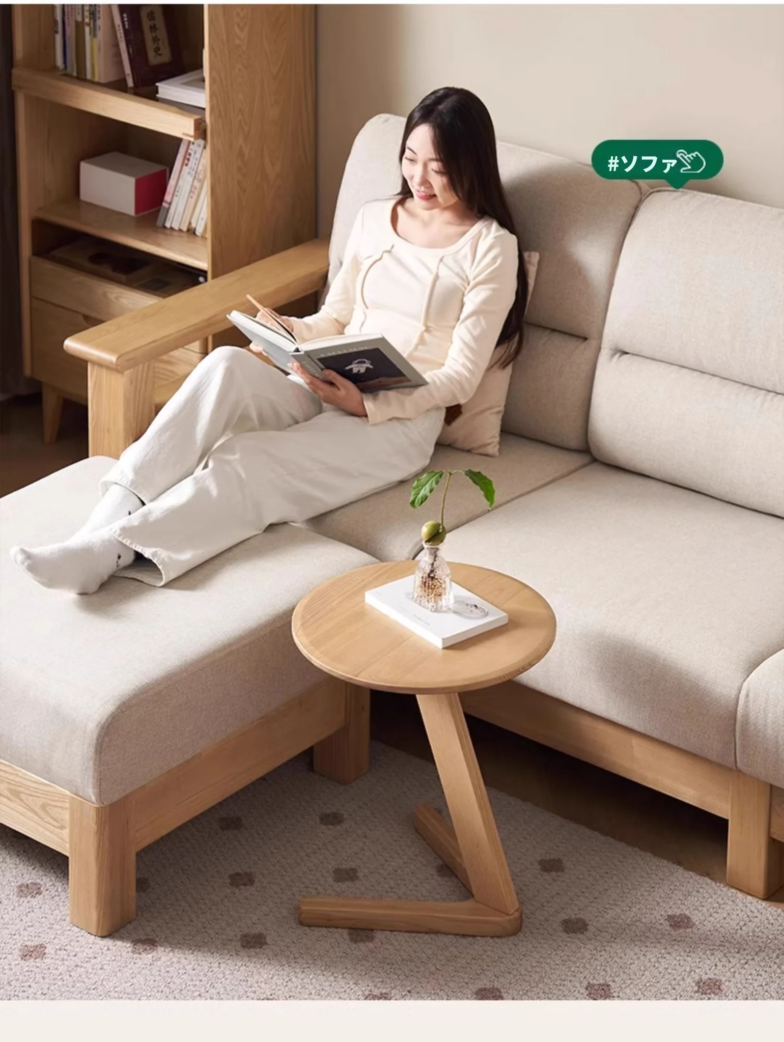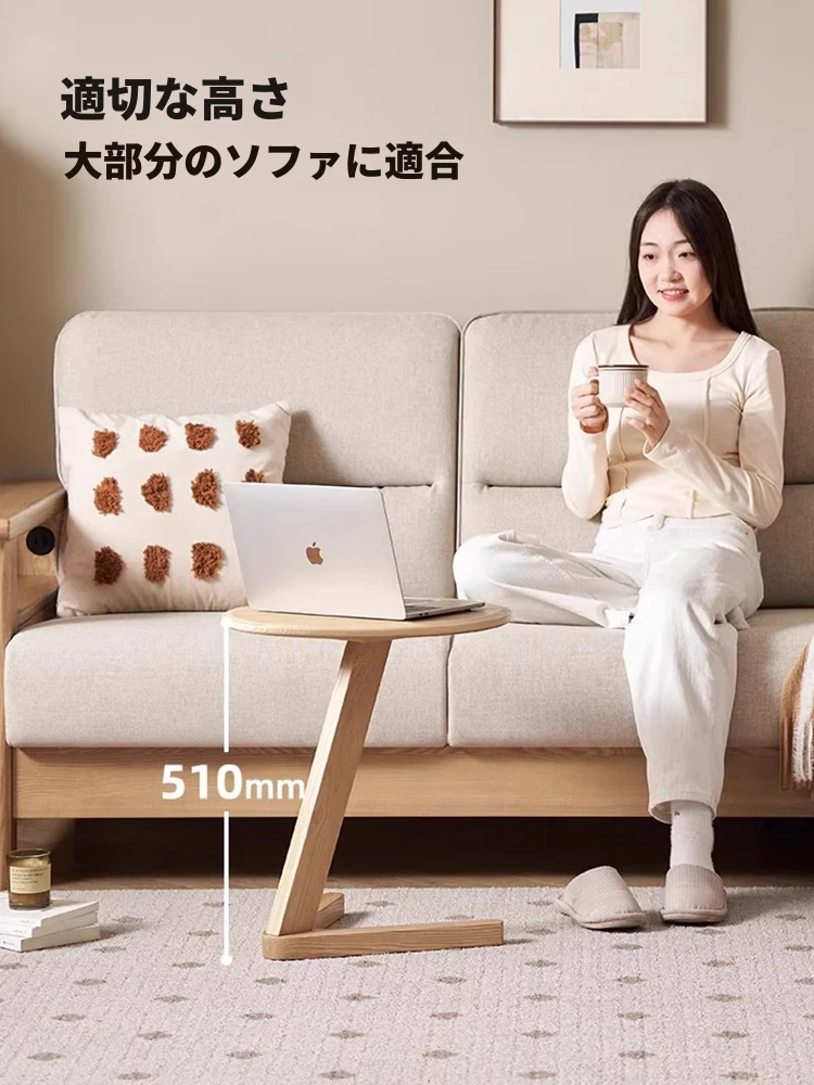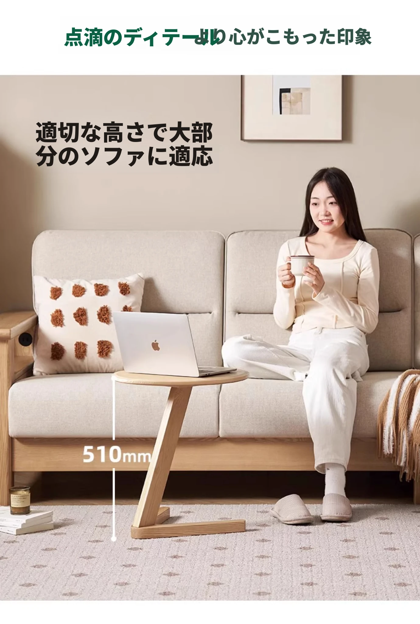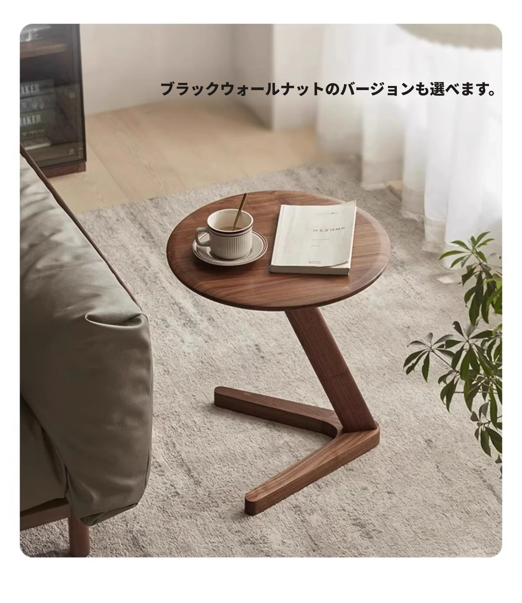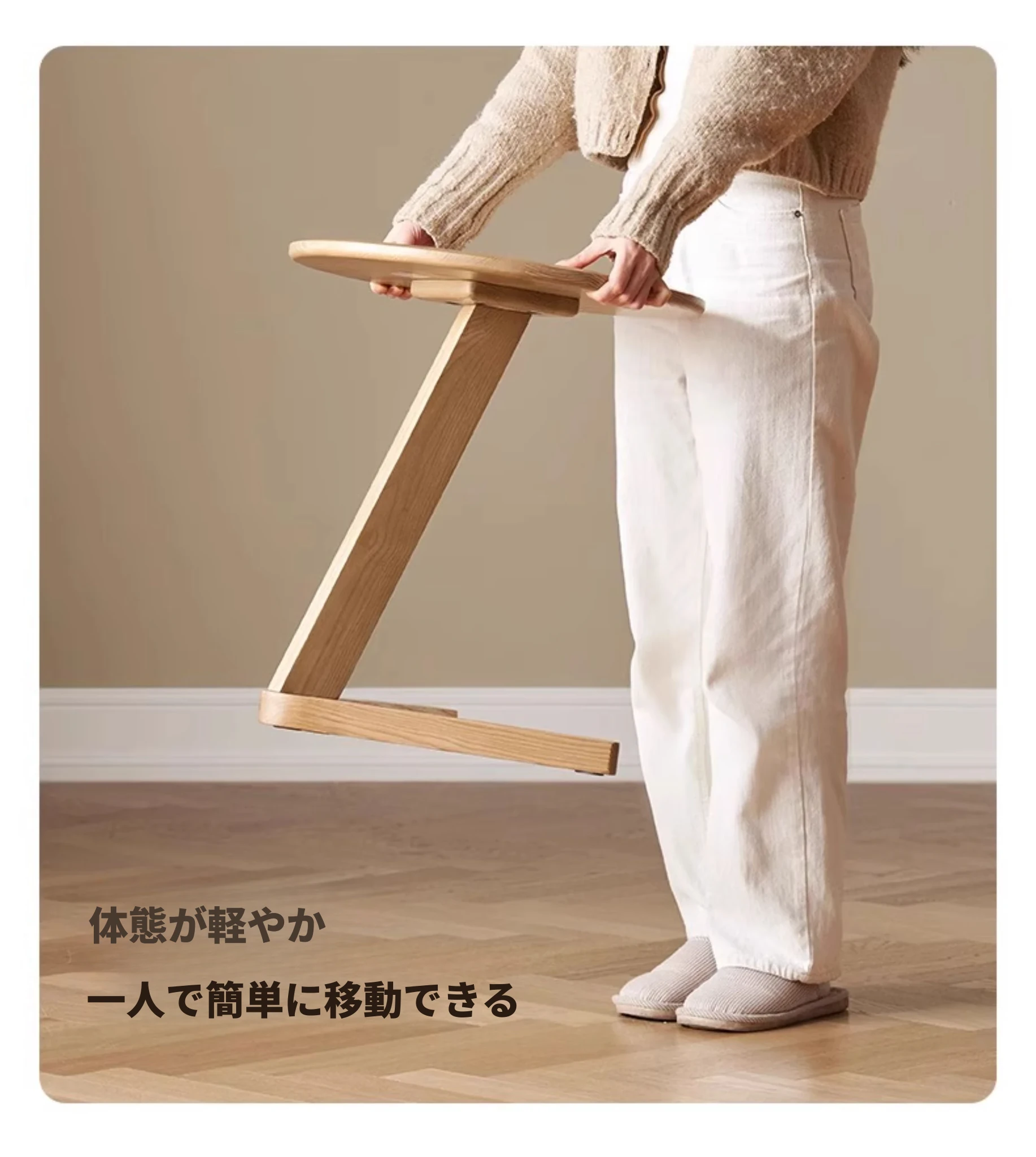 原木の魅力たっぷり!天然無垢材のシンプルなサイドテーブル - ホワイトアッシュ製、リビングやベッドサイドに最適な小さなサークルテーブル!読書の時間を贅沢に演出します。