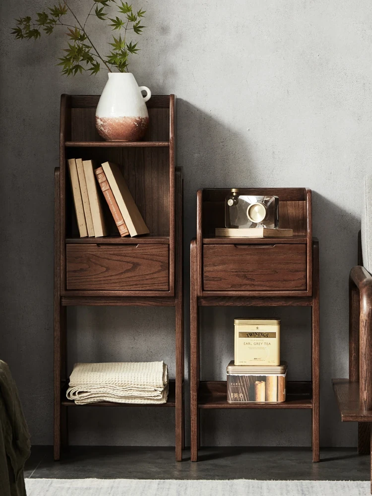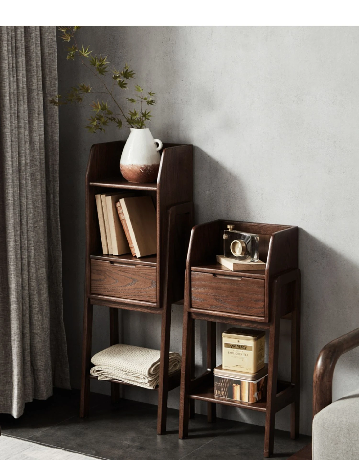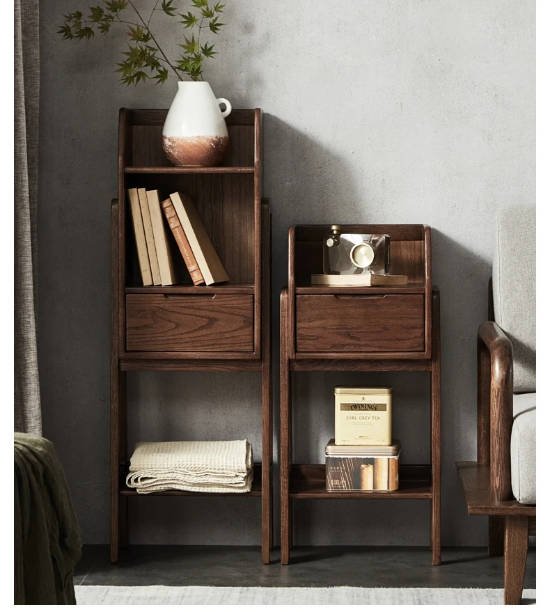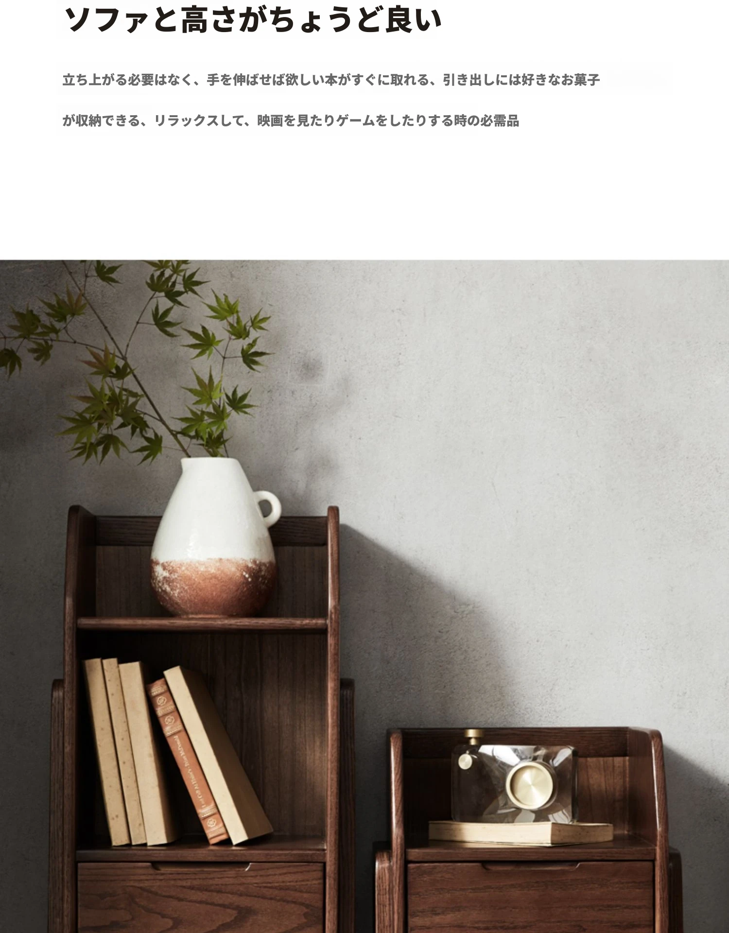 オリジナルエレメント全無垢材スリムシェルフ 北欧スタイルのオーク小書棚!家庭用サイドキャビネット、リビングのテレビやソファの横にぴったりな収納家具です。素敵なデザインでお部屋があっという間におしゃれに!