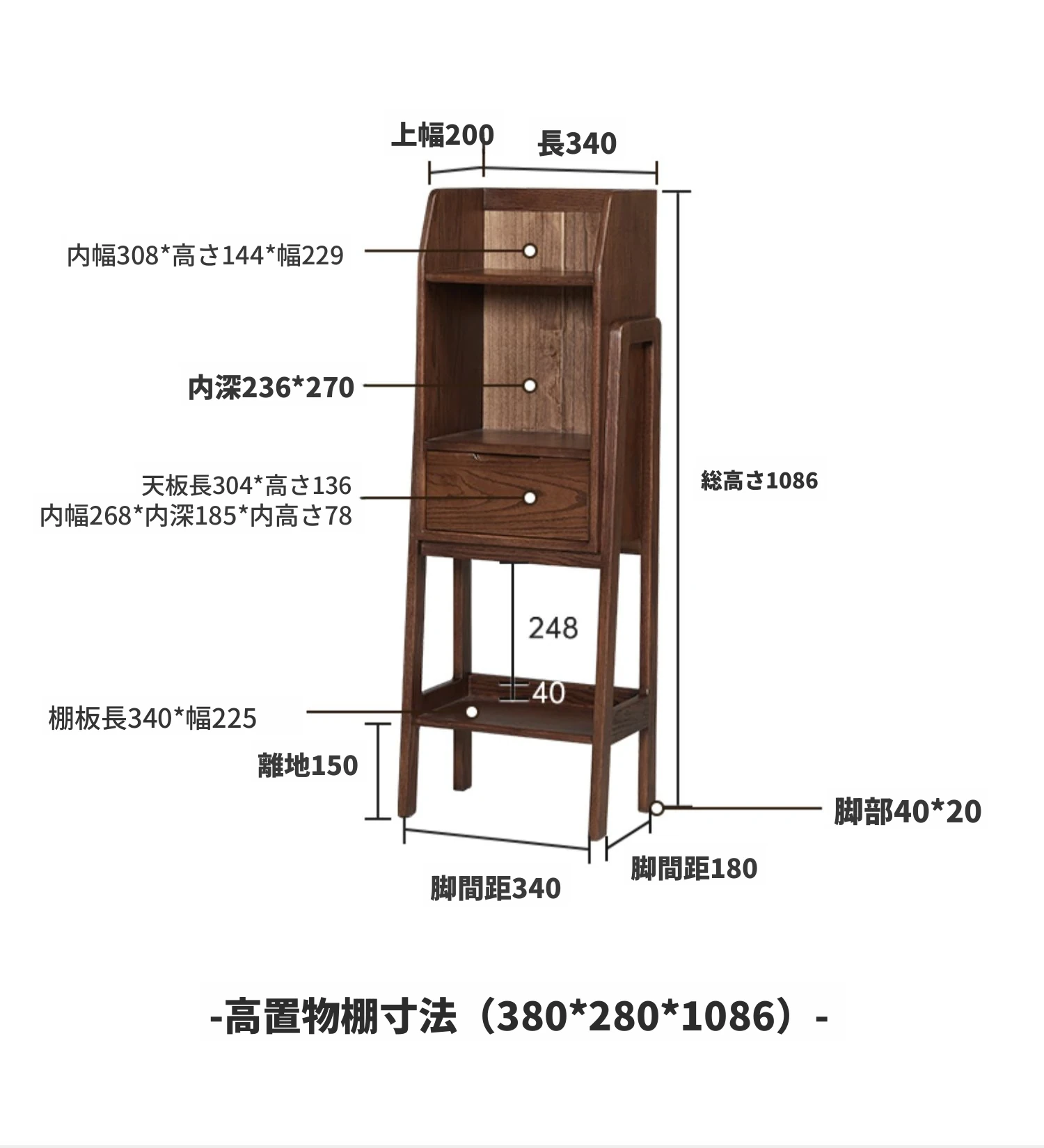 【ウォルナット色】オークシェルフ(ハイタイプ)380*280*1086mm
