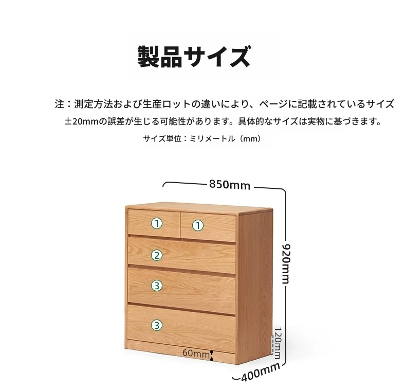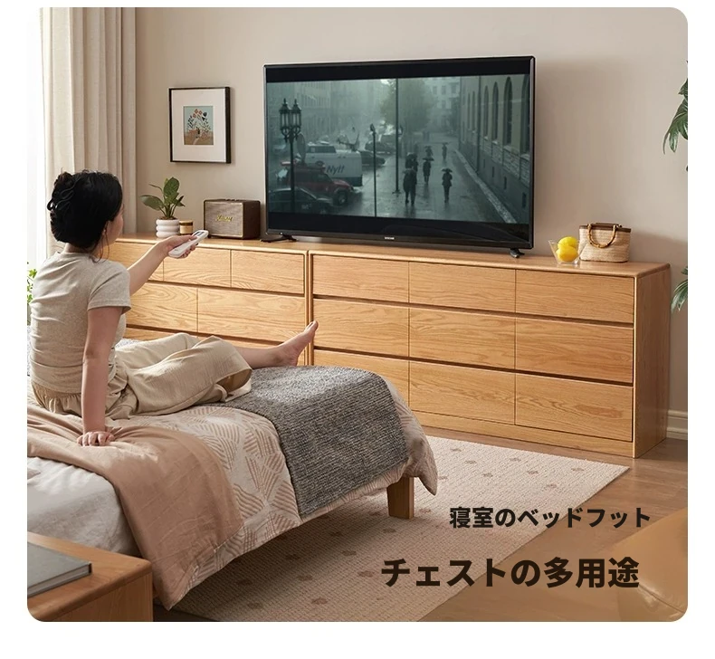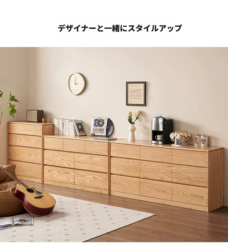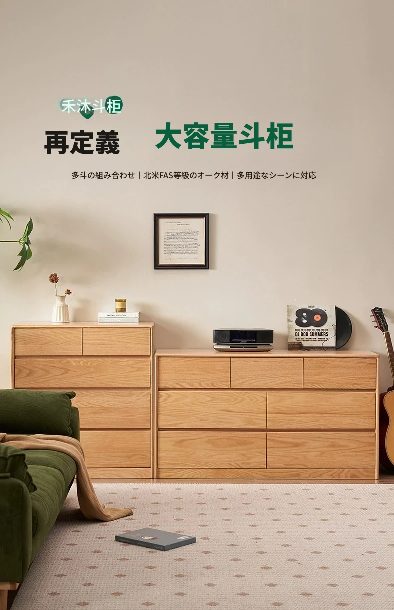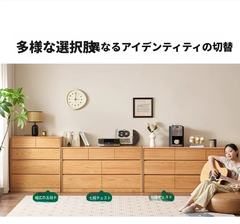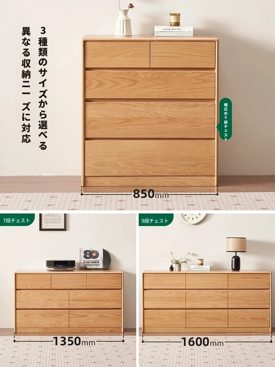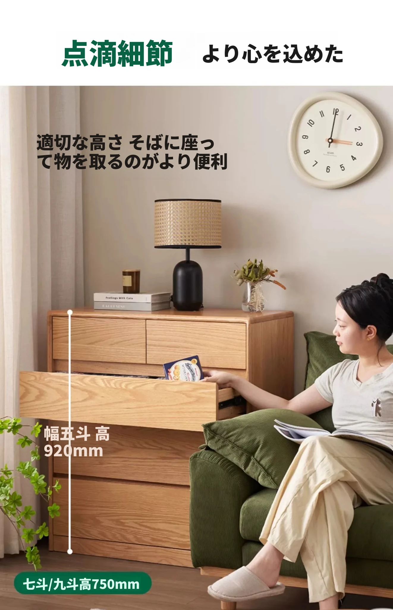 天然素材の本格木製5段チェスト、北欧スタイルのオーク収納キャビネット。壁に寄せて安心設置!ベッドサイドやリビングに最適な両用デザイン。美しい仕上げでお部屋を華やかに彩ります!