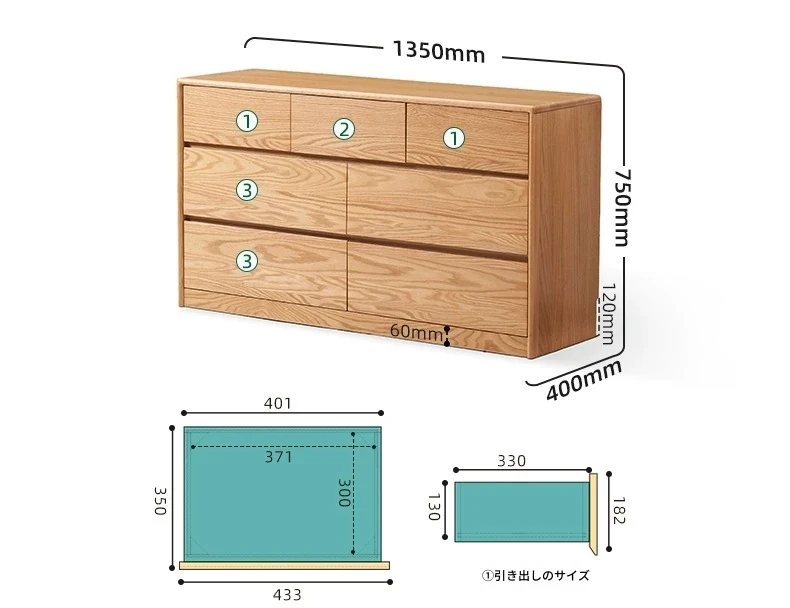 【オーク-ナチュラル】禾沐ダンス(フロア)-幅七段 1350*400*750mm