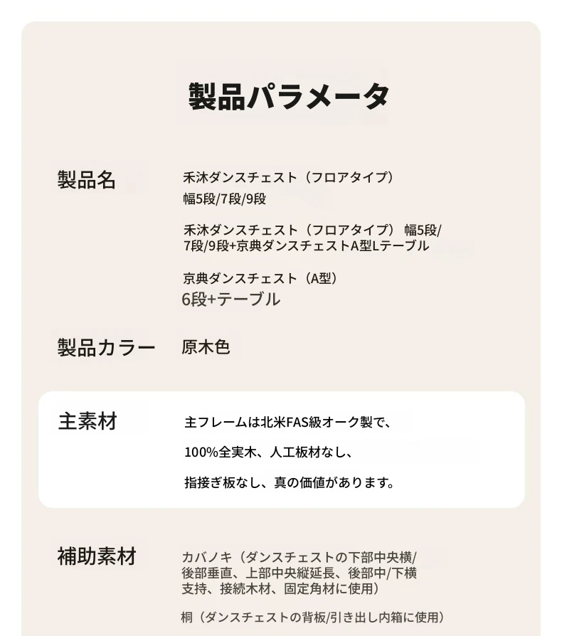 【オーク-ナチュラル】禾沐ダンス(フロア)-幅五段 850*400*920mm