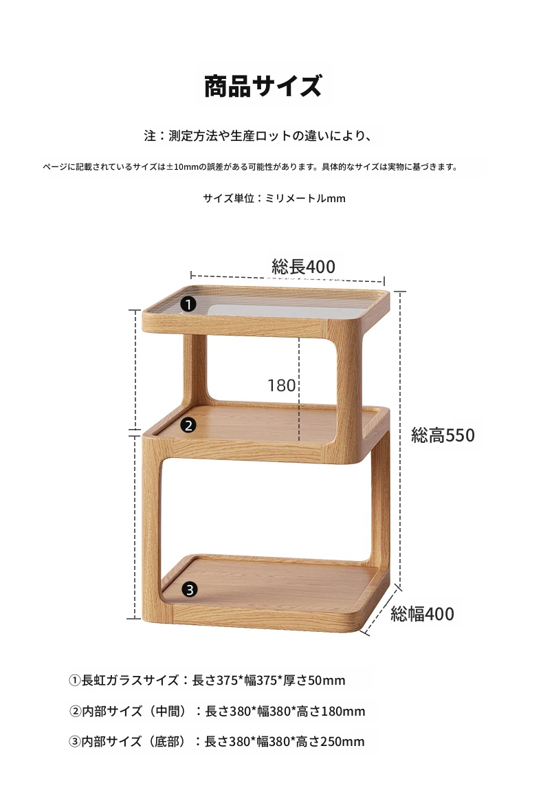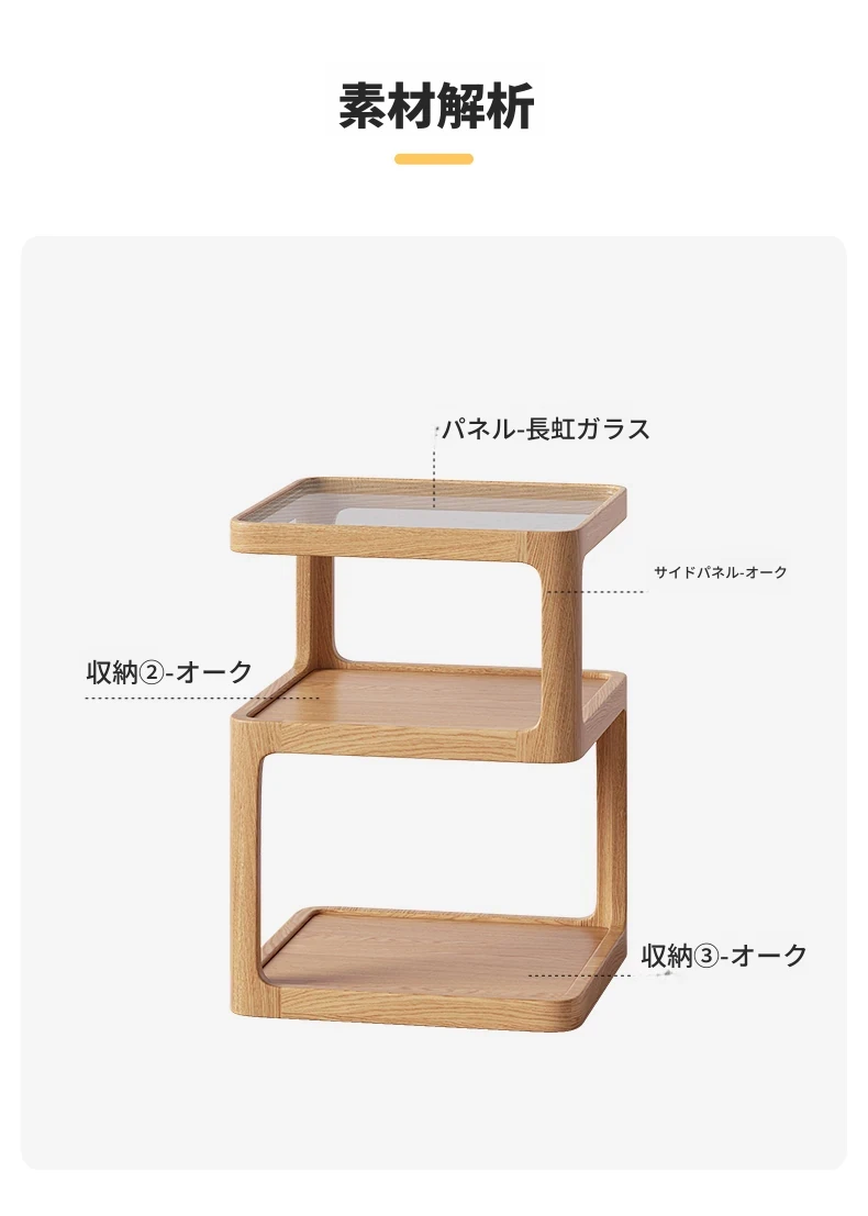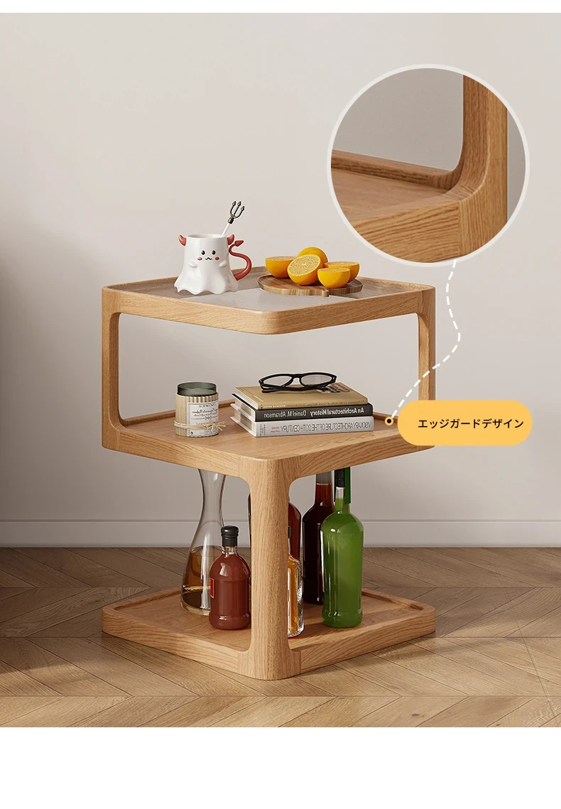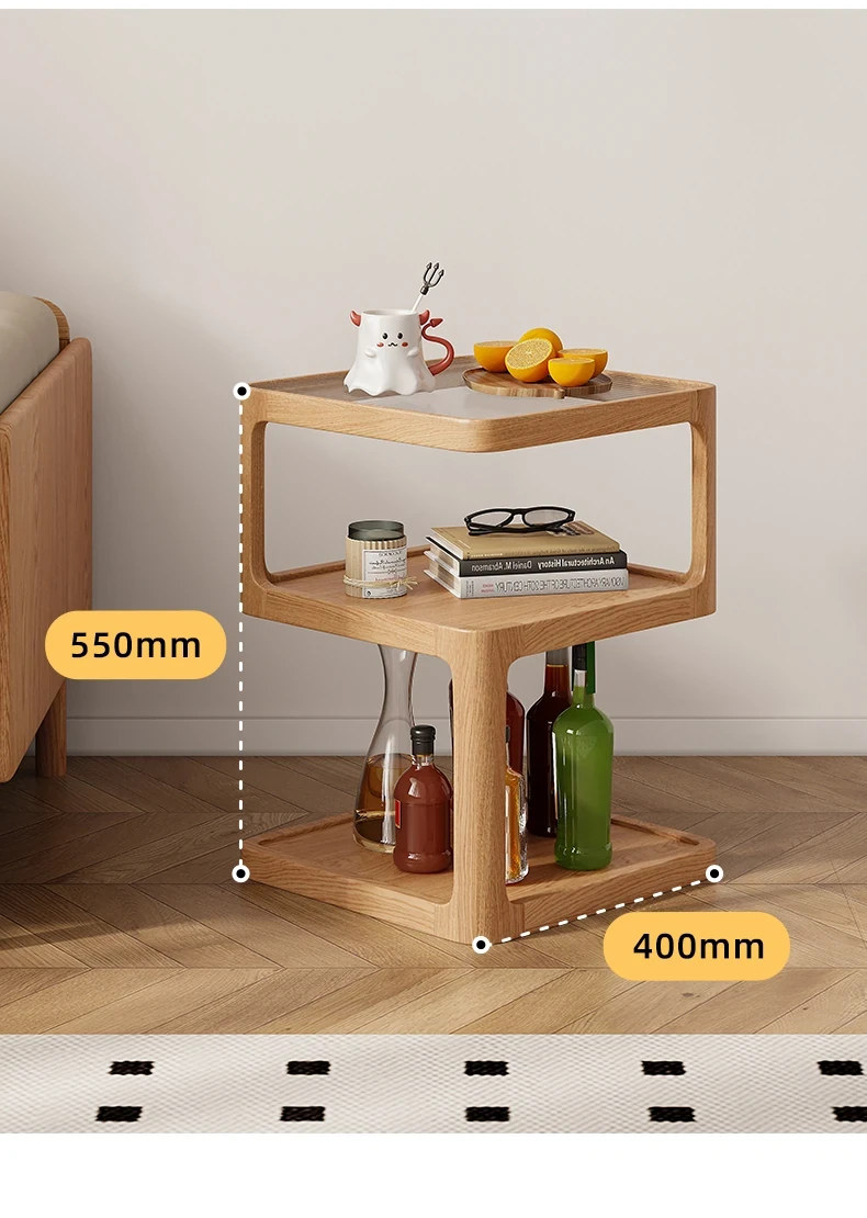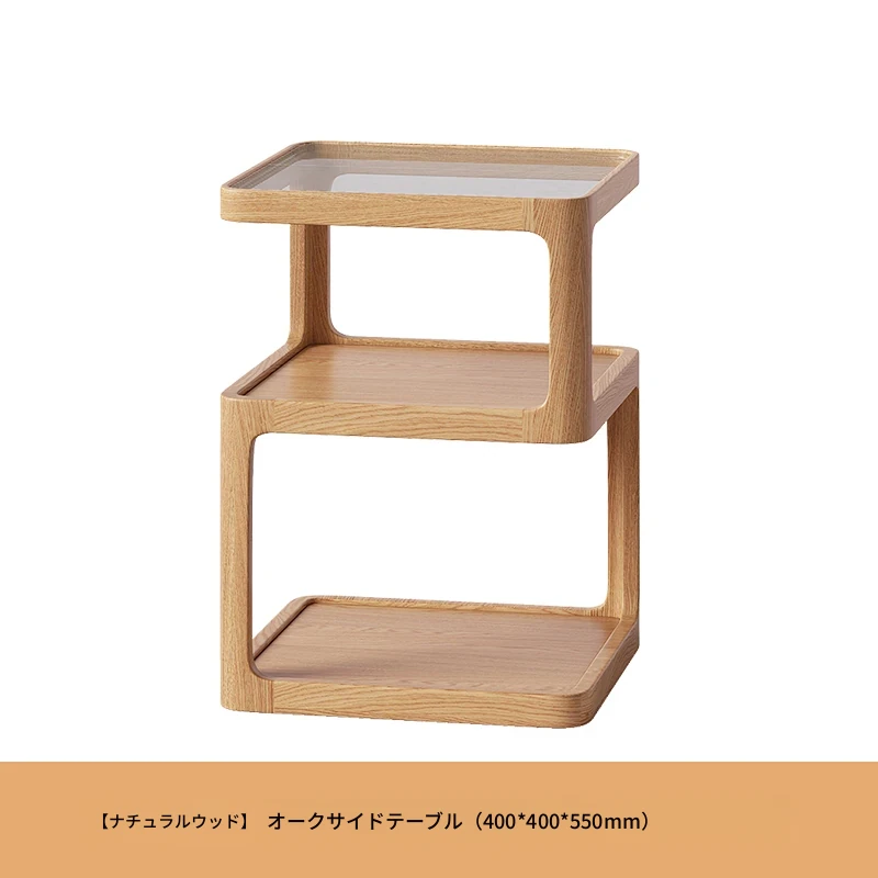 原木色-オーク材三層サイドテーブル 400*400*550mm