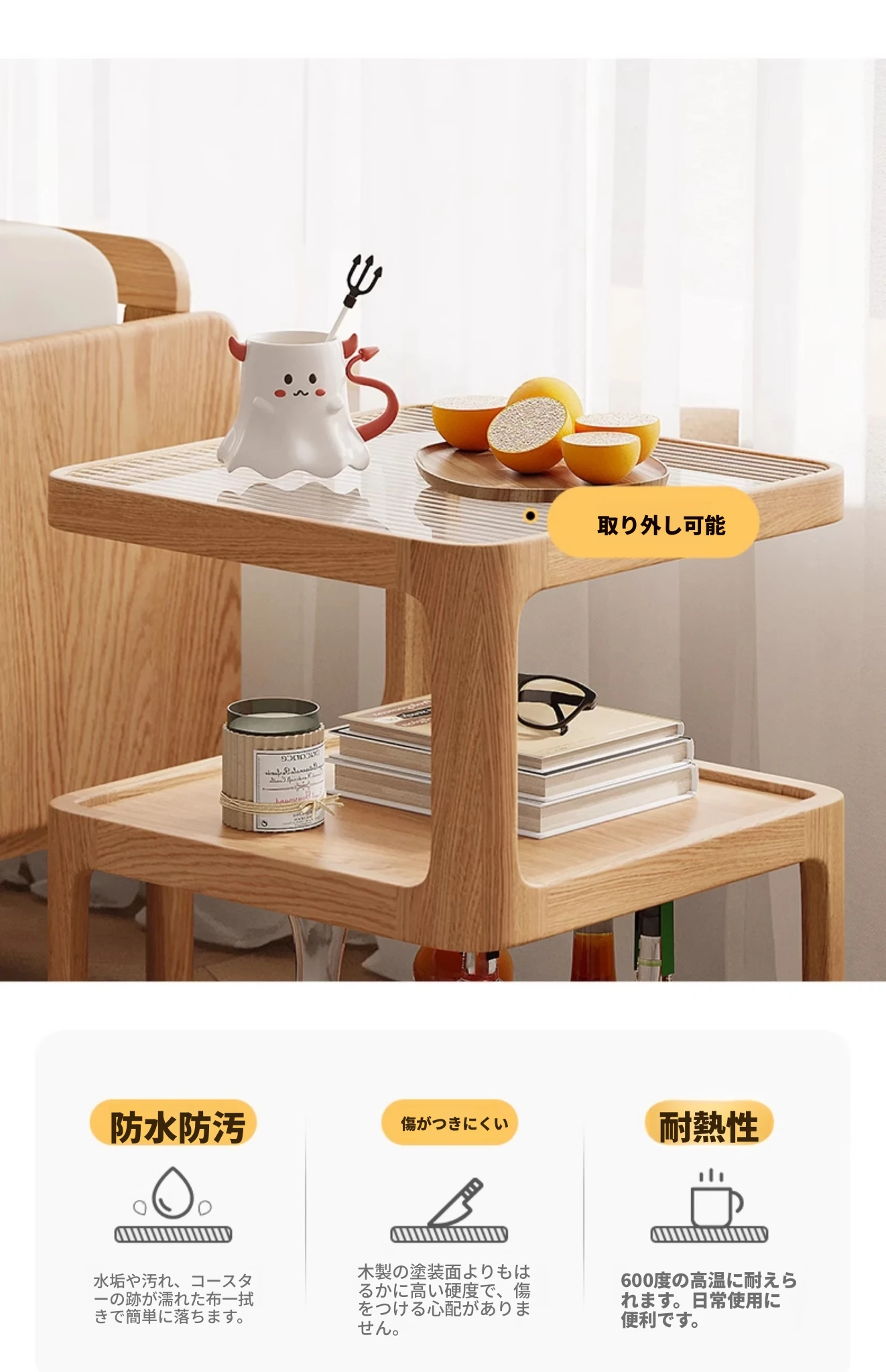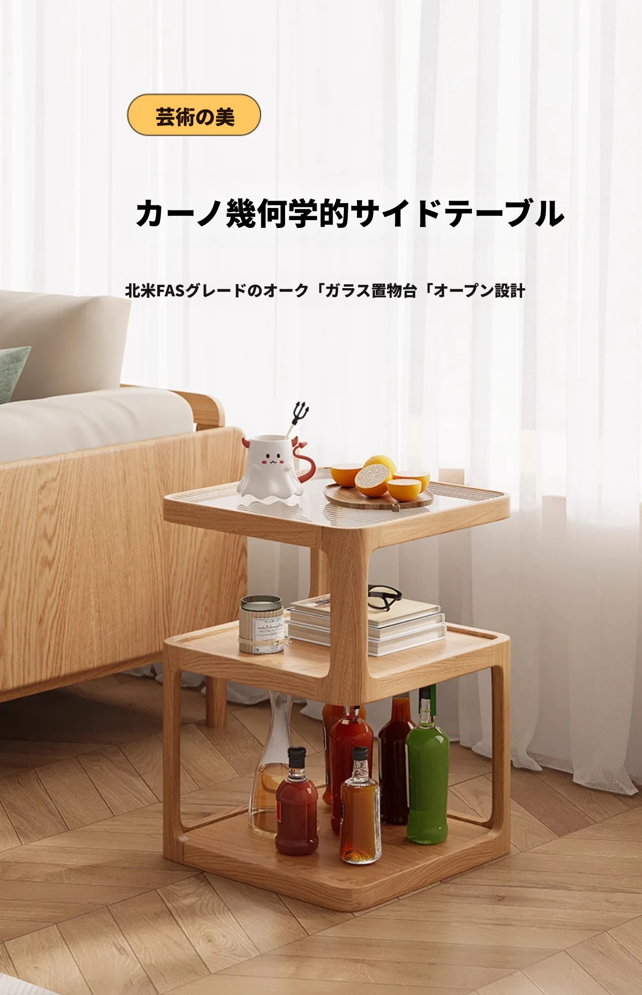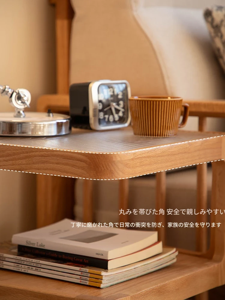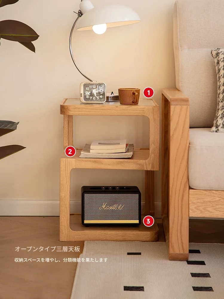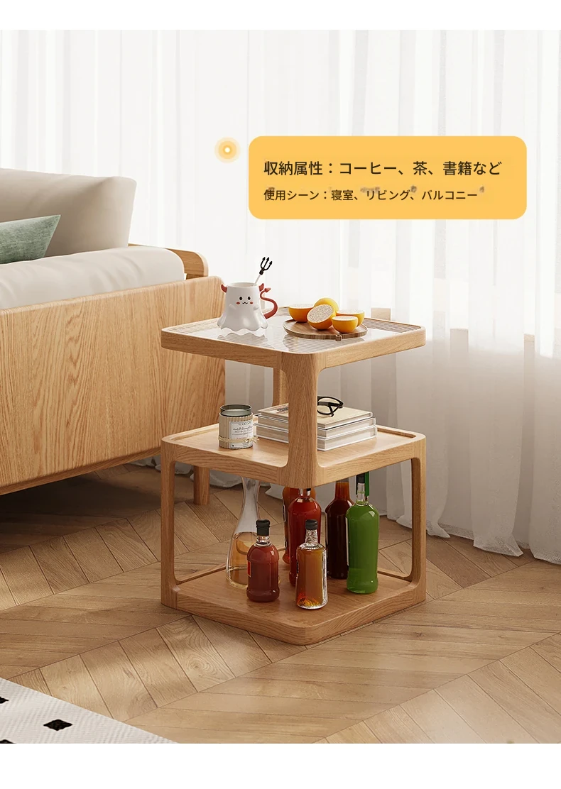 原木色-オーク材三層サイドテーブル 400*400*550mm