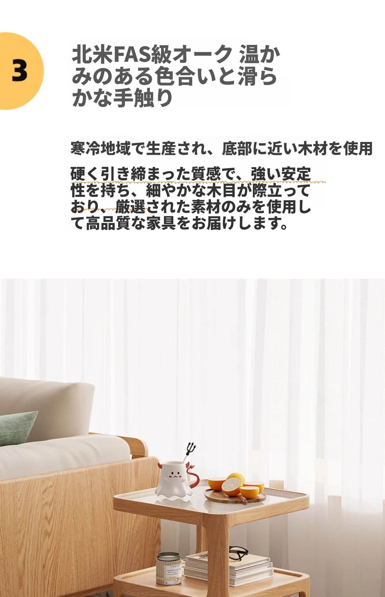 北欧スタイルの現代的でシンプルなオーク製リビングテーブル - 美しいデザインでお部屋を華やかに、収納力も抜群!