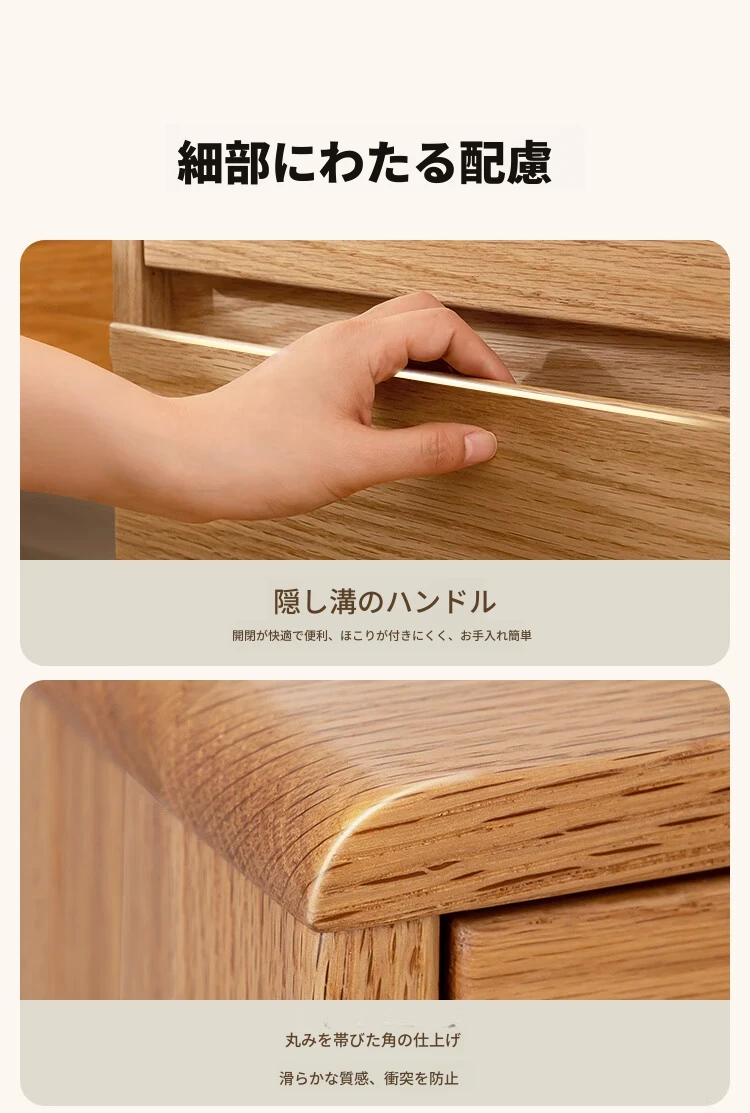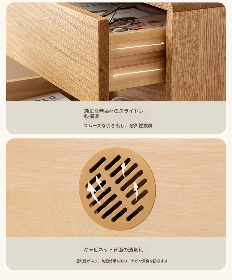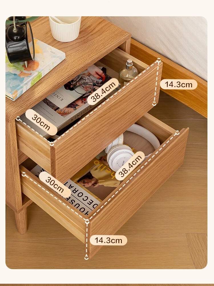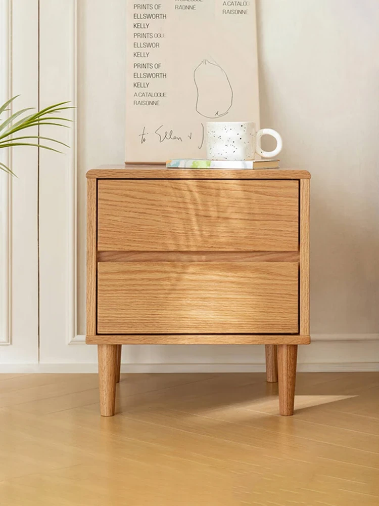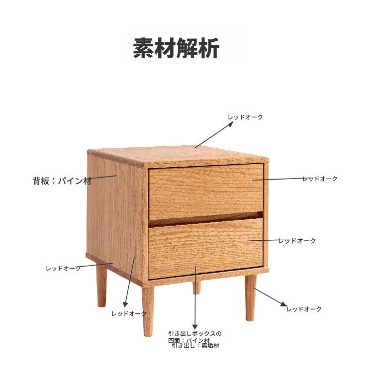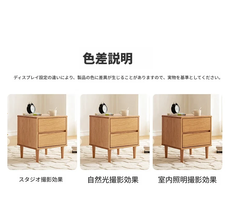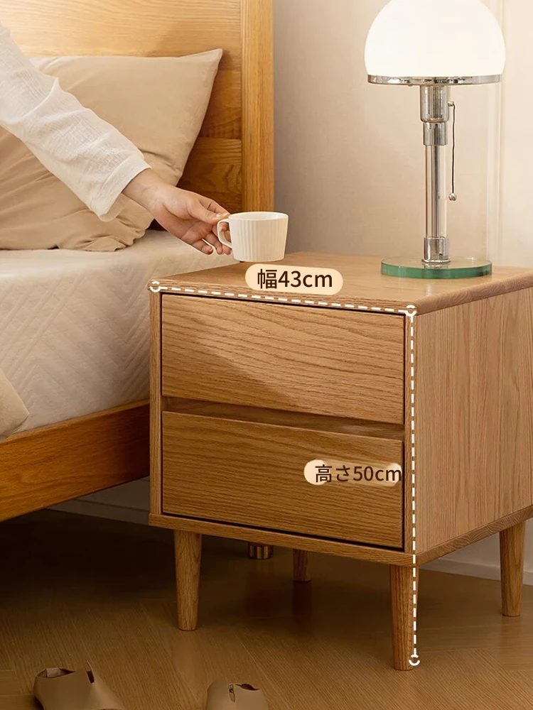 北欧モダンスタイルのシンプル全木製ナイトテーブル|おしゃれで機能的な収納兼用ドロワー付き|オーク材のベッドサイドキャビネットで、洗練された寝室空間を演出!
