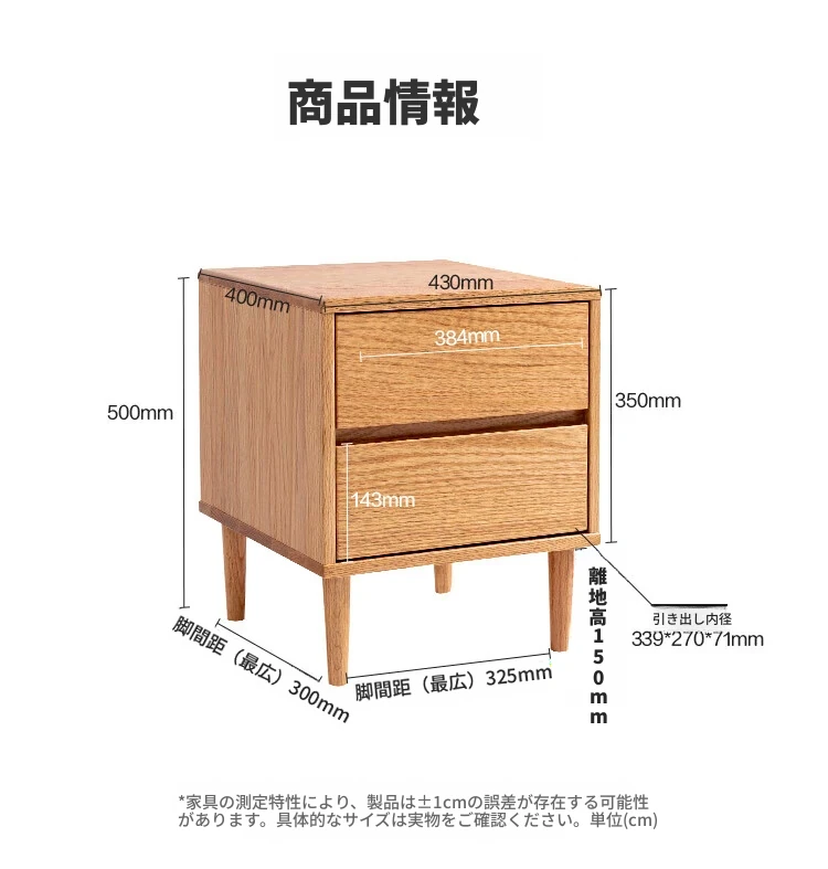 原木色のダブル引き出しのナイトテーブル 430*400*500mm 【在庫あり 送料無料】