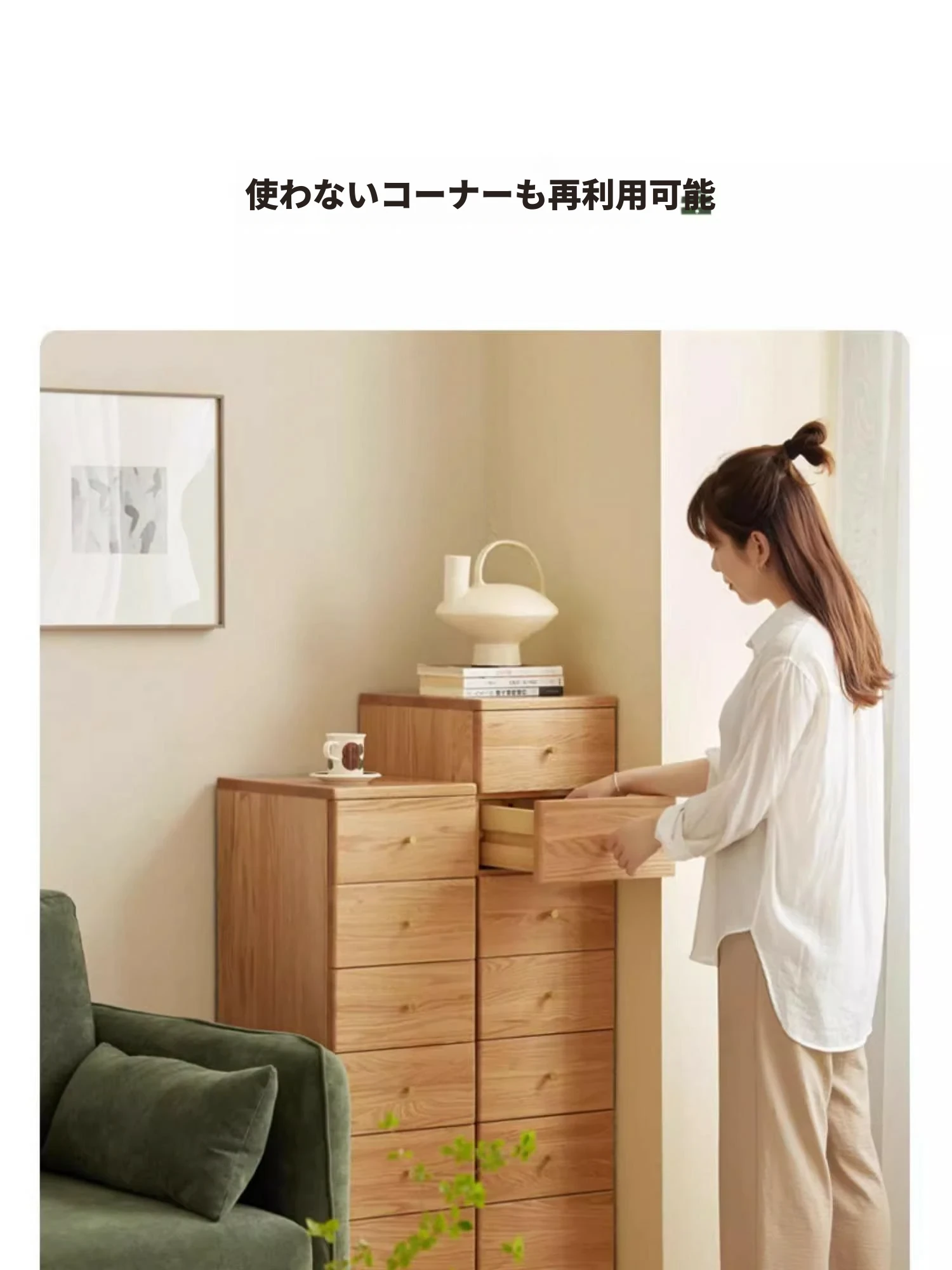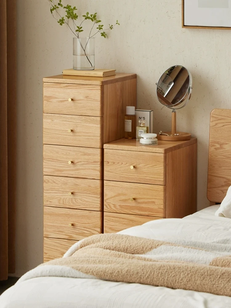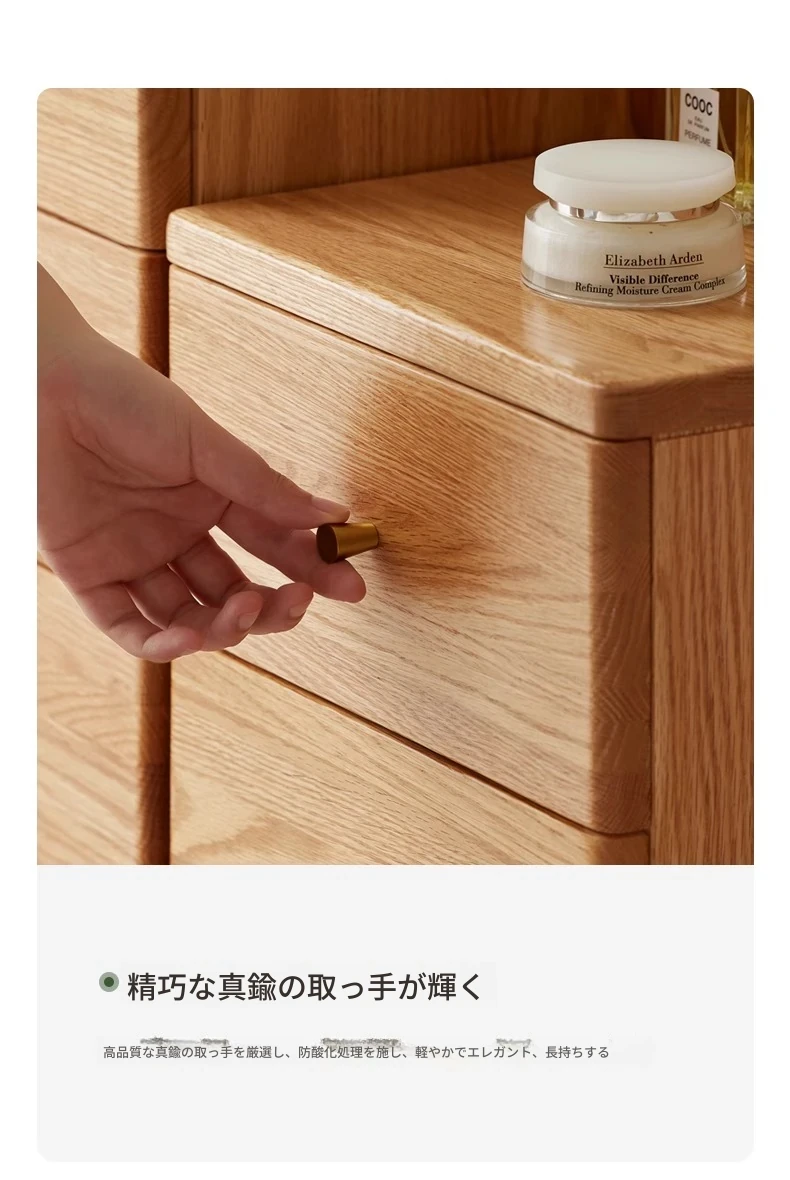 原始の要素が詰まった無垢オーク材のチェスト - 北欧デザイン、シンプルでモダンなスタイルの収納キャビネット。寝室の壁際にぴったりの、美しい収納空間を実現します。