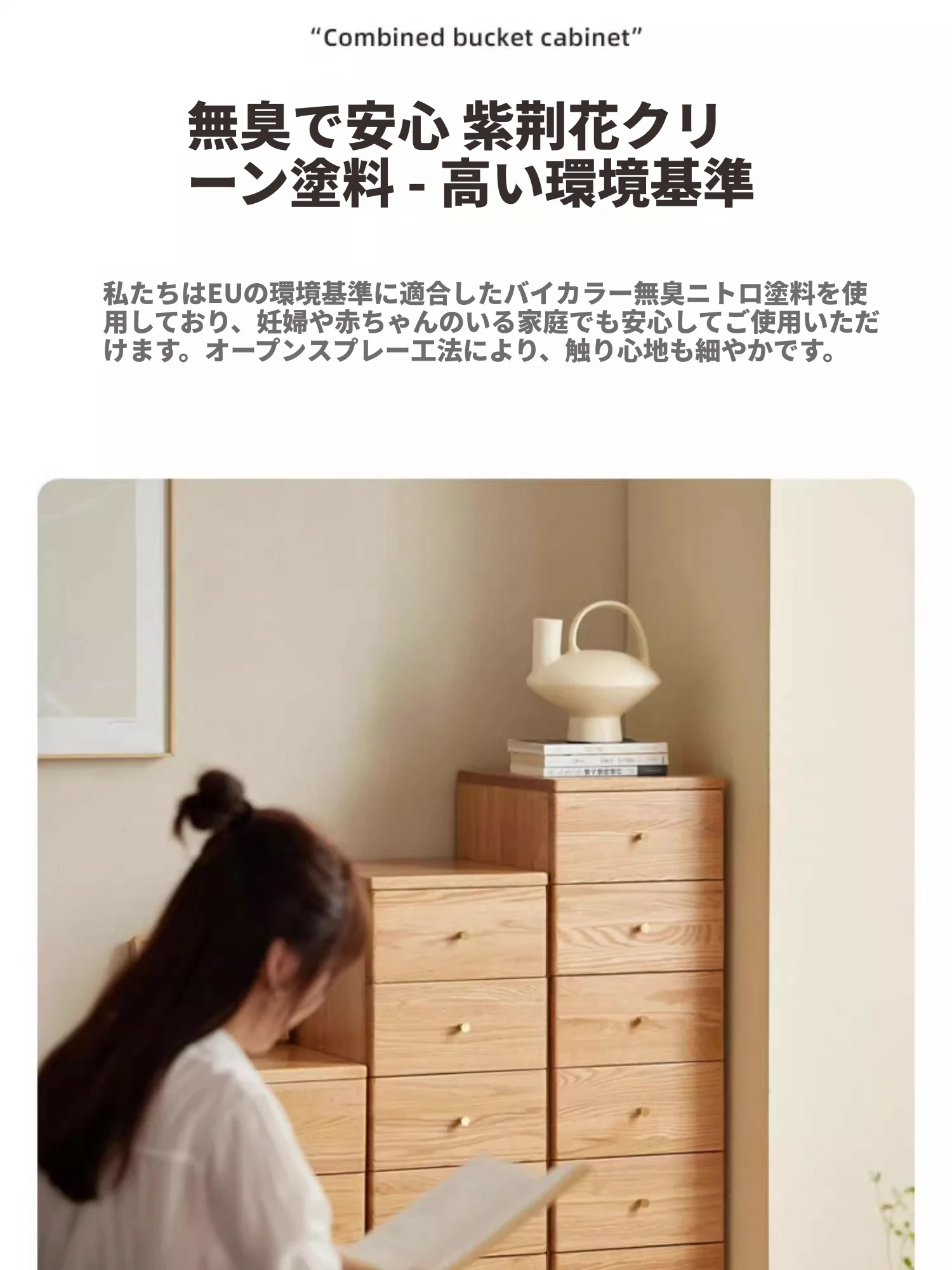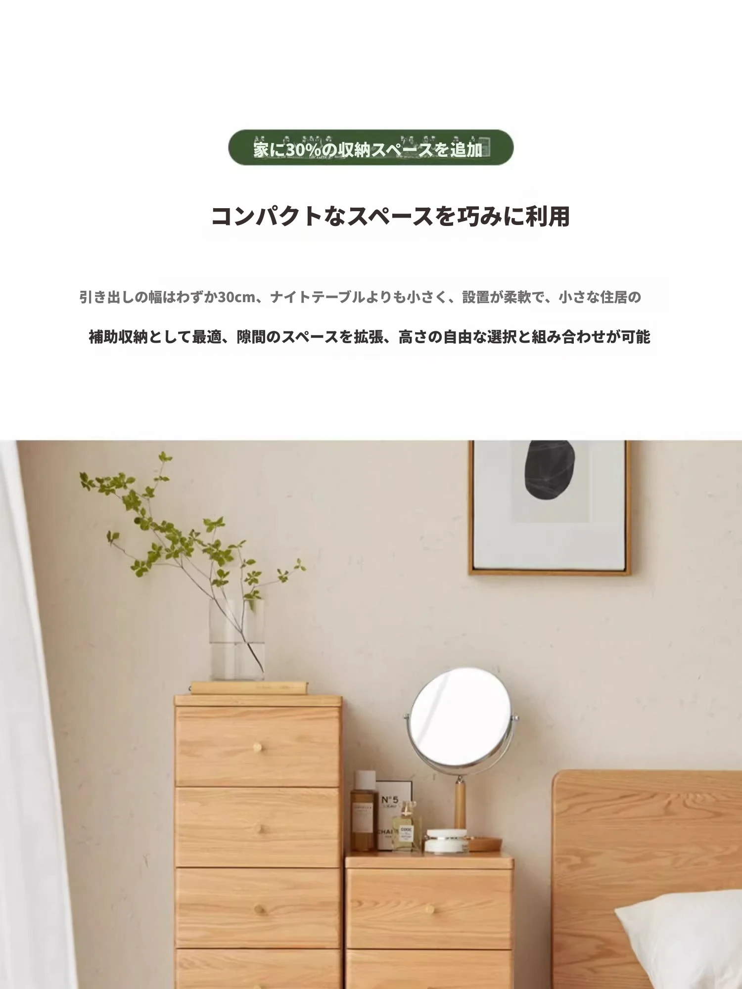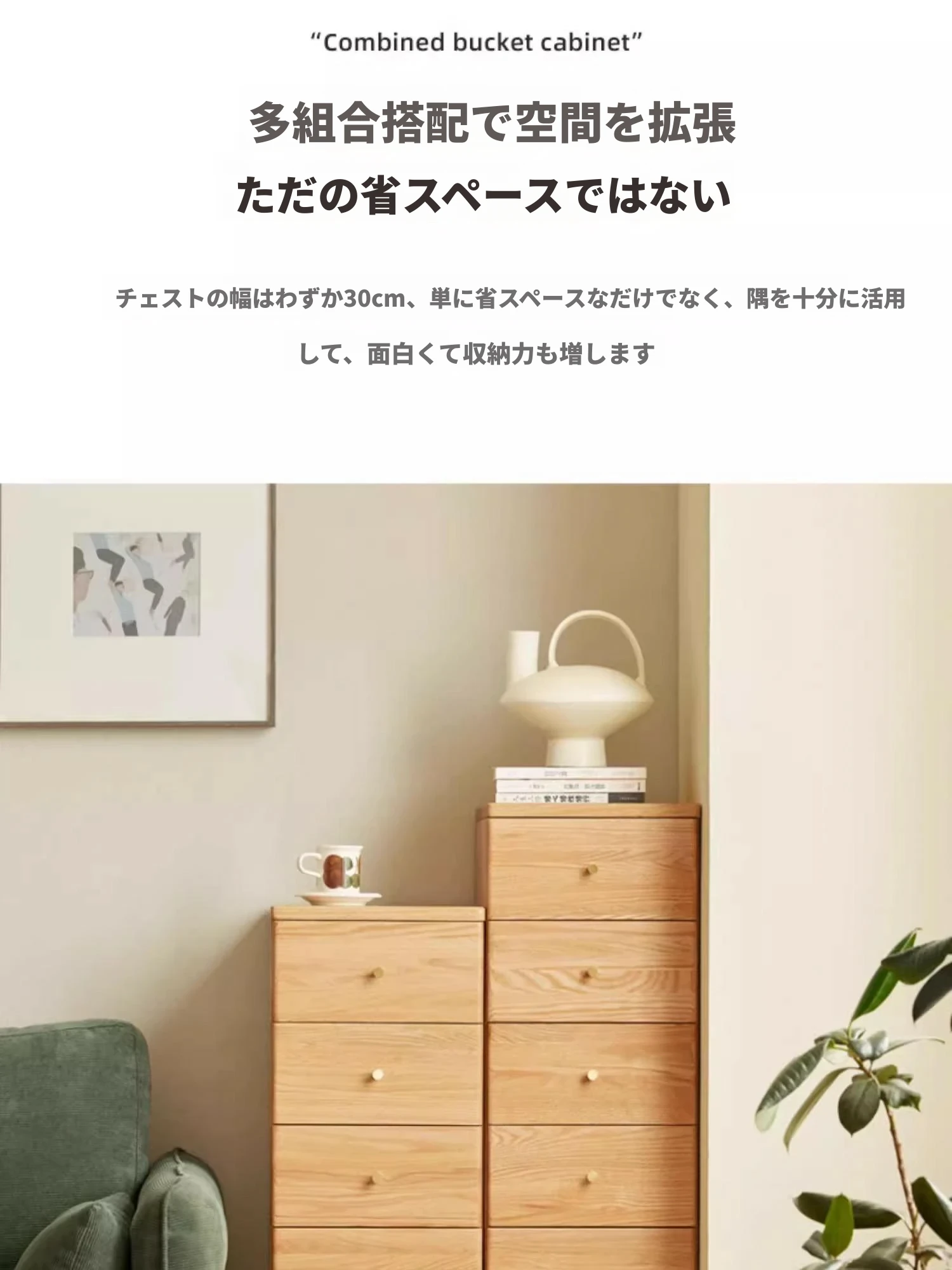 原木色-高さ0.75メートルの4段チェスト(300*380*750mm)