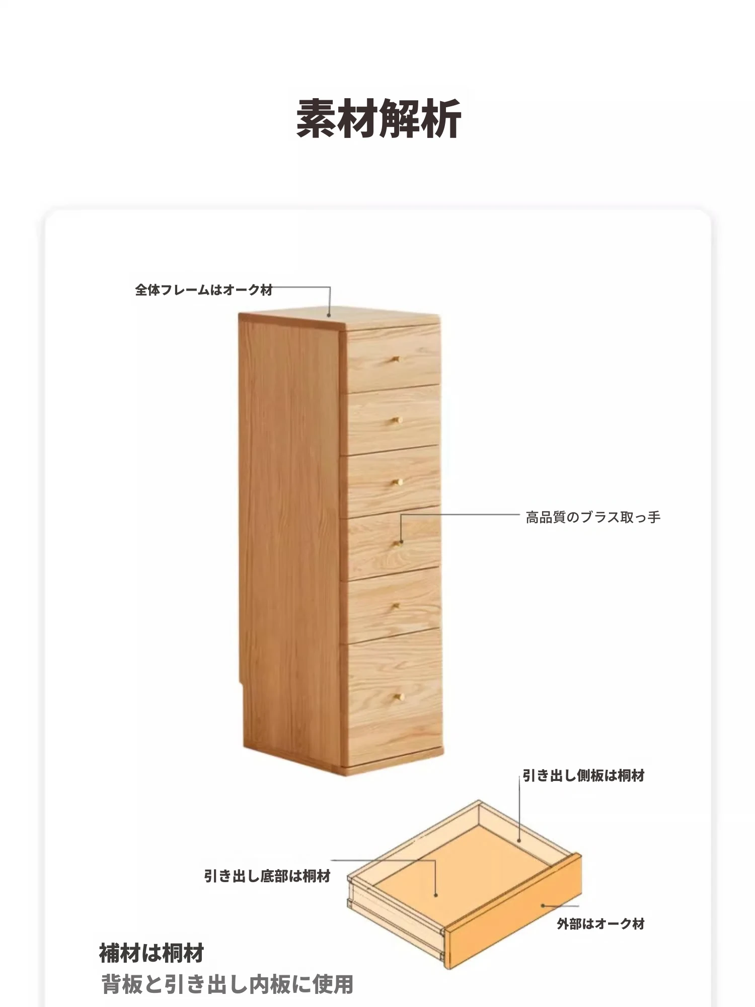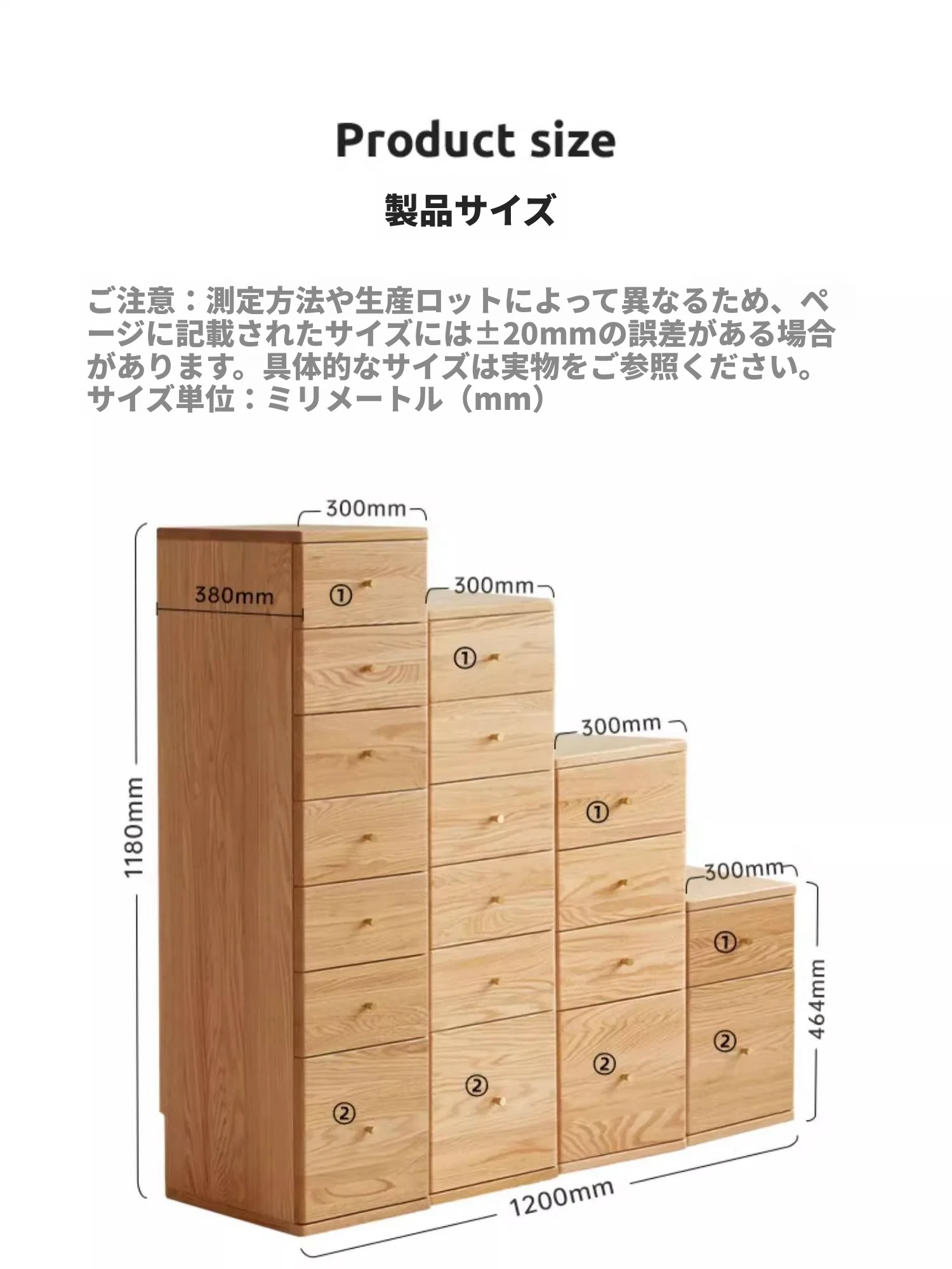 原木色-高さ1.1メートルの7段チェスト(300*380*1180mm)