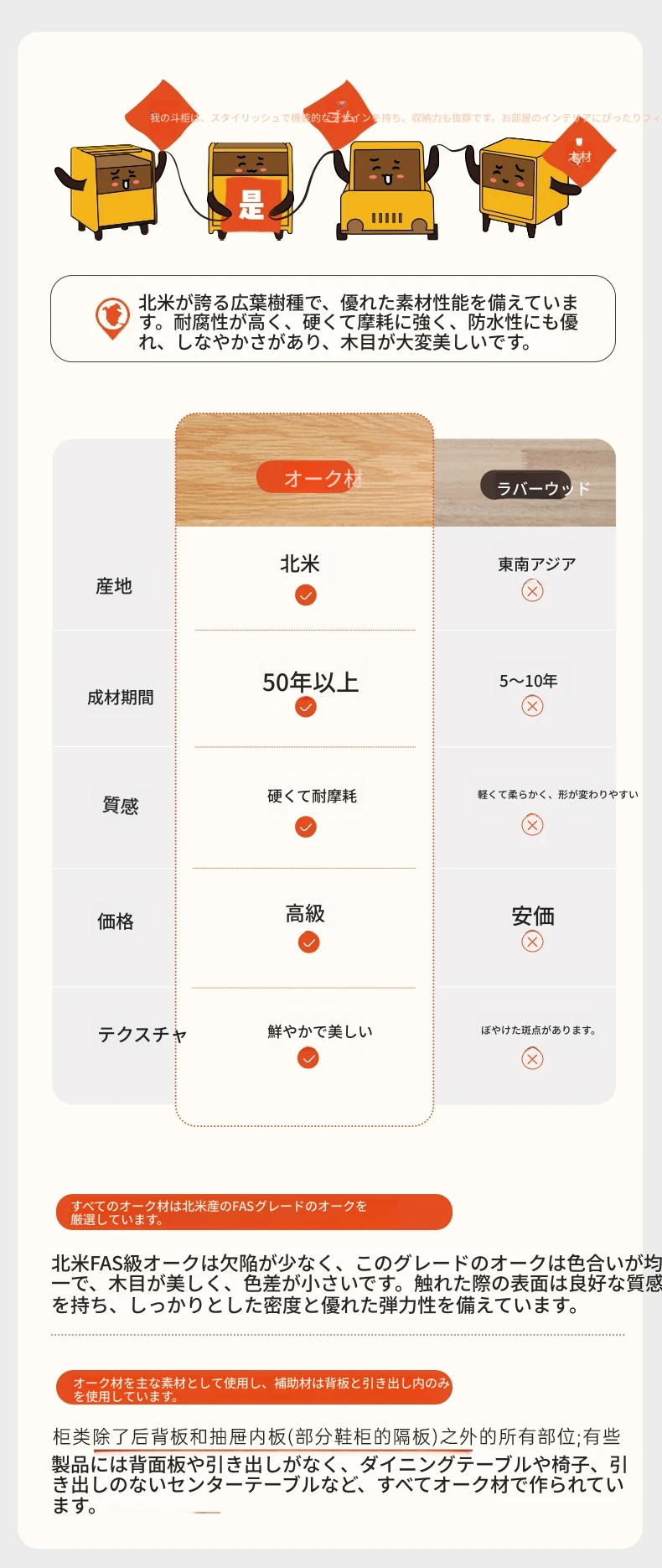 原木色-高さ0.46メートルの2段チェスト(300*380*464mm)
