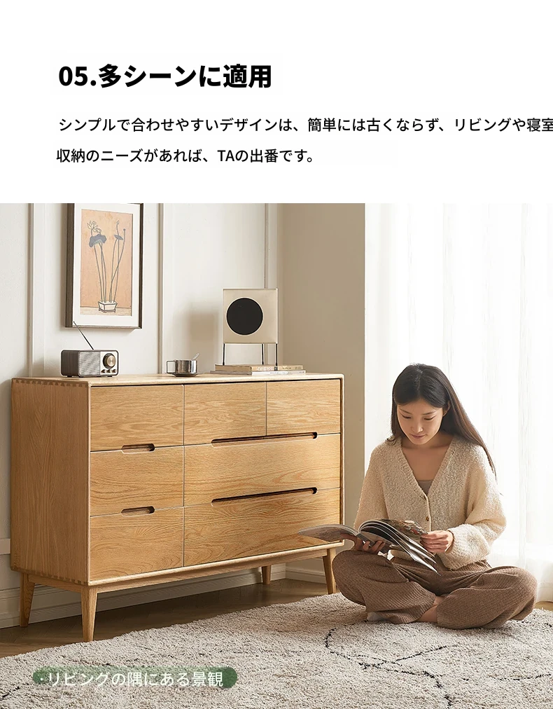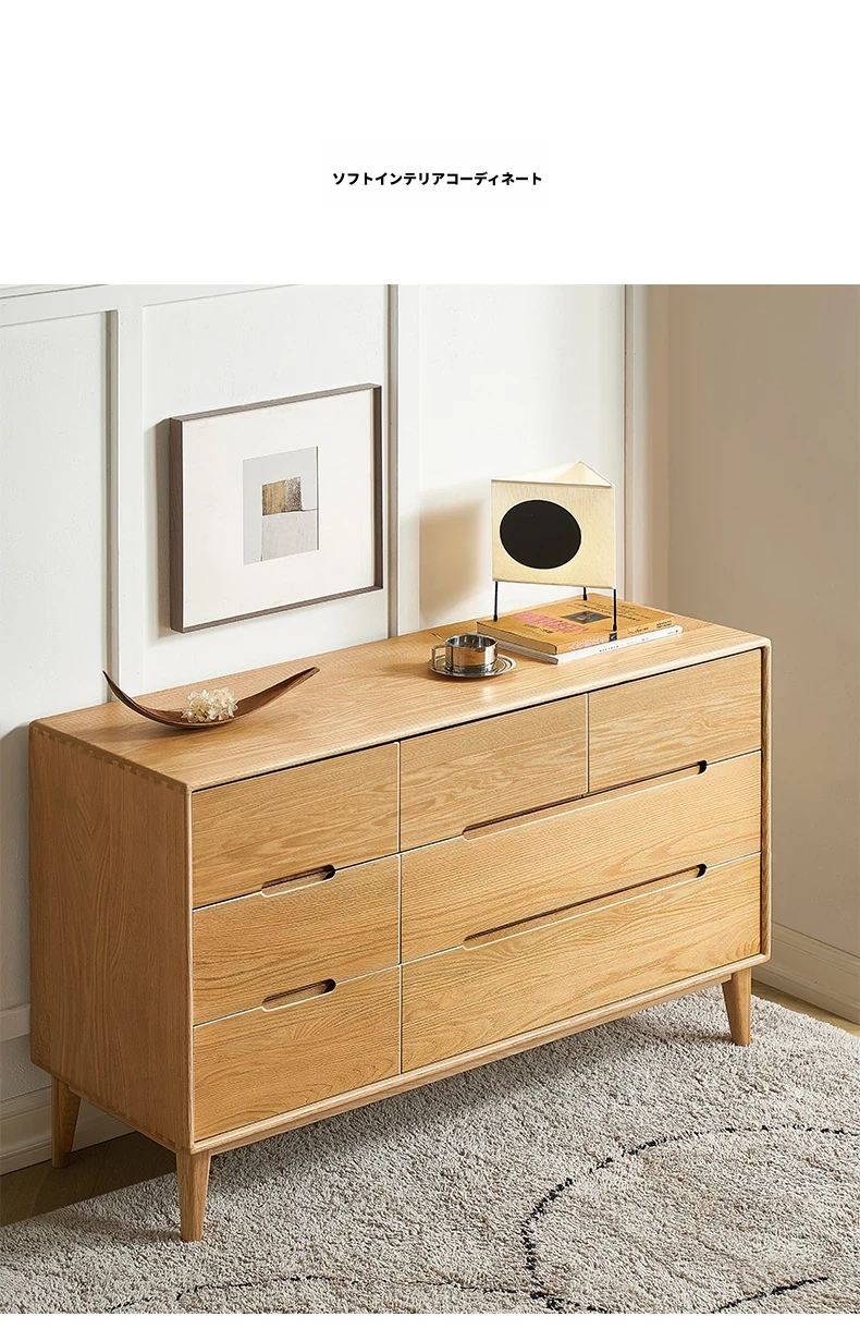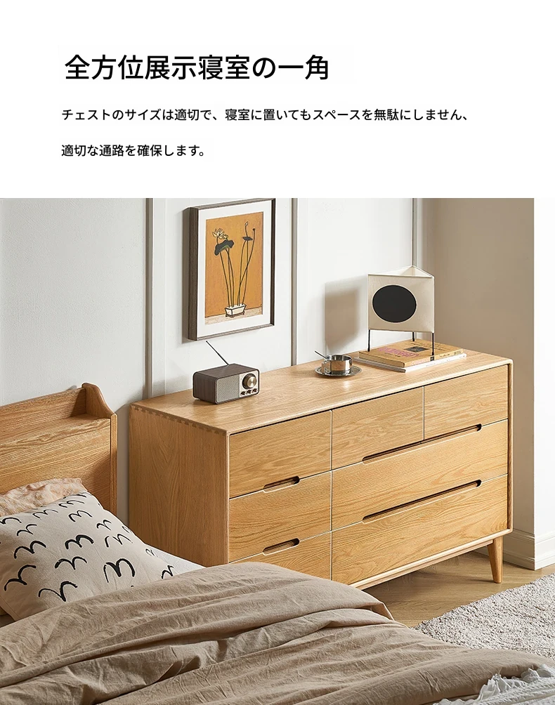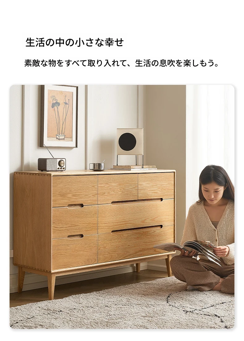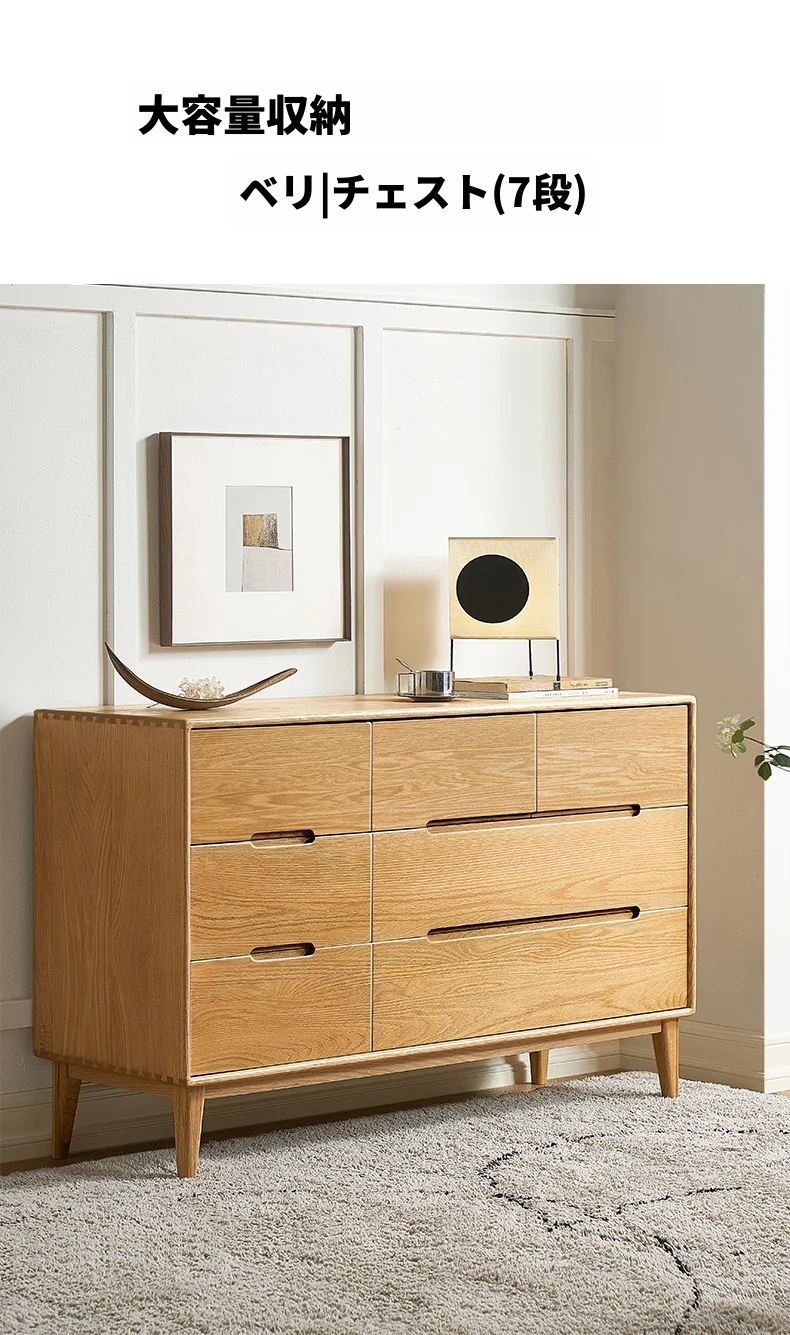 原木の美しさを引き立てる北欧スタイルの7段チェスト - 小スペースにぴったり、高級オーク材使用の9段収納 - おしゃれな5段タンスで快適な寝室を実現!