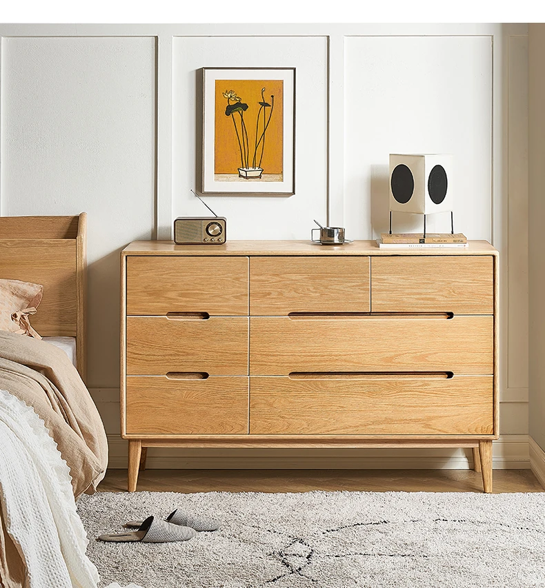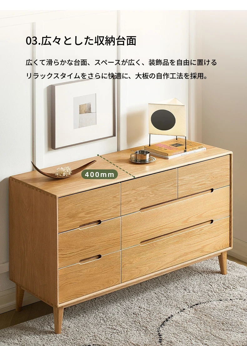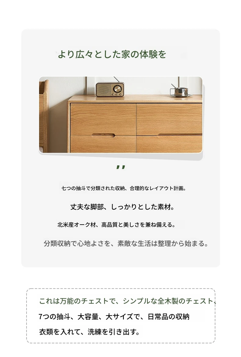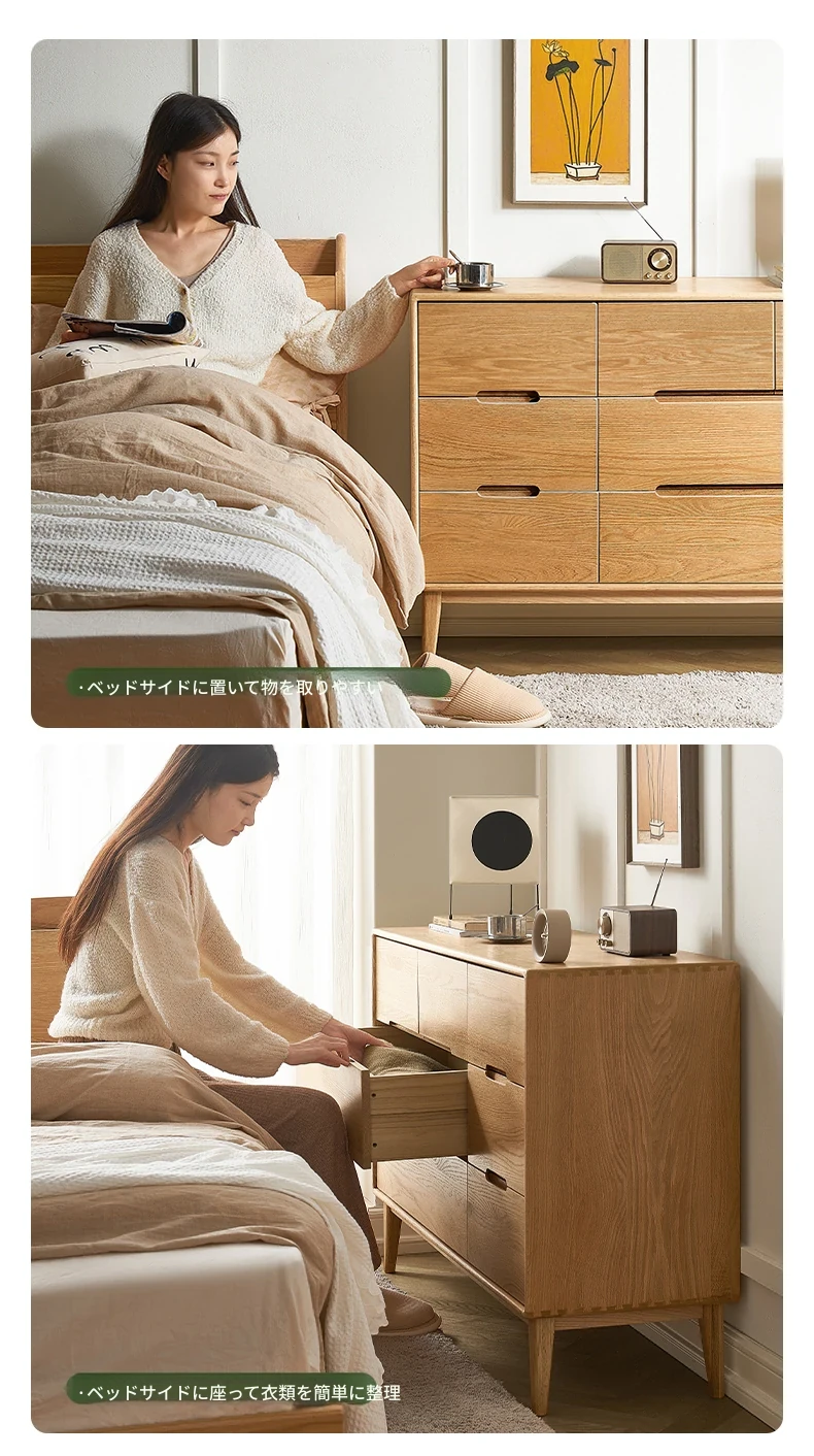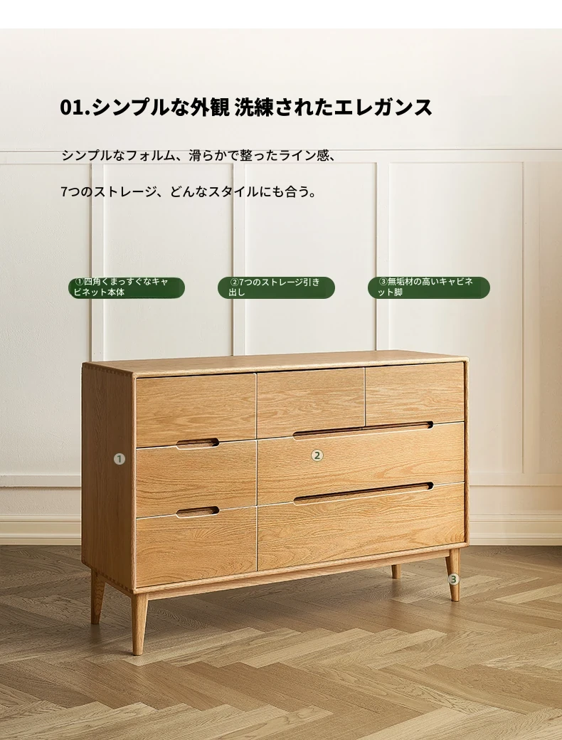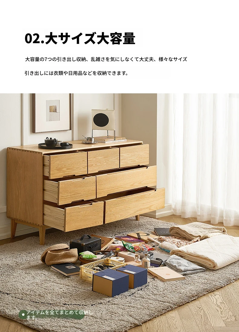 原木の美しさを引き立てる北欧スタイルの7段チェスト - 小スペースにぴったり、高級オーク材使用の9段収納 - おしゃれな5段タンスで快適な寝室を実現!
