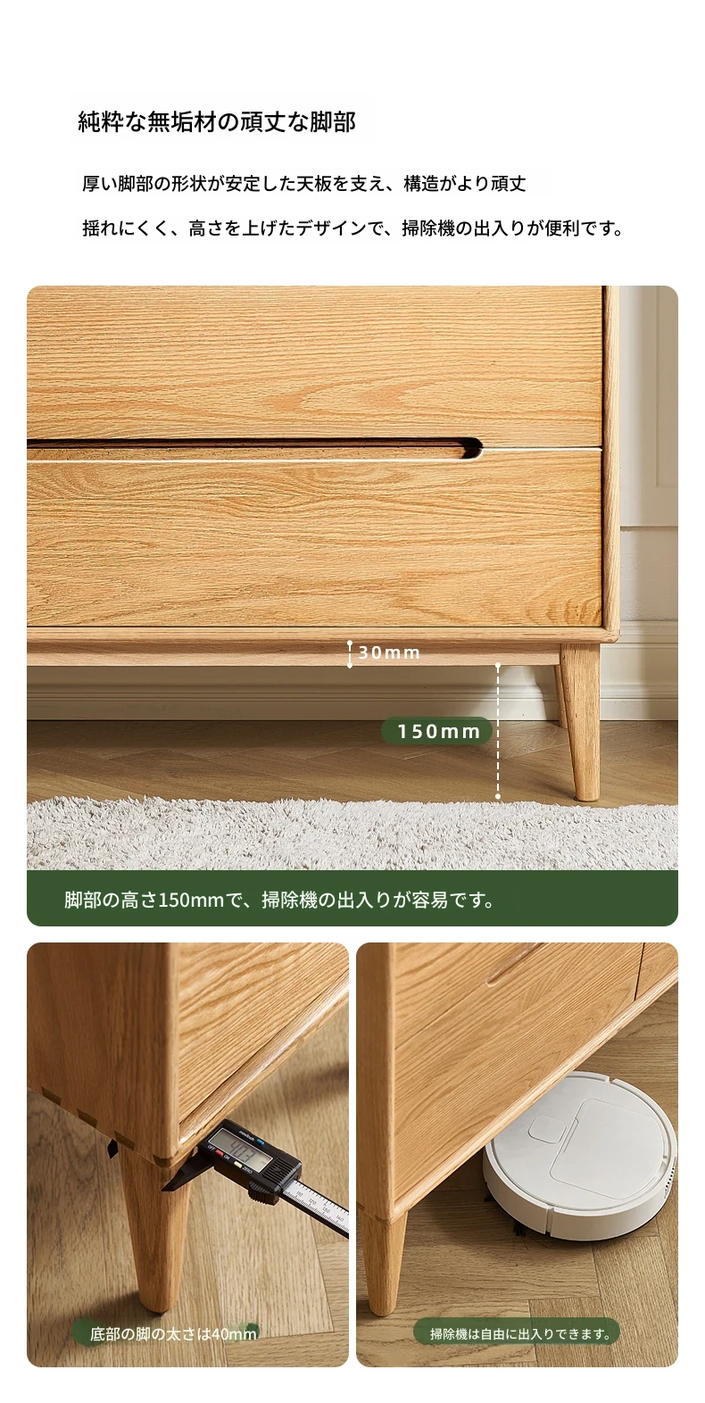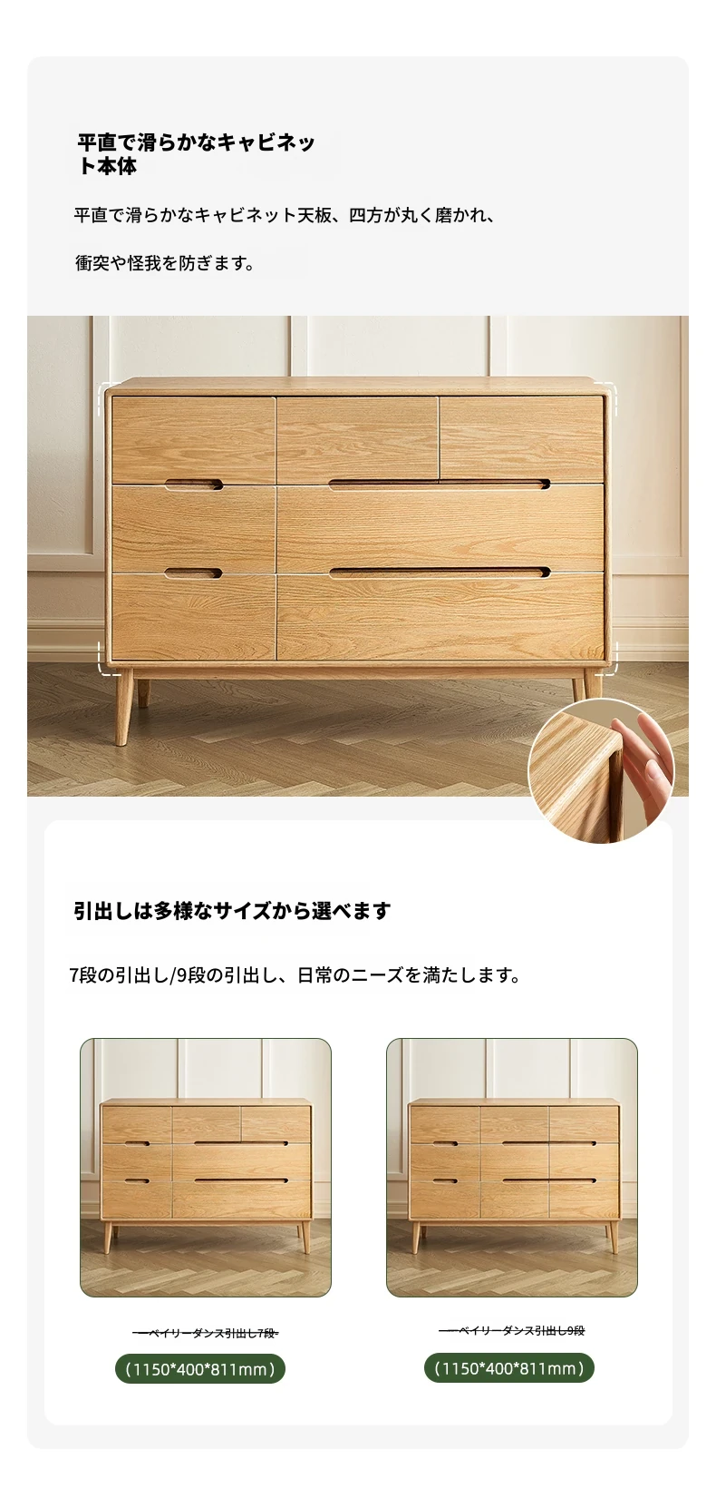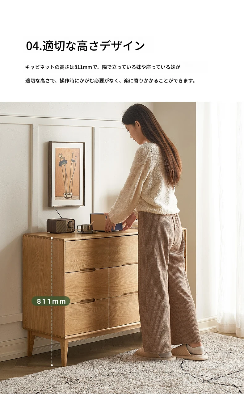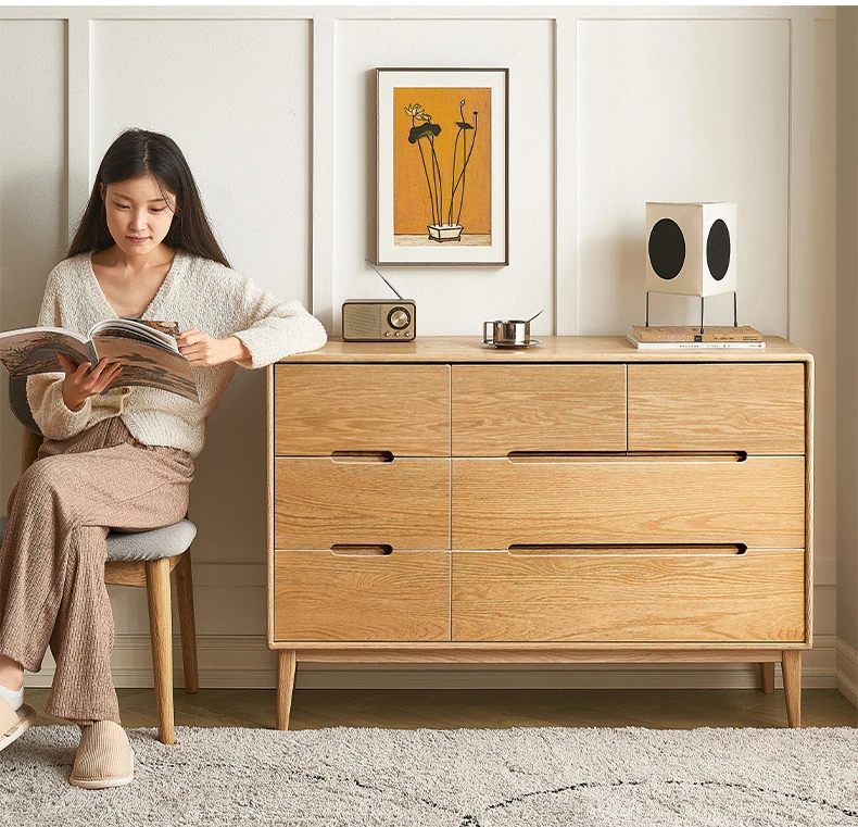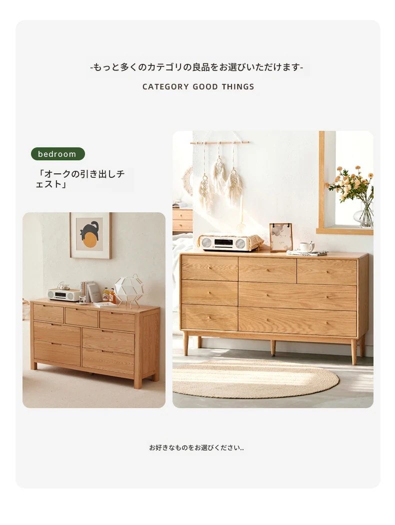 原木の美しさを引き立てる北欧スタイルの7段チェスト - 小スペースにぴったり、高級オーク材使用の9段収納 - おしゃれな5段タンスで快適な寝室を実現!