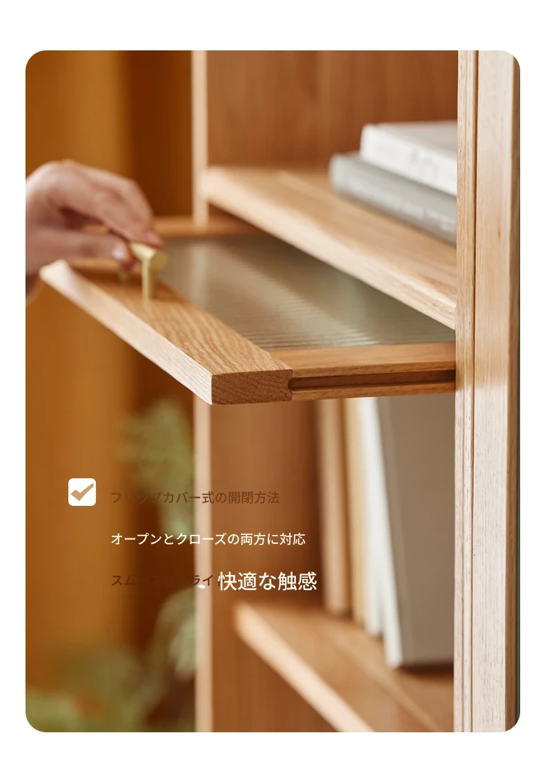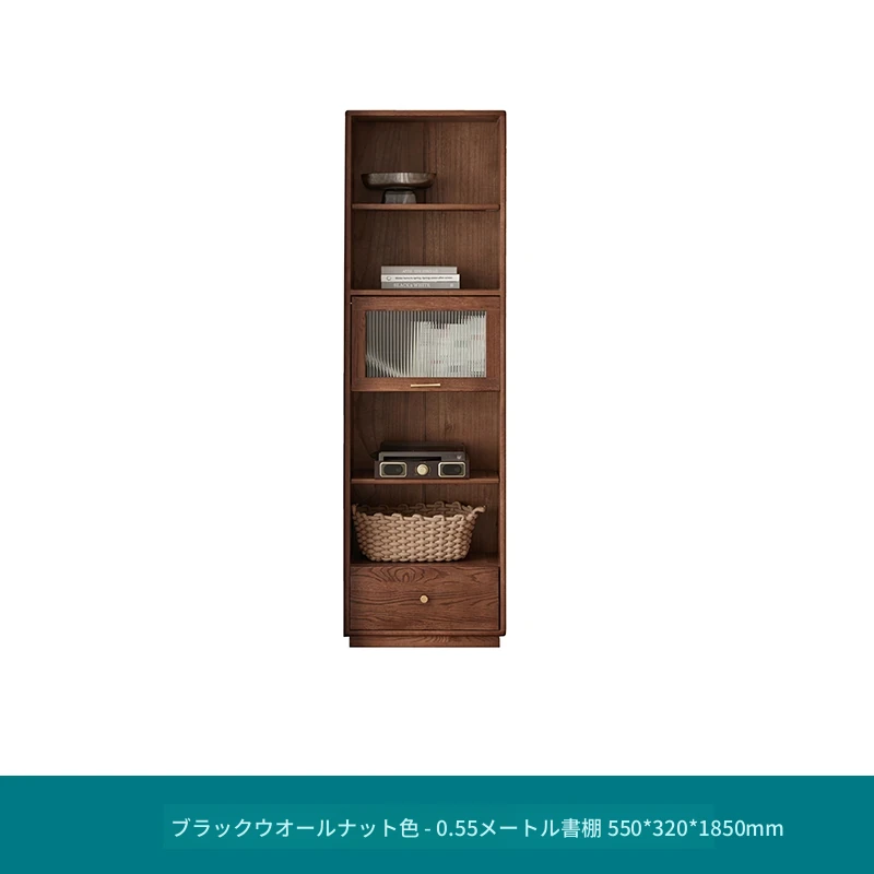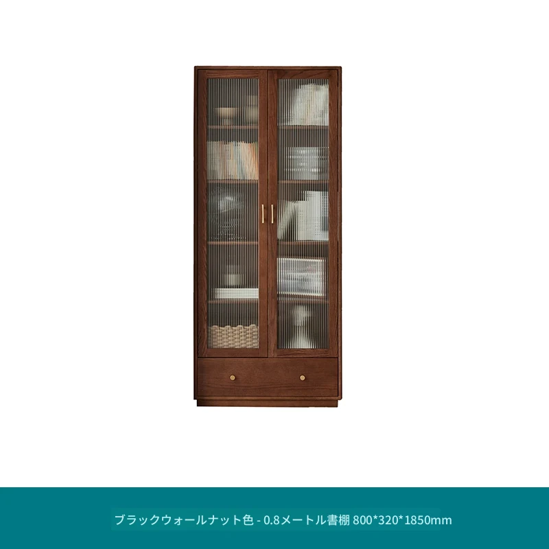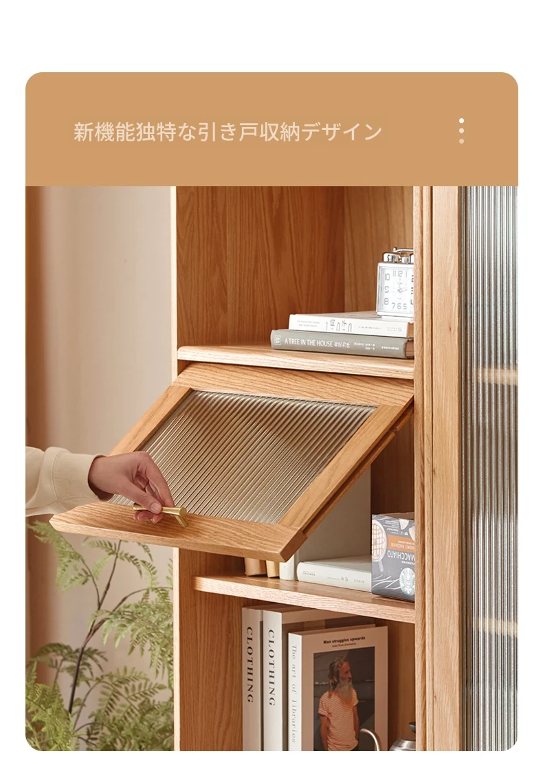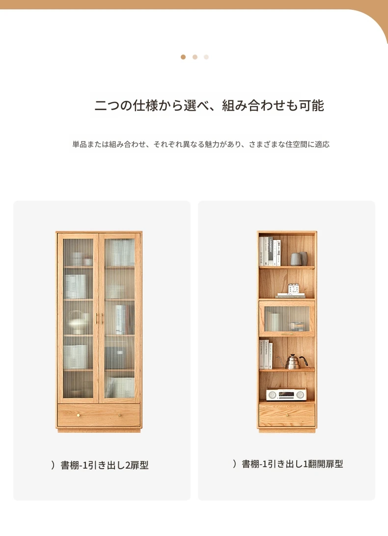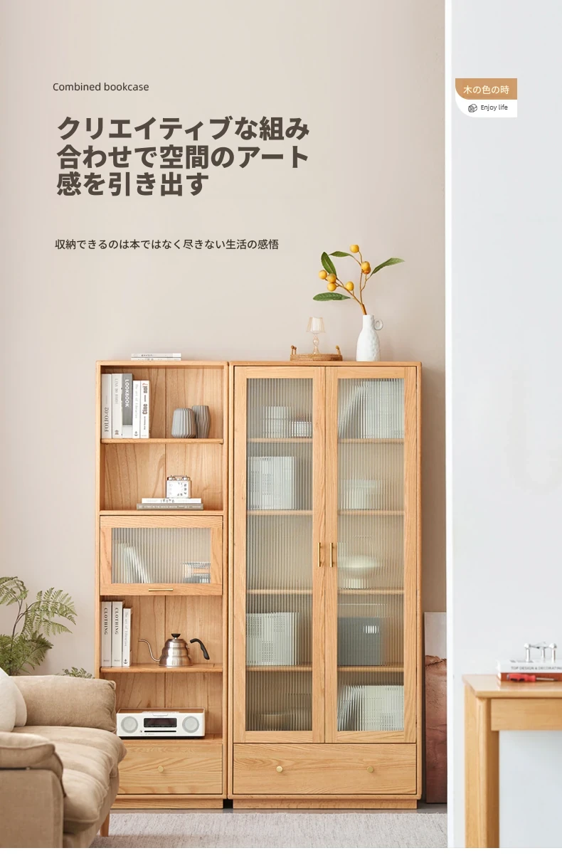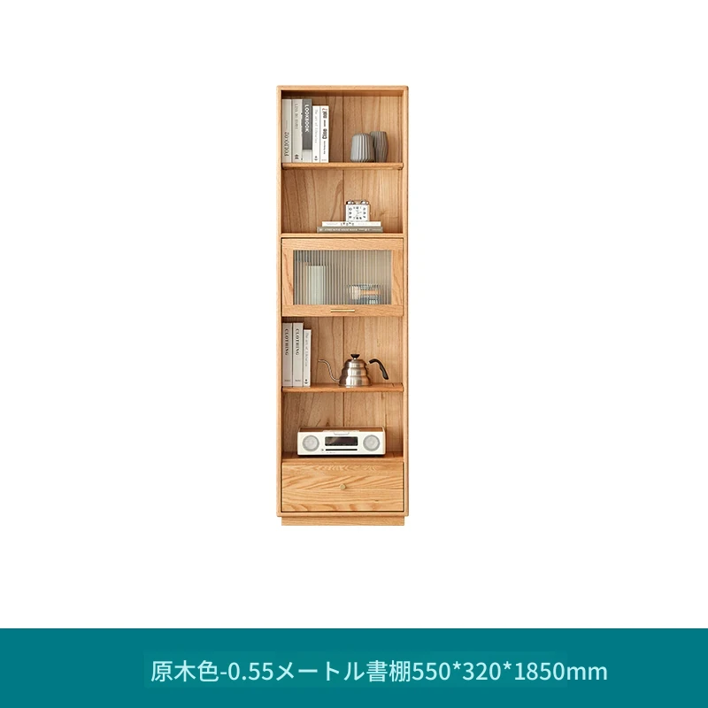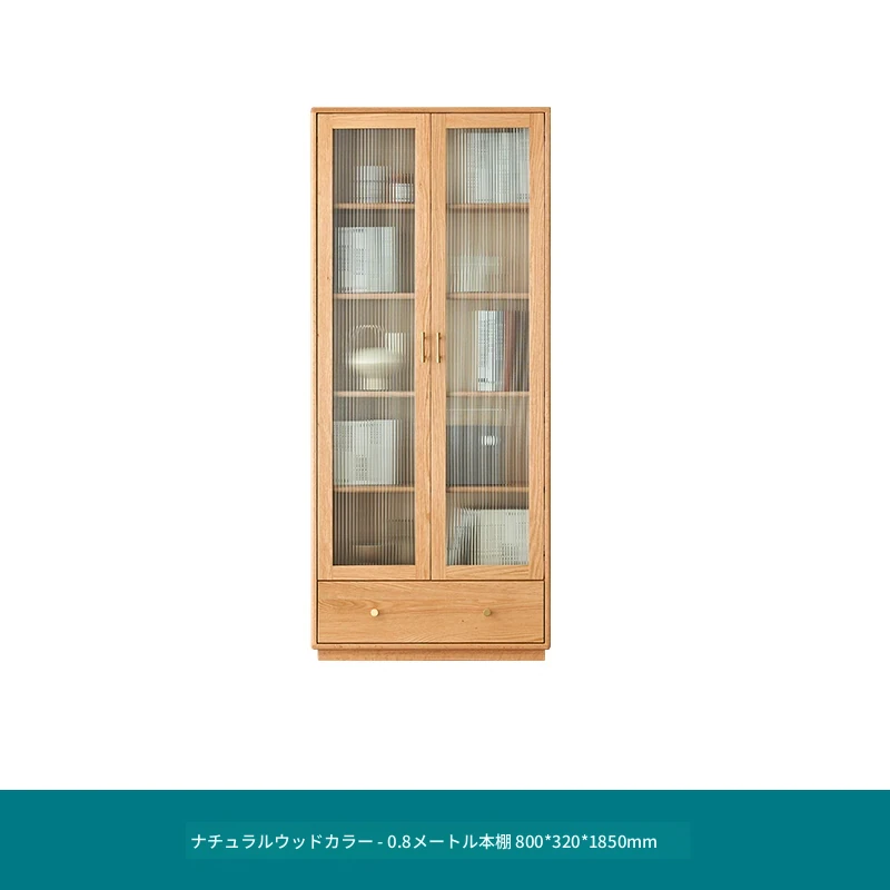 北欧スタイルの無垢材書棚|モダンシンプルなオーク製ストレージ|天然木製のスタンド式ブックシェルフ|ガラス扉のディスプレイキャビネットでおしゃれに収納!