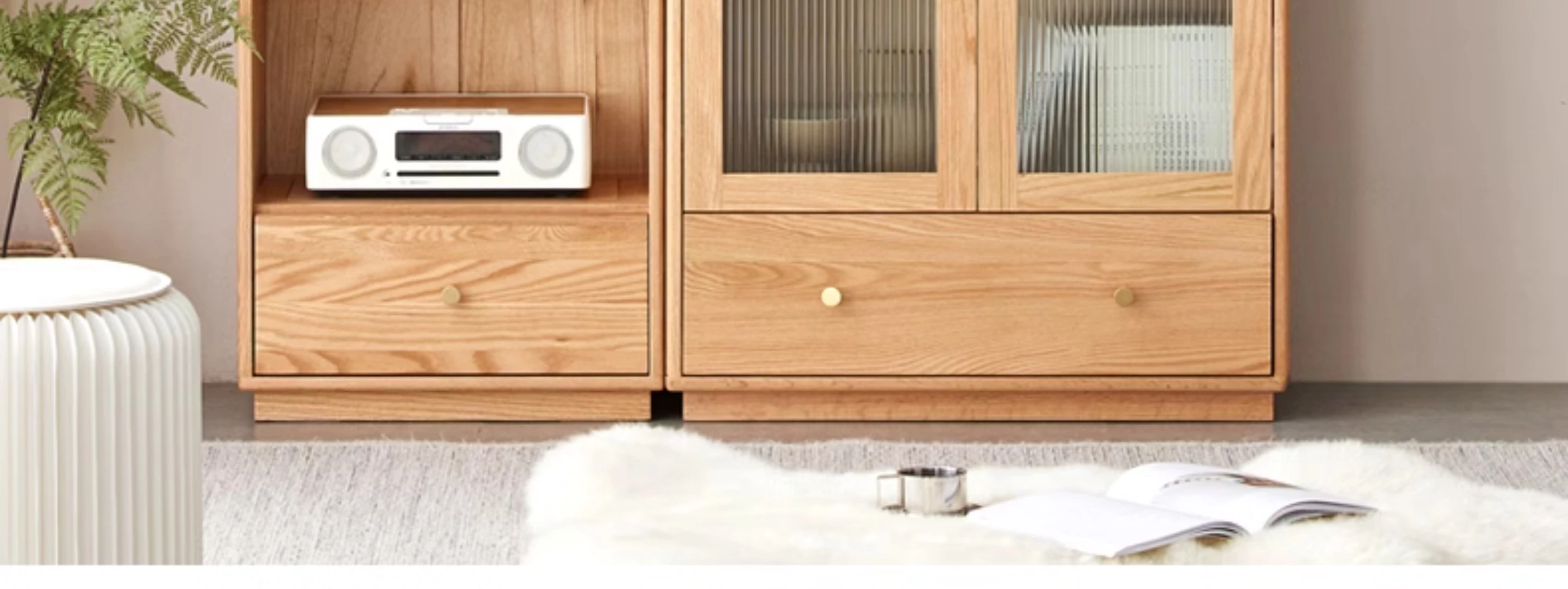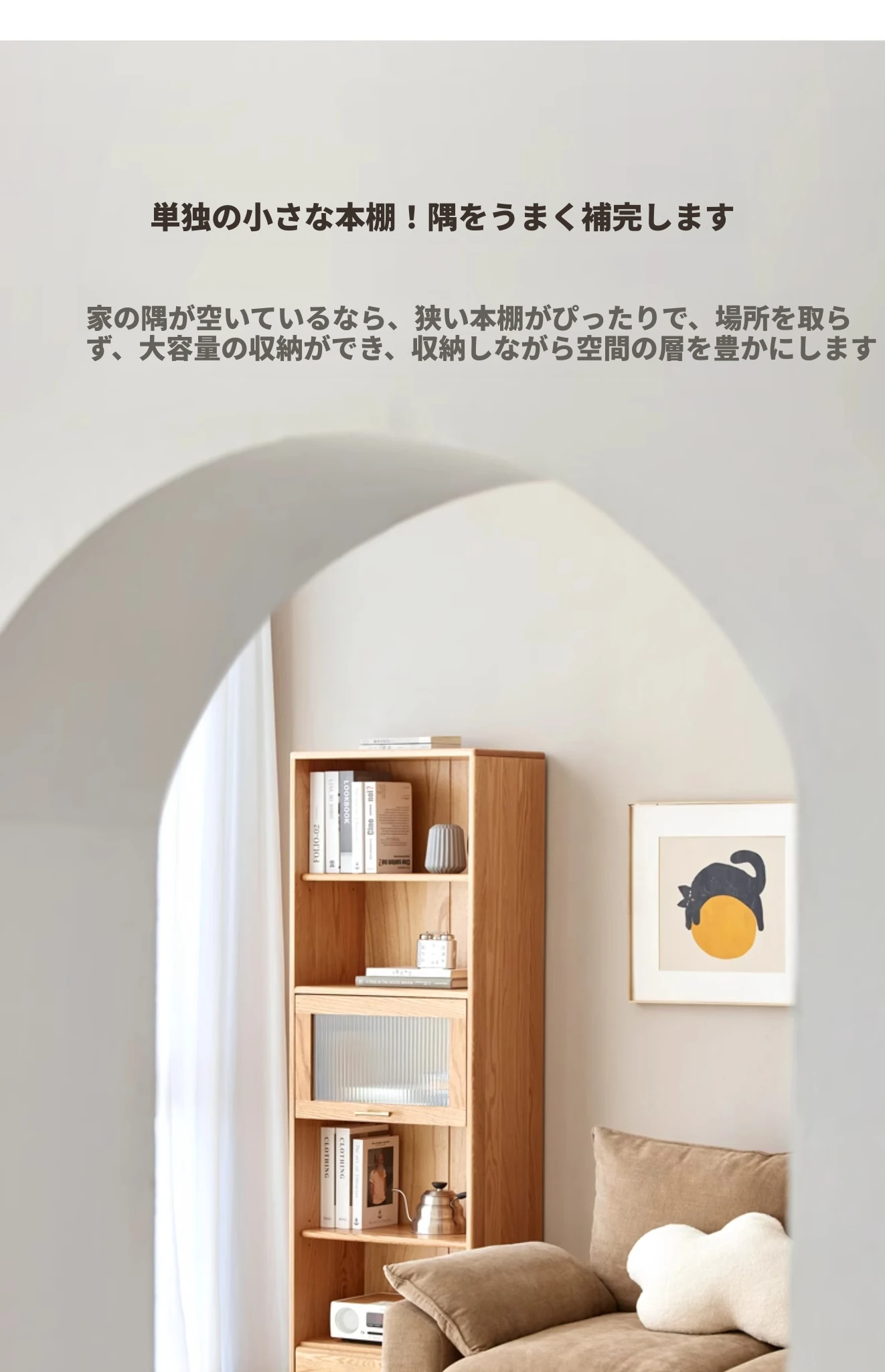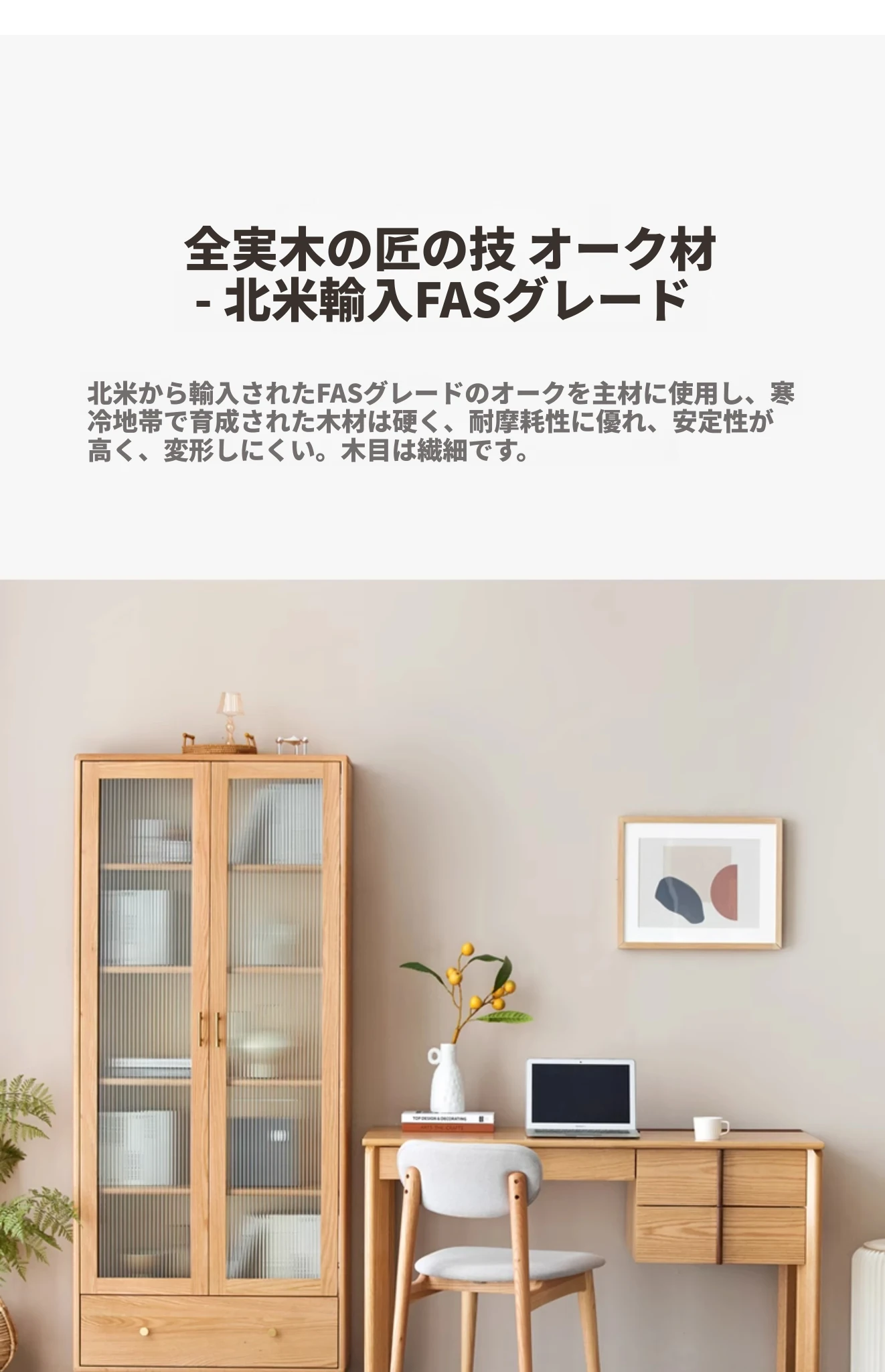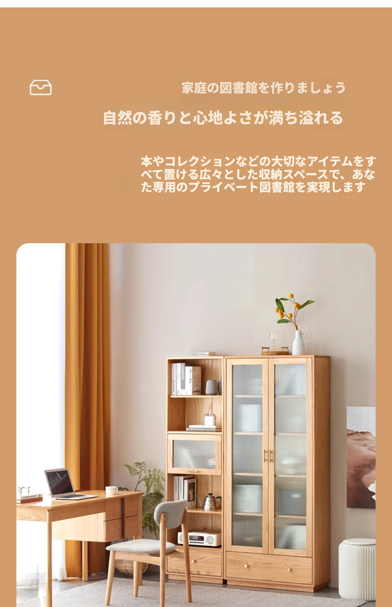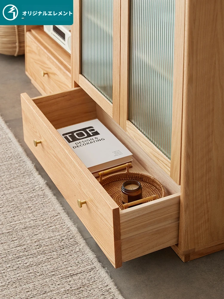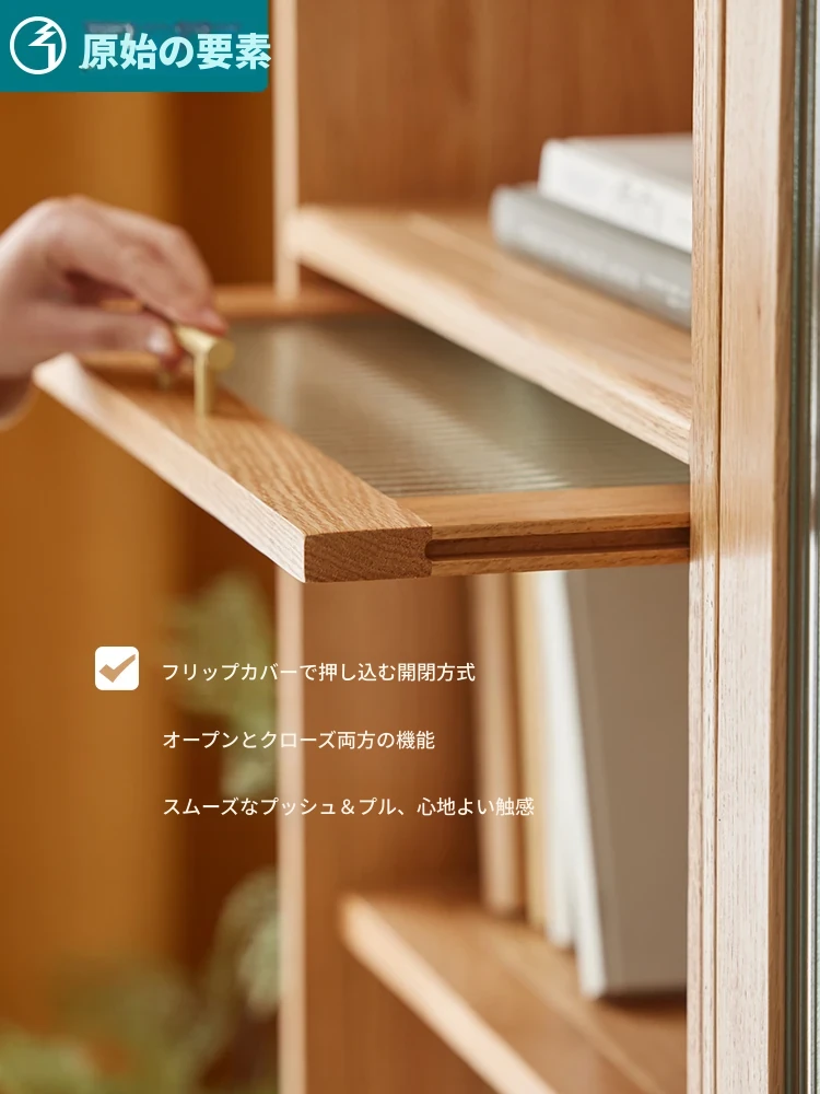 北欧スタイルの無垢材書棚|モダンシンプルなオーク製ストレージ|天然木製のスタンド式ブックシェルフ|ガラス扉のディスプレイキャビネットでおしゃれに収納!