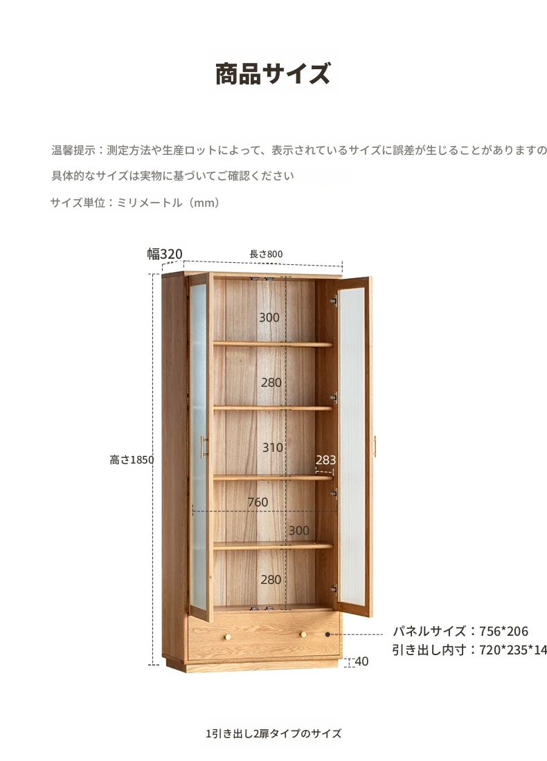 ナチュラルウッドカラー - 書棚(1引き出し2扉)【800*320*1850mm】