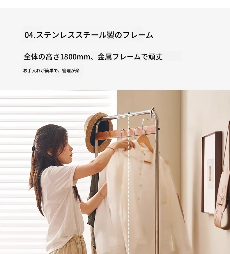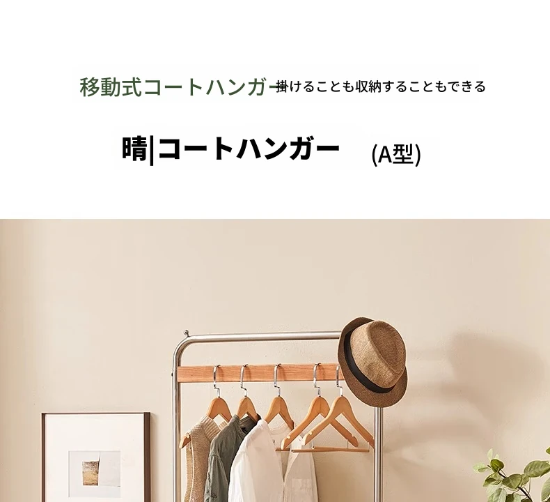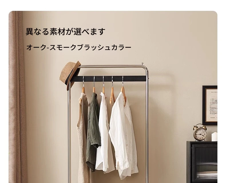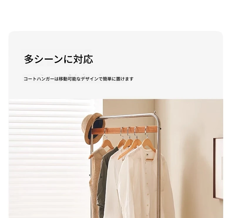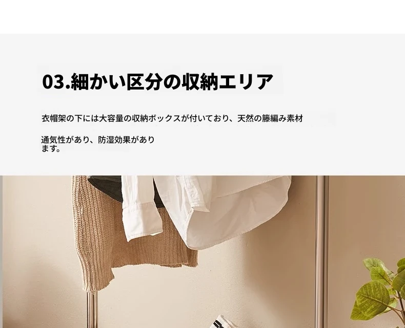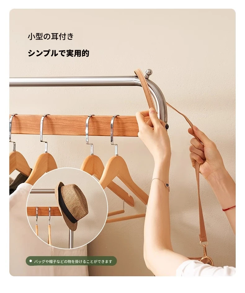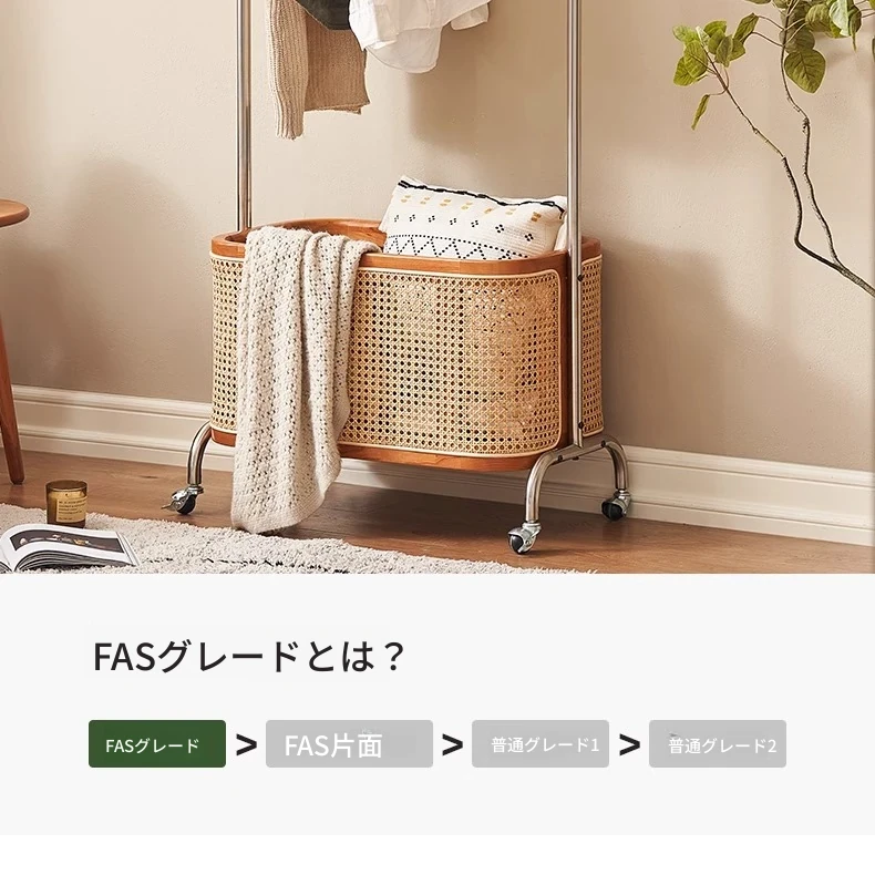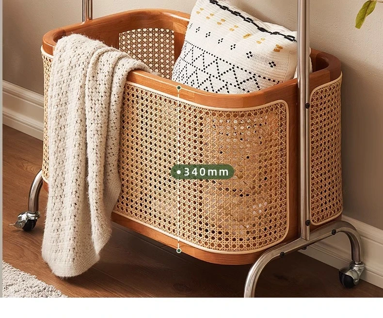 北欧デザインの天然木製コートハンガー - チェリーウッドとバスケット編みのスタイリッシュな収納ラック。おしゃれで便利な移動式ハンガー、寝室やリビングにぴったり!衣類を美しくディスプレイし、スッキリと整理整頓。