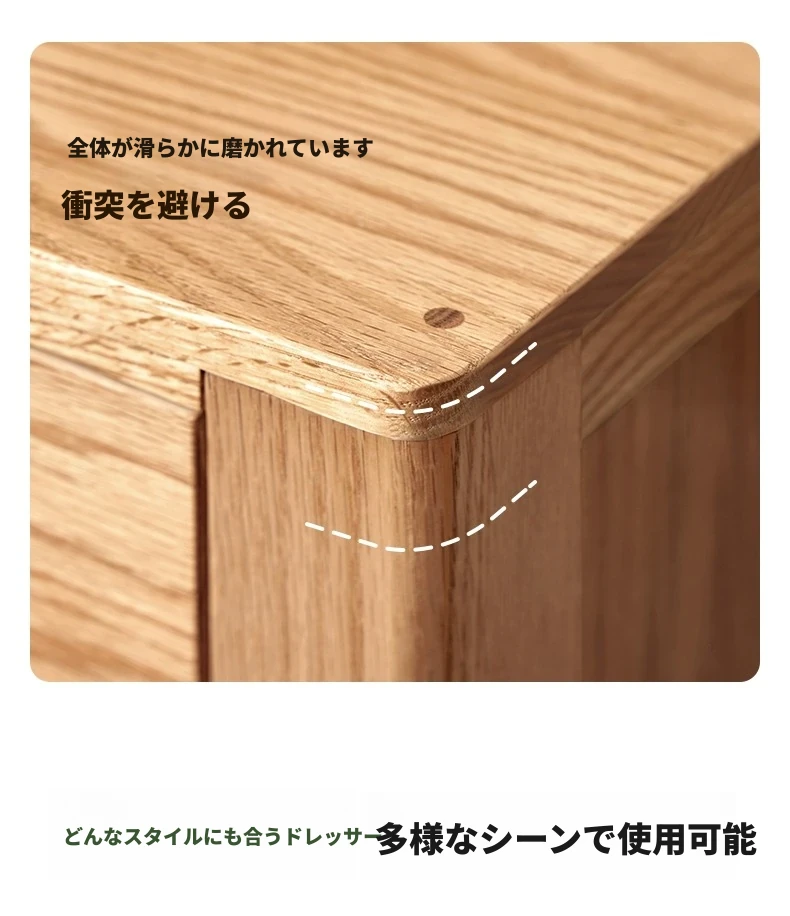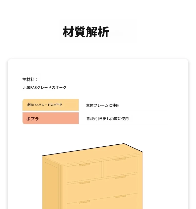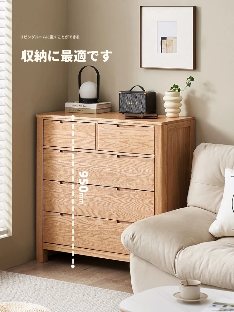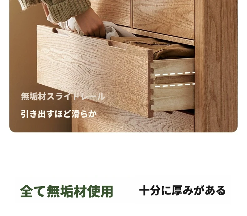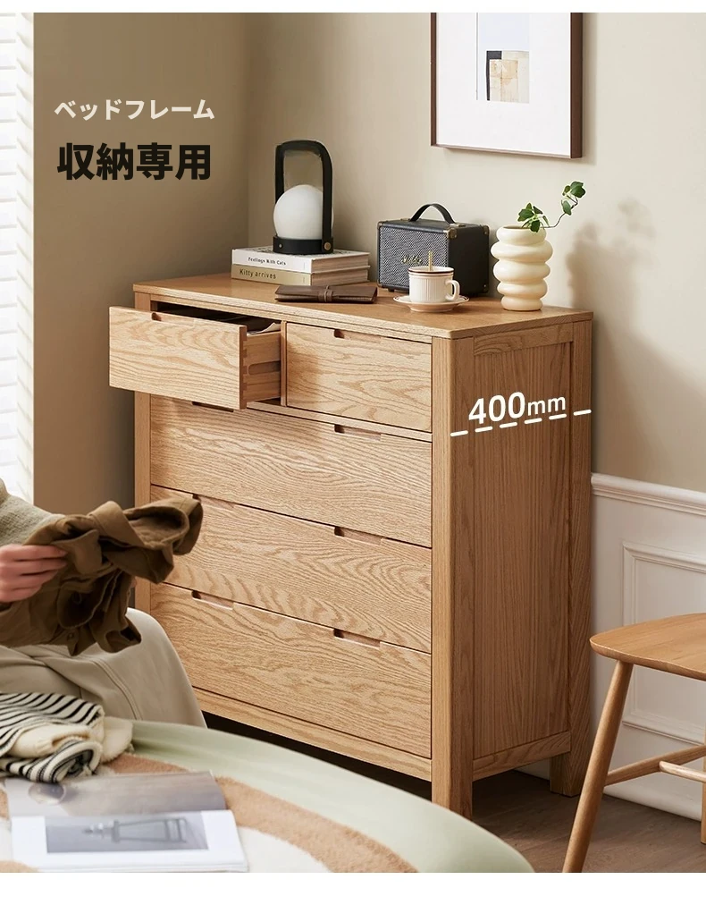 北欧スタイルの無垢材チェスト - 小型居住空間に最適なオーク製収納キャビネット。整理整頓が容易で、美しいデザインがインテリアを引き立てる!おしゃれな6段タンスでお部屋をすっきり。