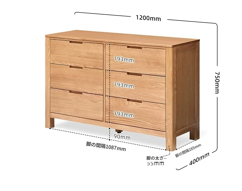 原木色--幅広六斗柜3+3 1200*400*750mm
