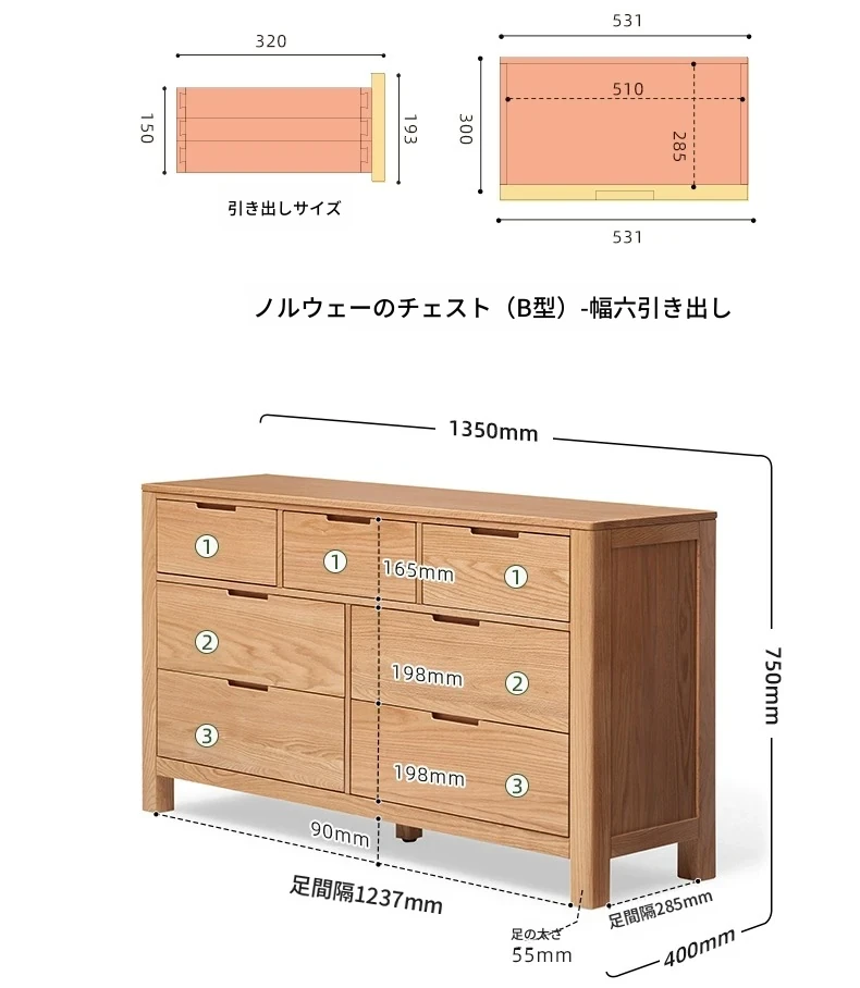 原木色--幅広七斗柜3+4 1350*400*750mm