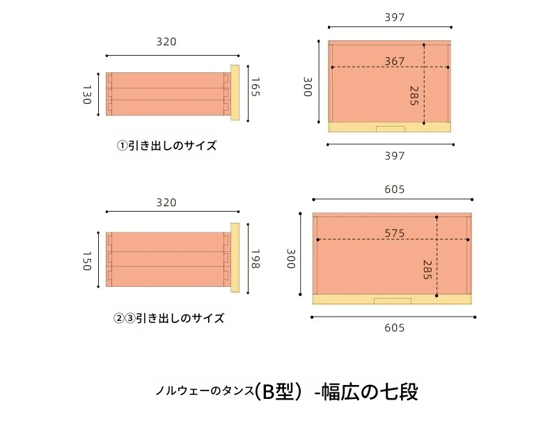 黒胡桃色--幅広七斗柜3+4 1350*400*750mm