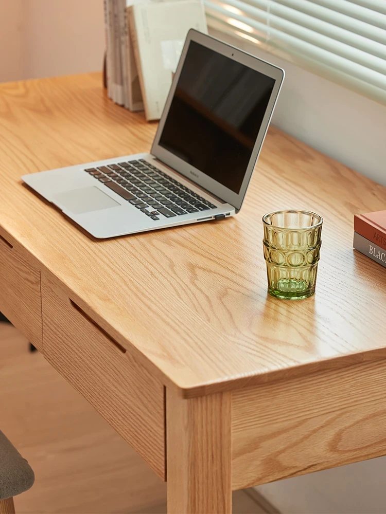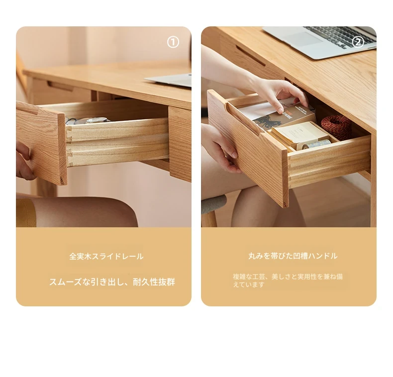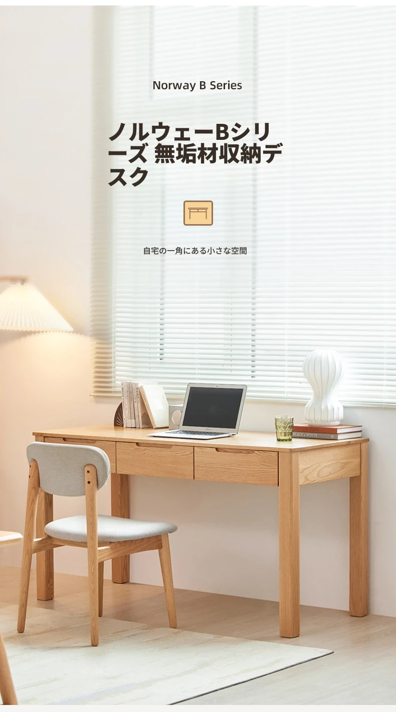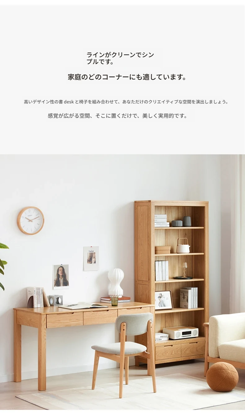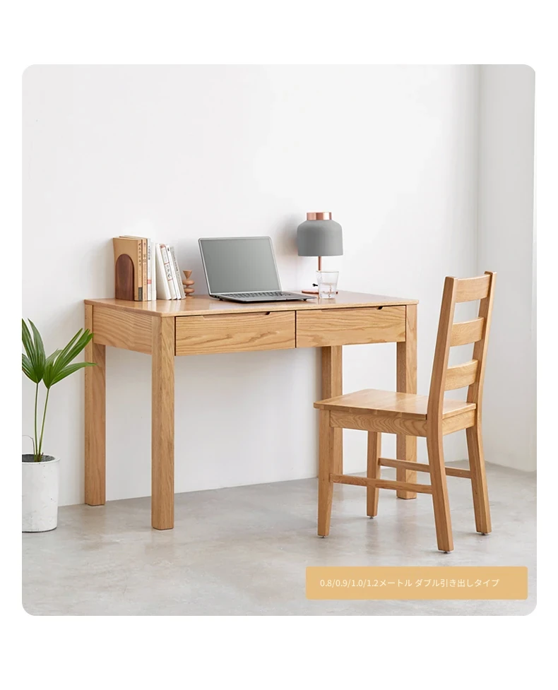 オリジナル無垢材使用!モダンシンプルな北欧スタイルのパソコンデスク。学習やオフィスに最適なオーク材の書き物卓。洗練されたデザインで、快適な作業スペースを提供します。