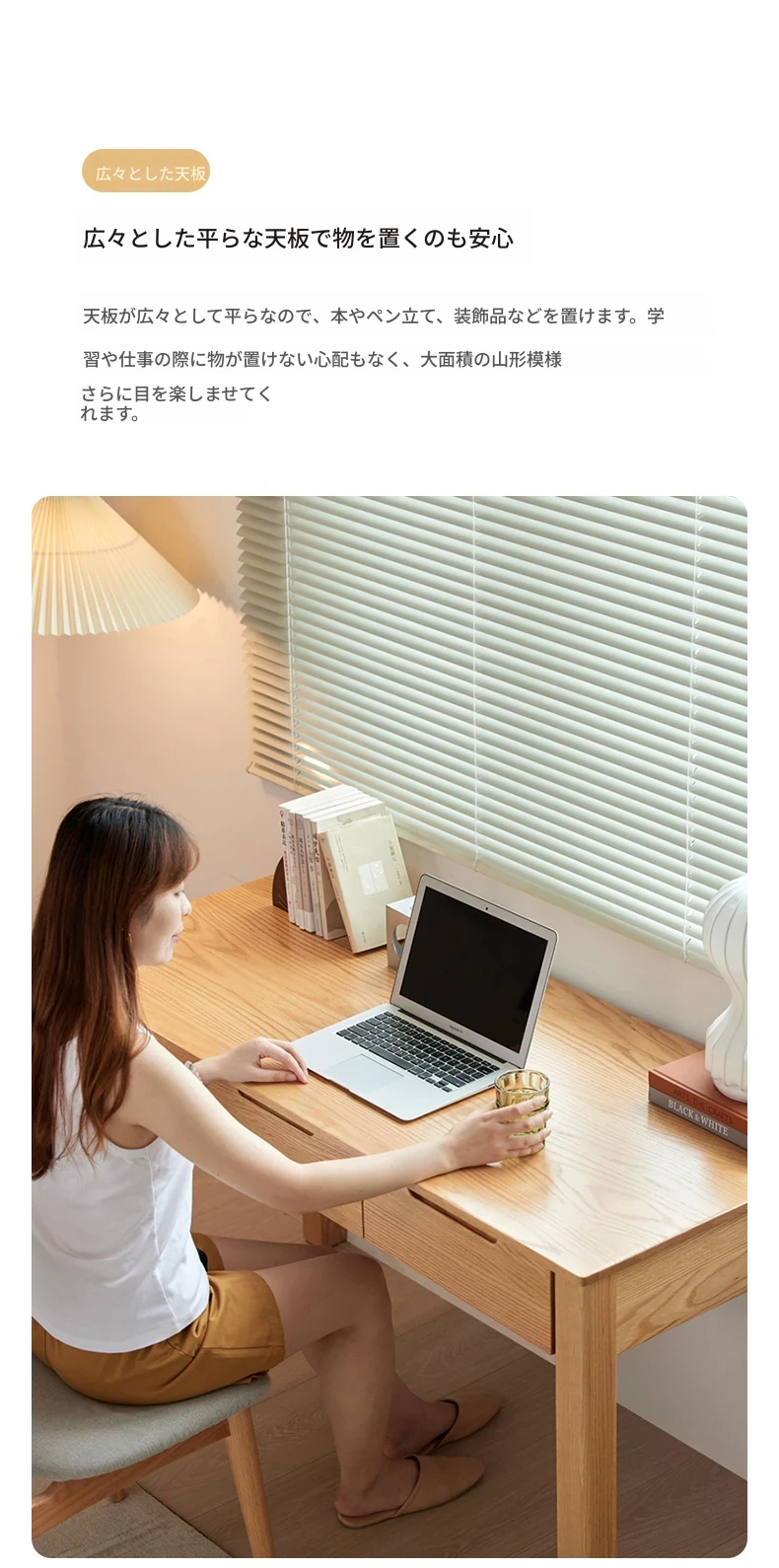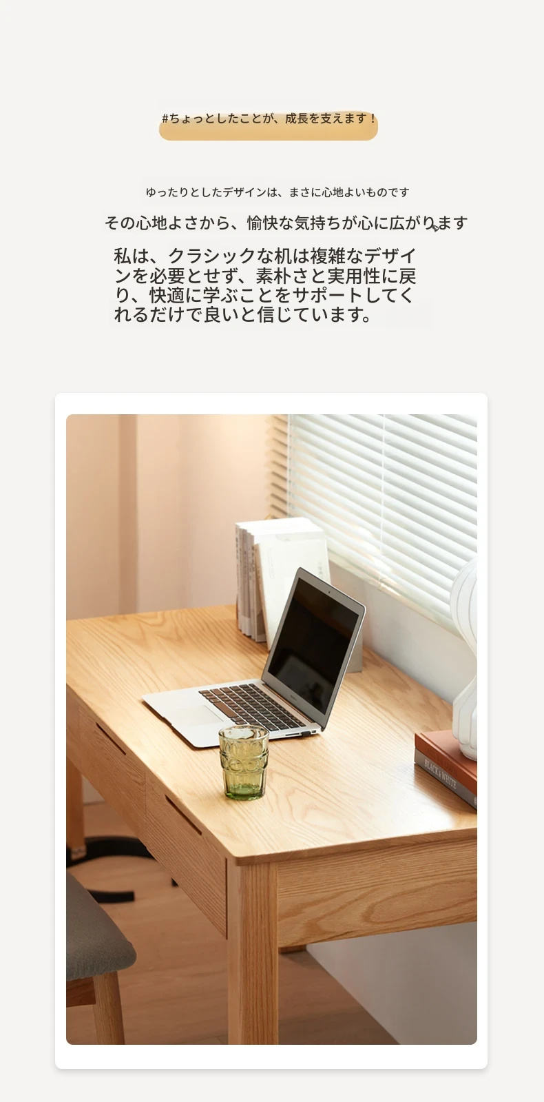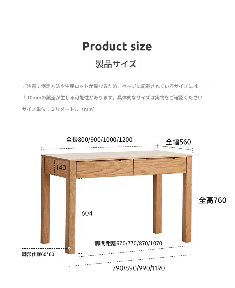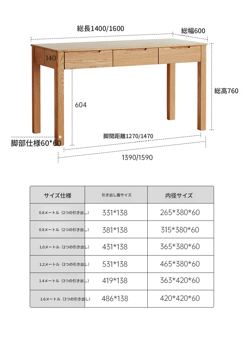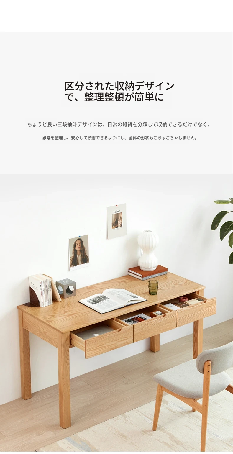 オリジナル無垢材使用!モダンシンプルな北欧スタイルのパソコンデスク。学習やオフィスに最適なオーク材の書き物卓。洗練されたデザインで、快適な作業スペースを提供します。