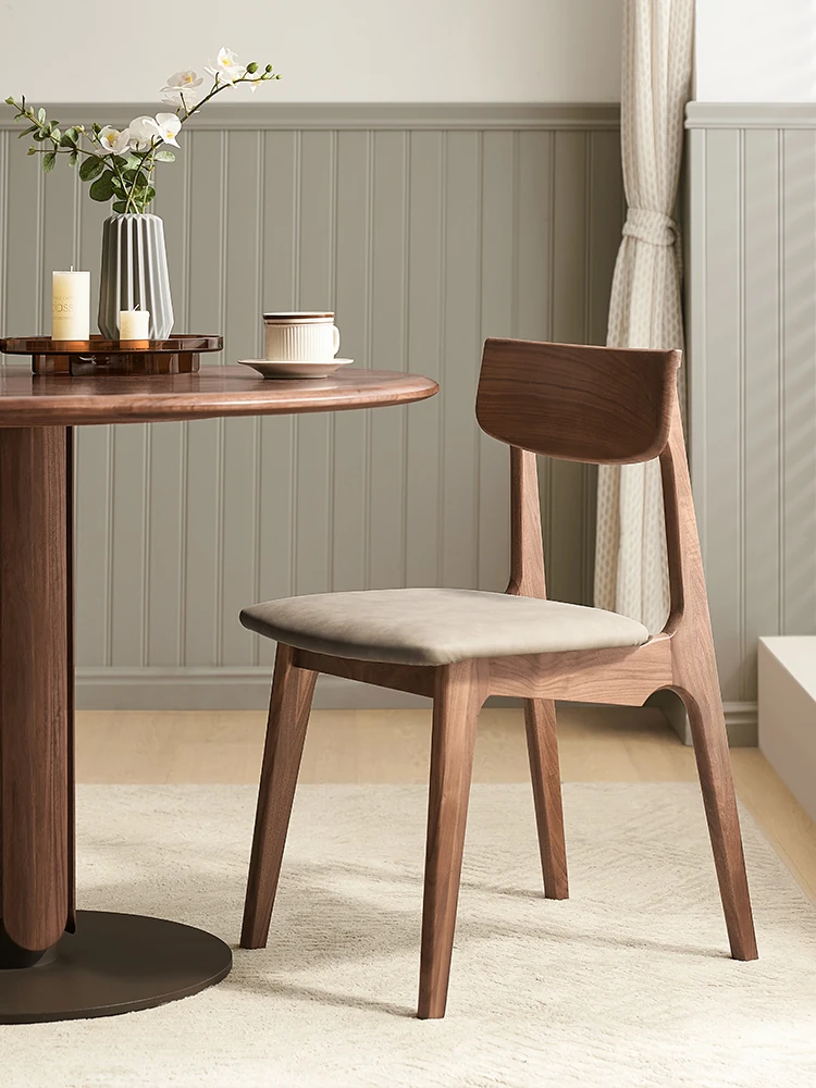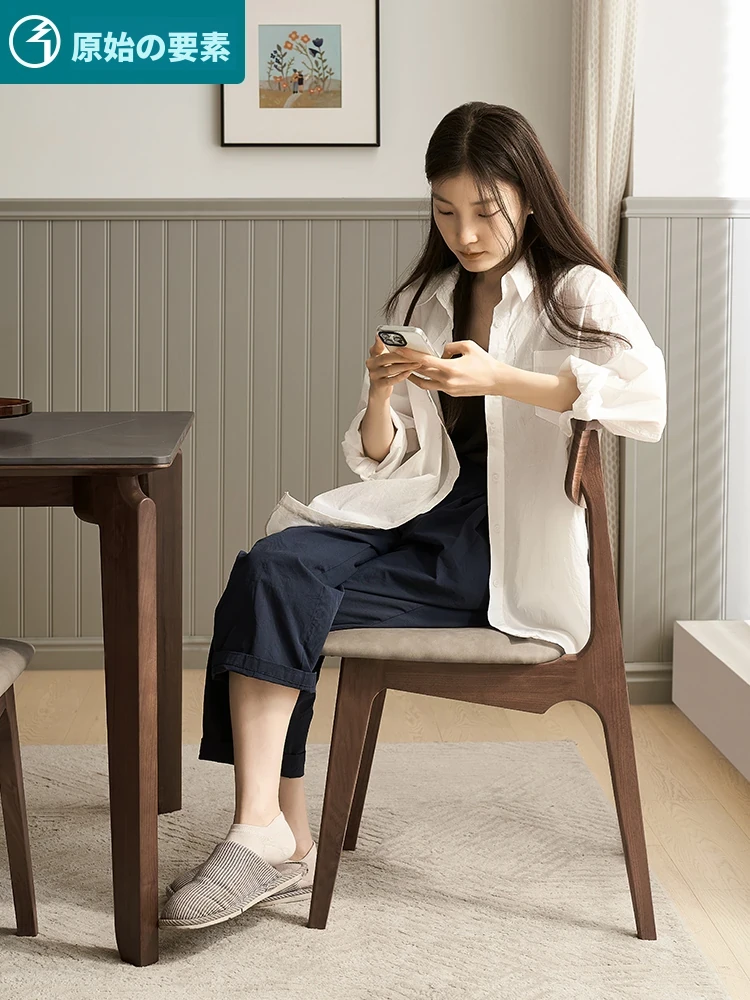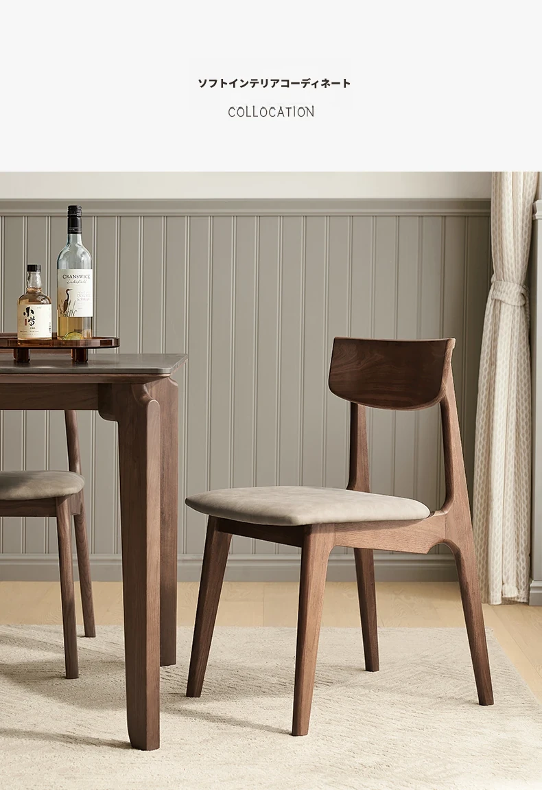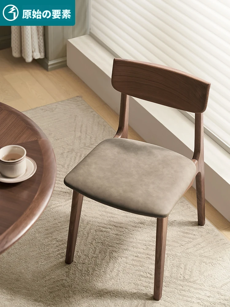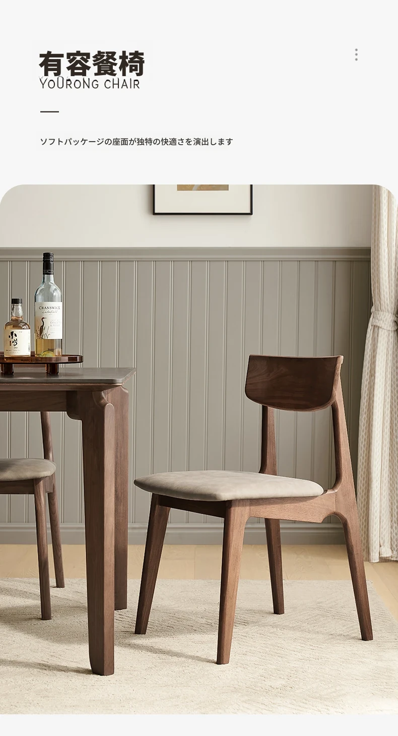 高級ブラックウォールナット無垢材ダイニングチェア|快適な背もたれ付き|おしゃれなリビングやダイニングにぴったり|家庭用にも最適なソフトパッキングチェア