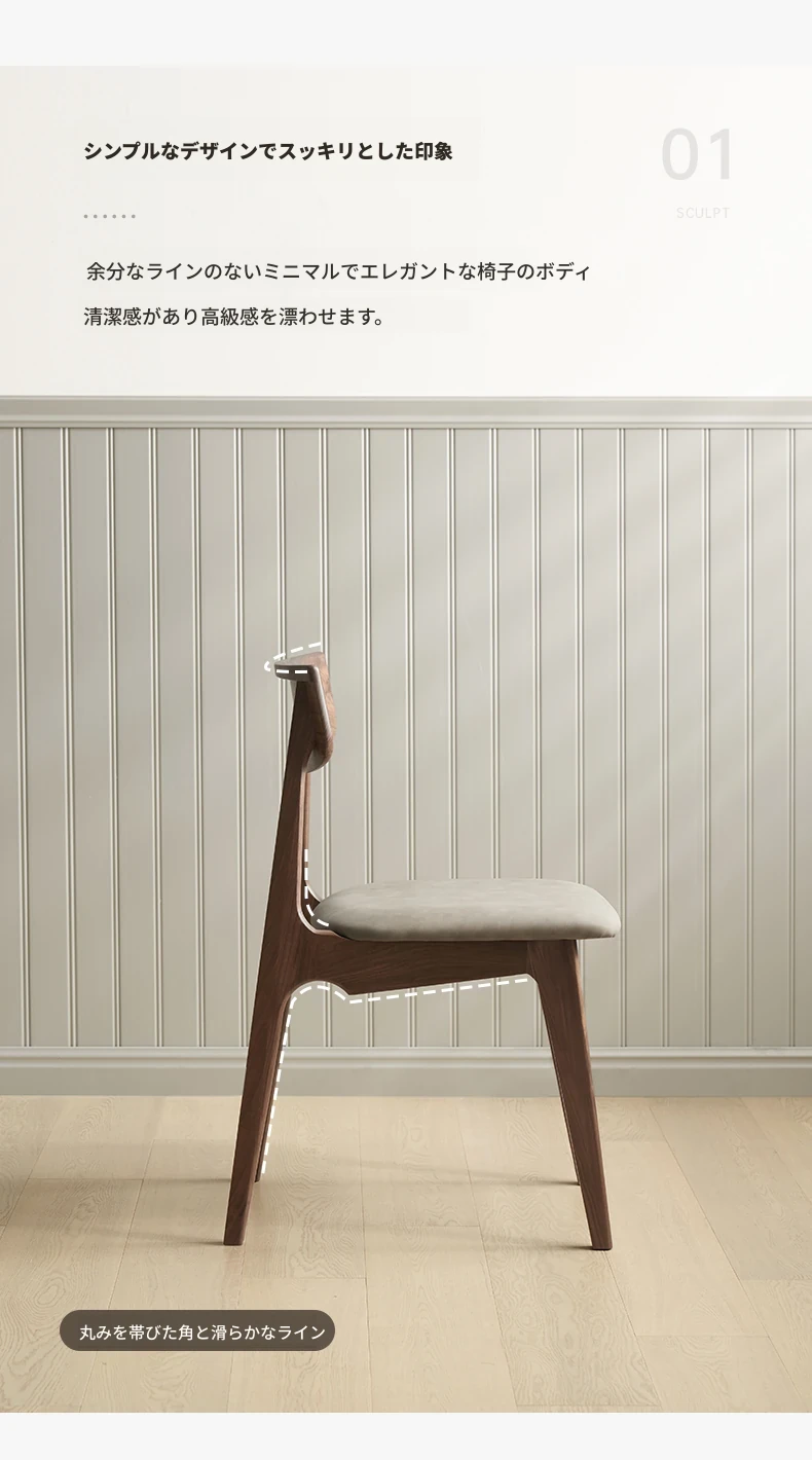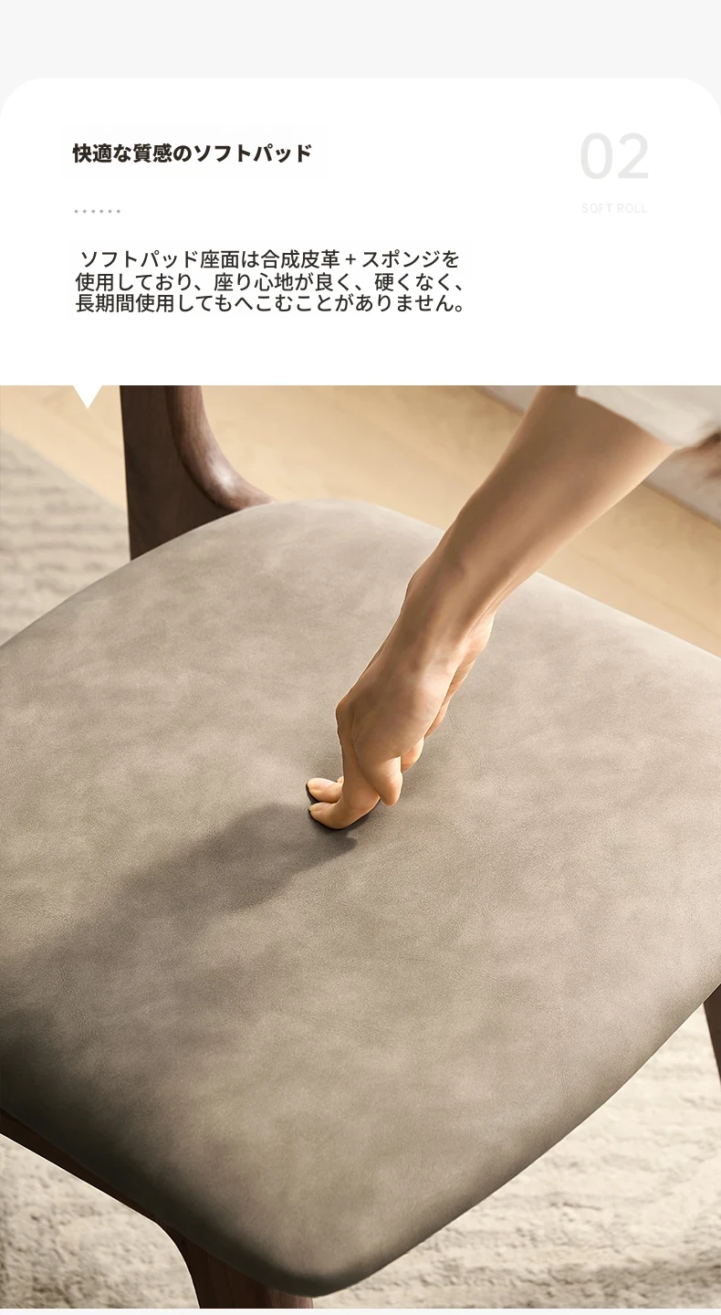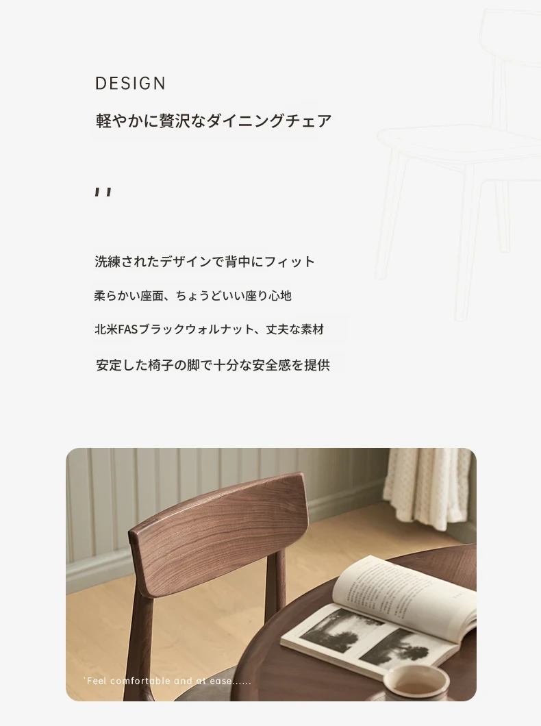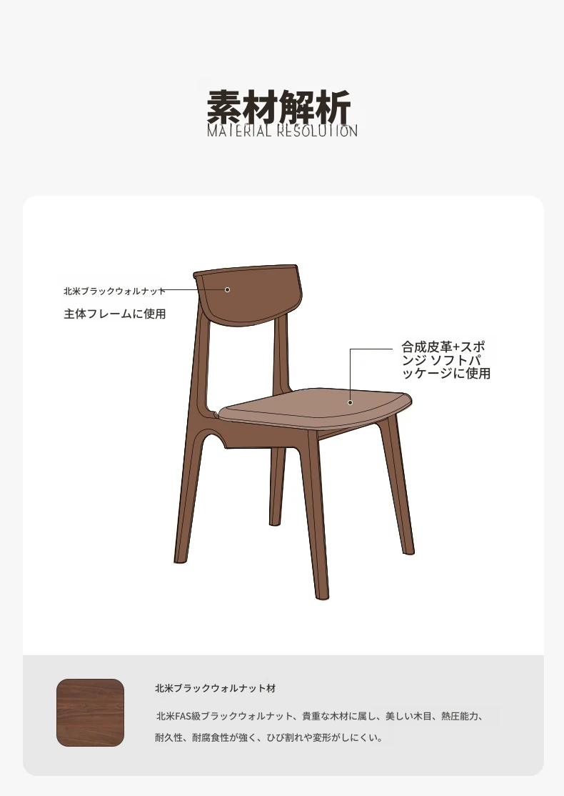 高級ブラックウォールナット無垢材ダイニングチェア|快適な背もたれ付き|おしゃれなリビングやダイニングにぴったり|家庭用にも最適なソフトパッキングチェア